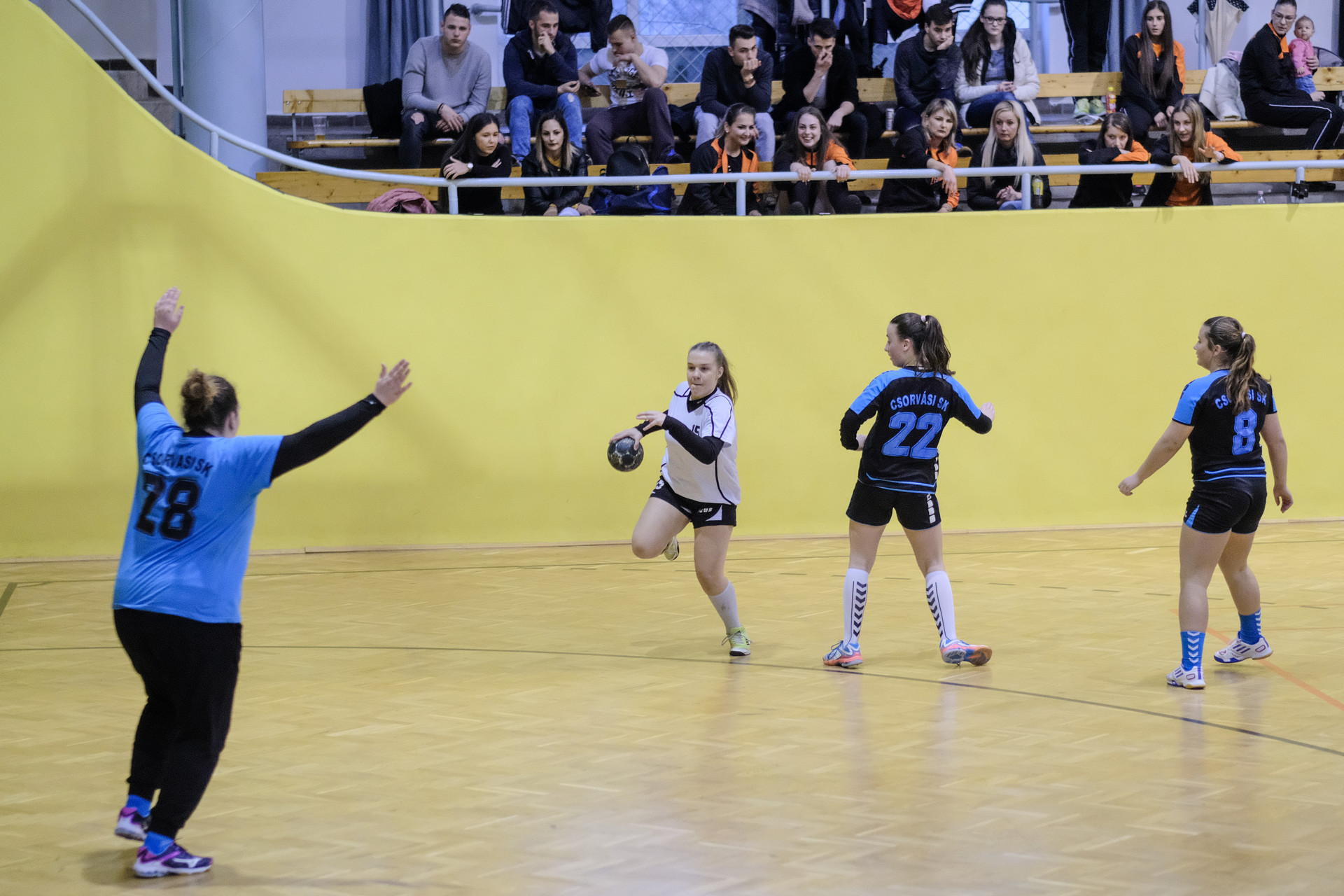 Ennek megfelelően mindkét gárda azonnal nyílt sisakos támadásba lendült. Nagy Izabella gólja nyitotta a párharcot, amire azonban két gyors góllal válaszolni tudtak a vendégek. A csorvásiak komolyan gondolták a fürdővárosi együttes megállítását, egészen a 25. percig tartani tudták háromgólos előnyüket.