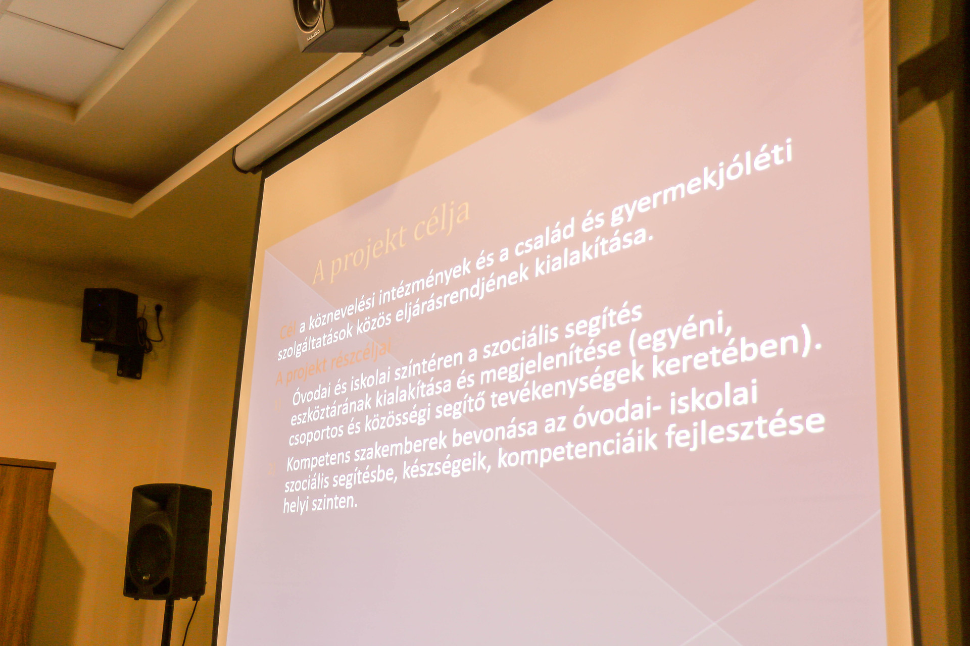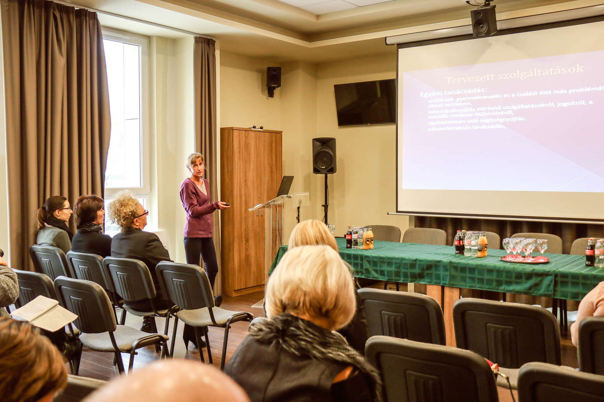 Pflaum Mária és Víghné Fehér Liliána Óvodai és iskolai szociális segítő tevékenység címmel tartottak előadást, a szakemberek főként a szakmai célkitűzéseket, módszereket és lehetőségeket taglalták.