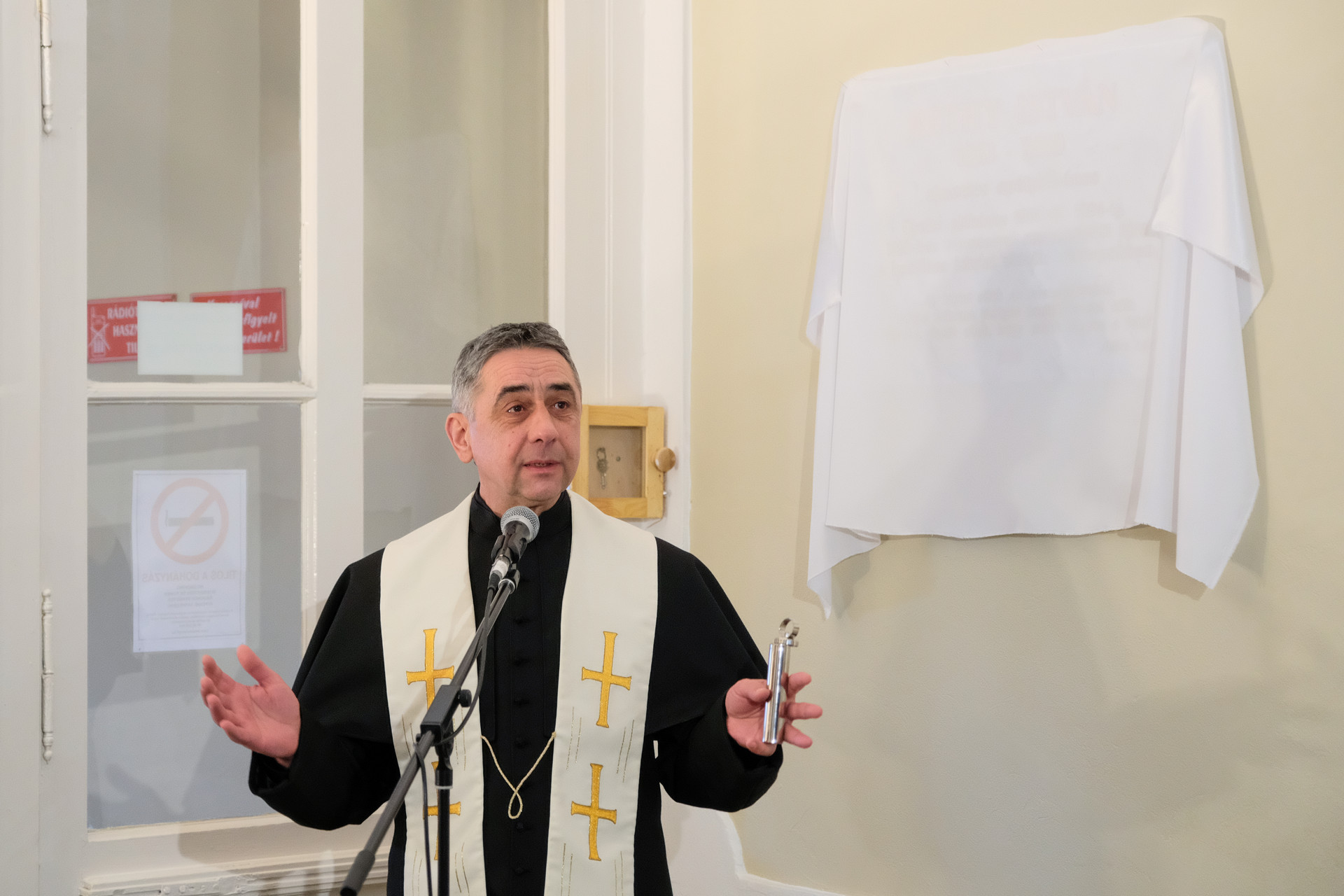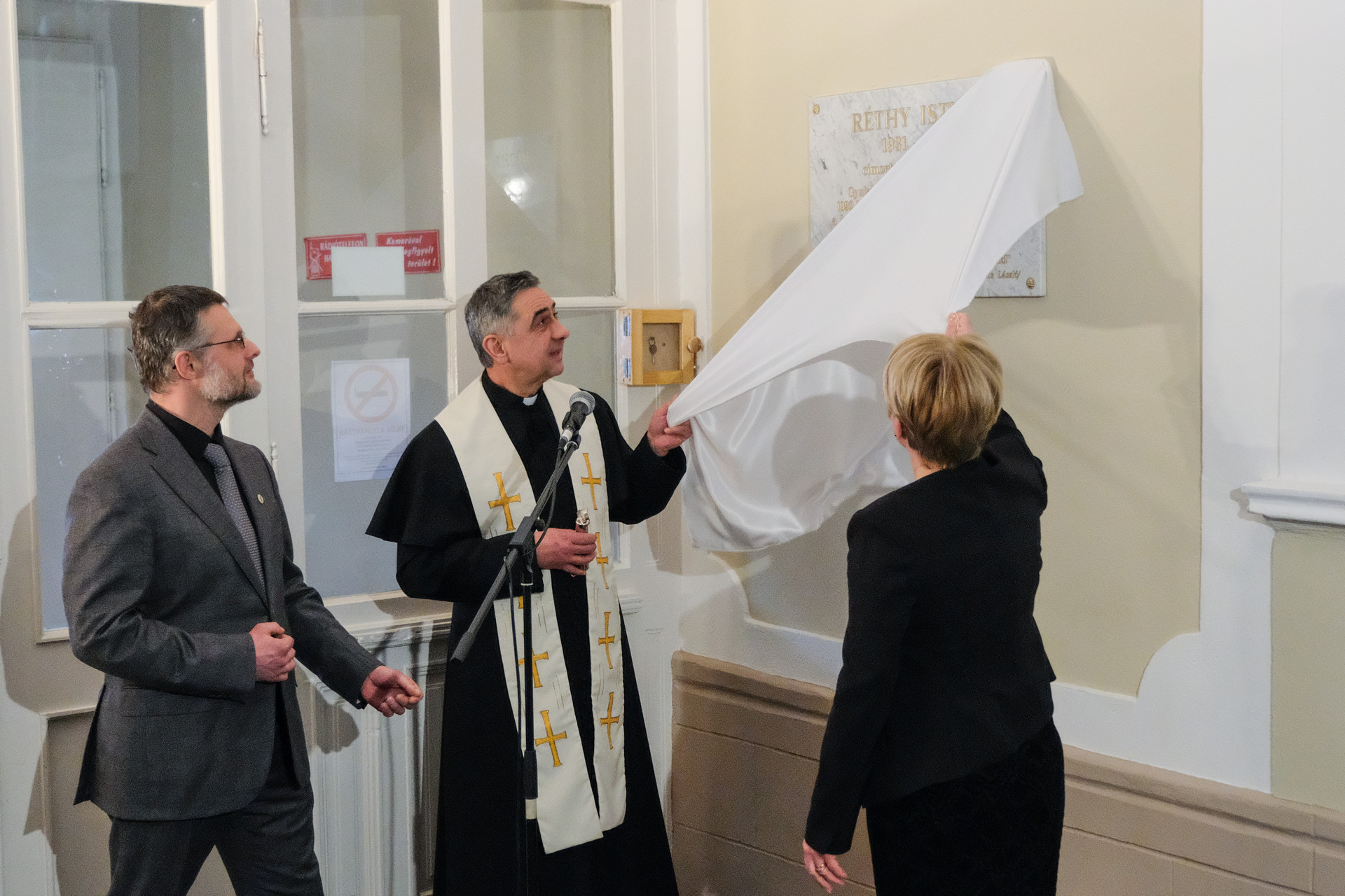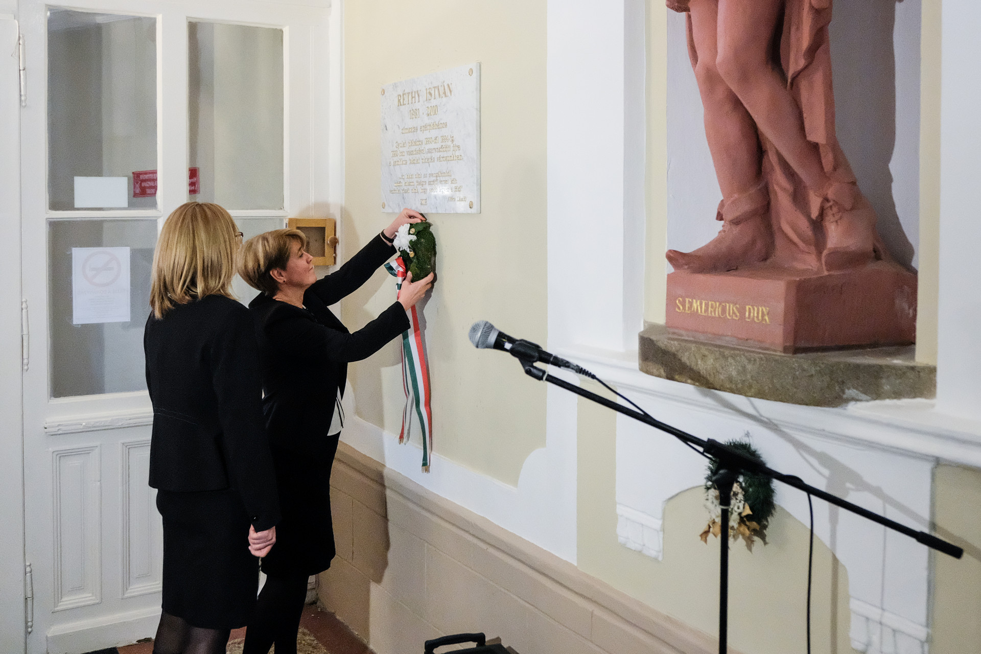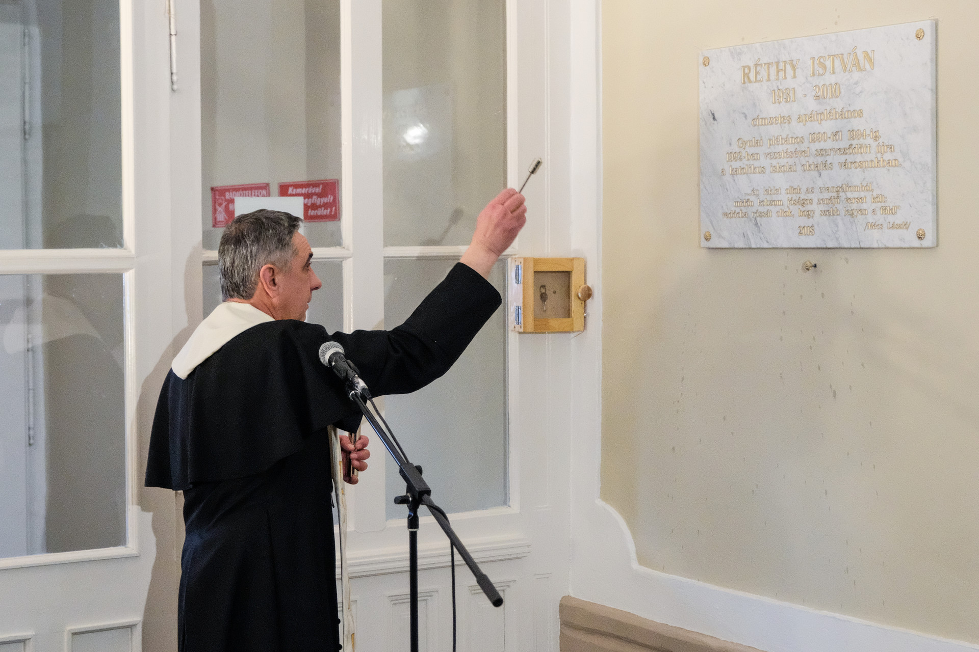 Réthy István emléktábláját Németh László esperes plébános és Petróczki Zoltánné igazgató leplezte le