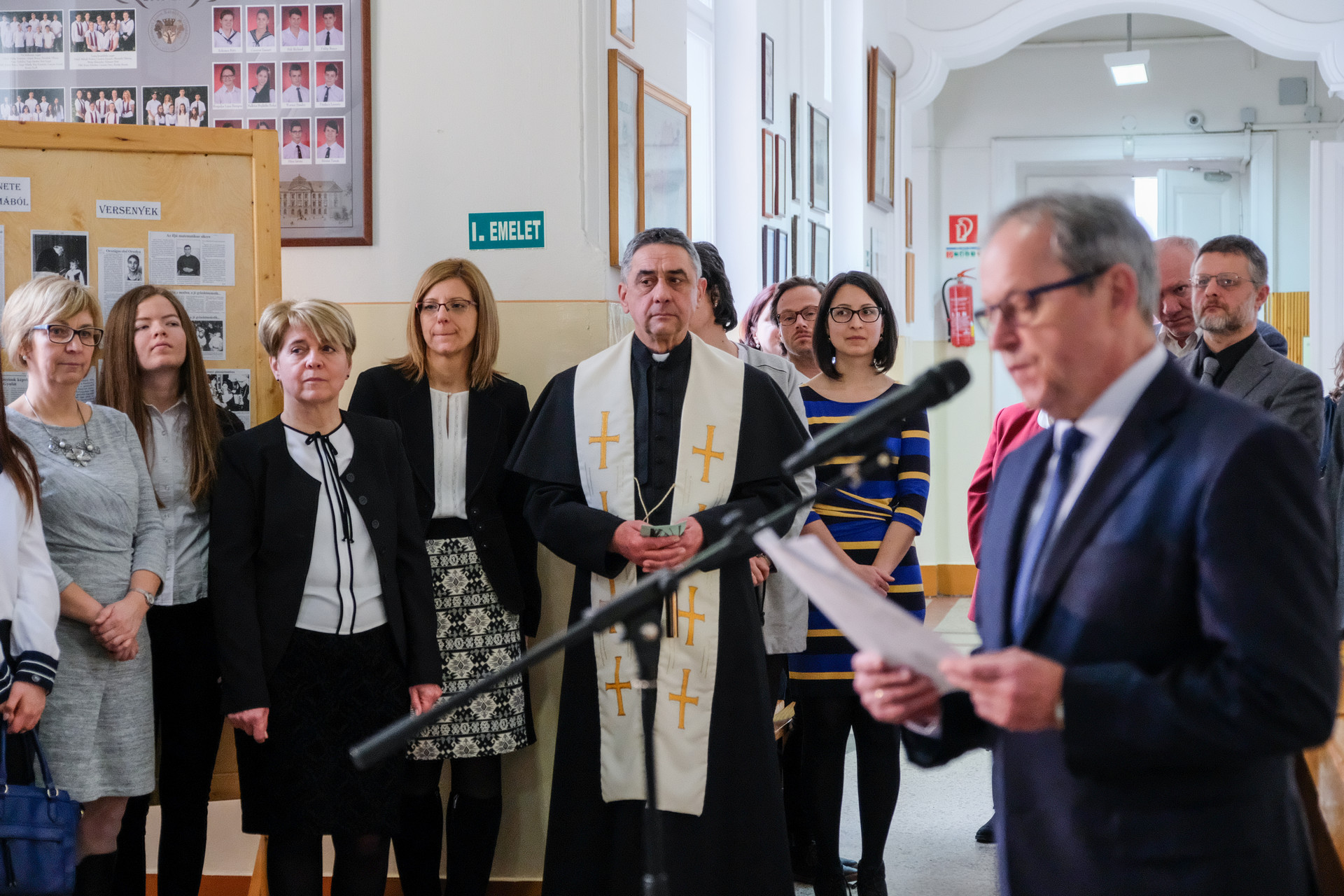 Az esemény reggel 8 órakor a régi és mai diákok találkozójával indult, majd Réthy István címzetes apátplébános emléktábláját avatták fel a gimnázium földszintjén.