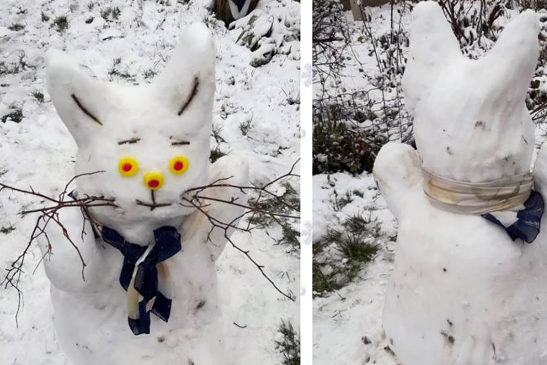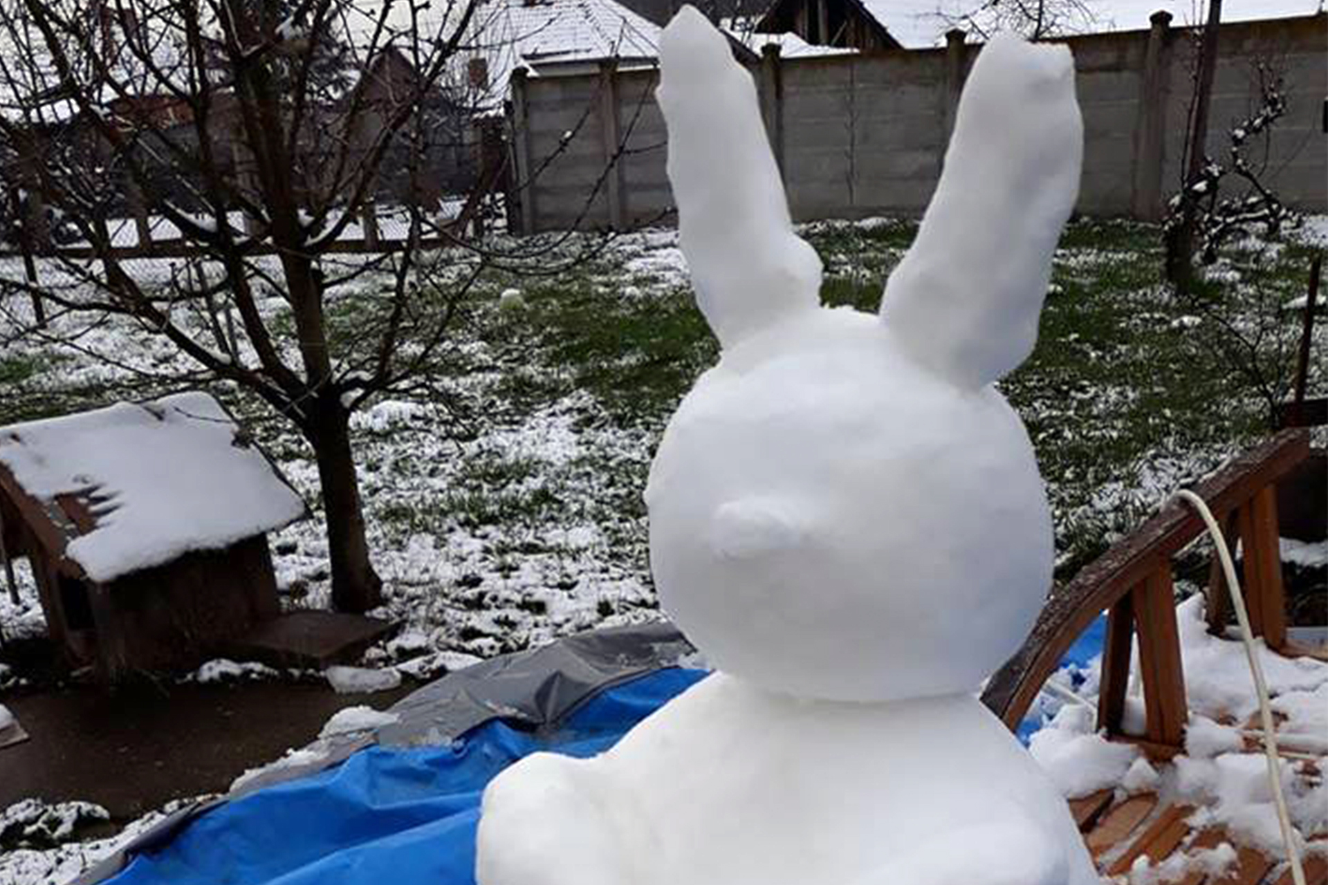 Husvét Tímea és Törökné Túri Ilona a Gyulai csevegőben posztolta a család által hóból összegyúrt nyuszikat.