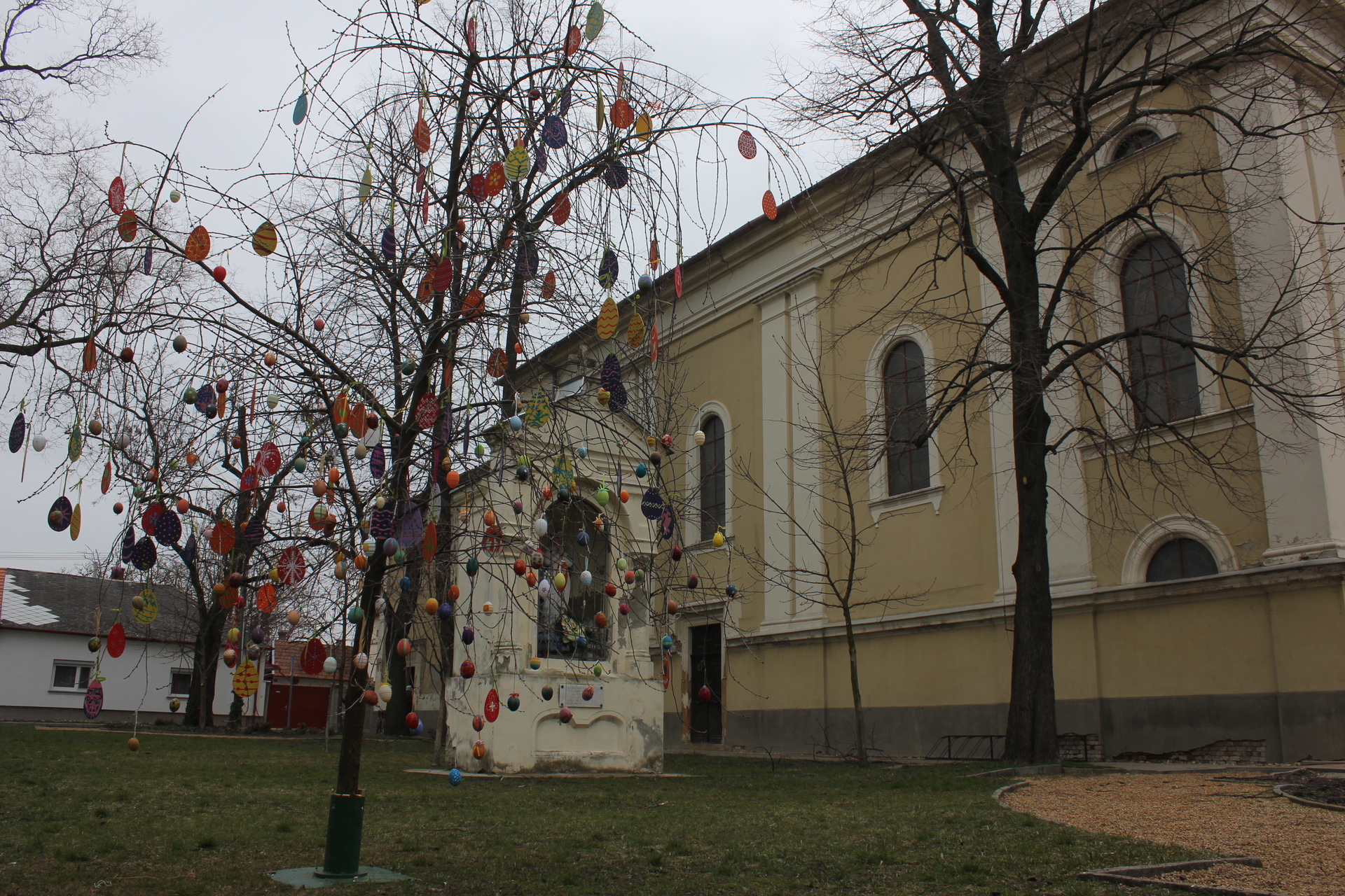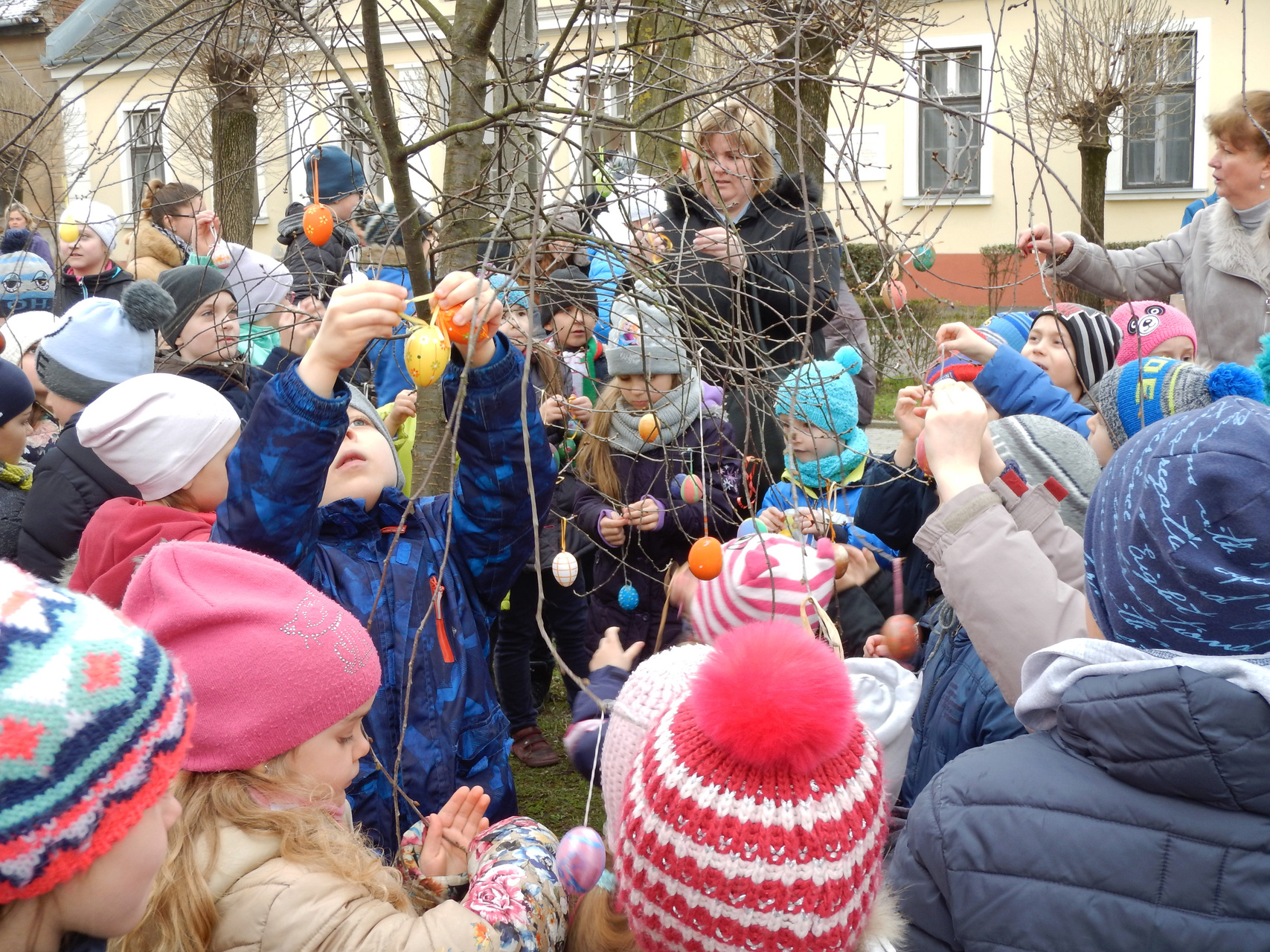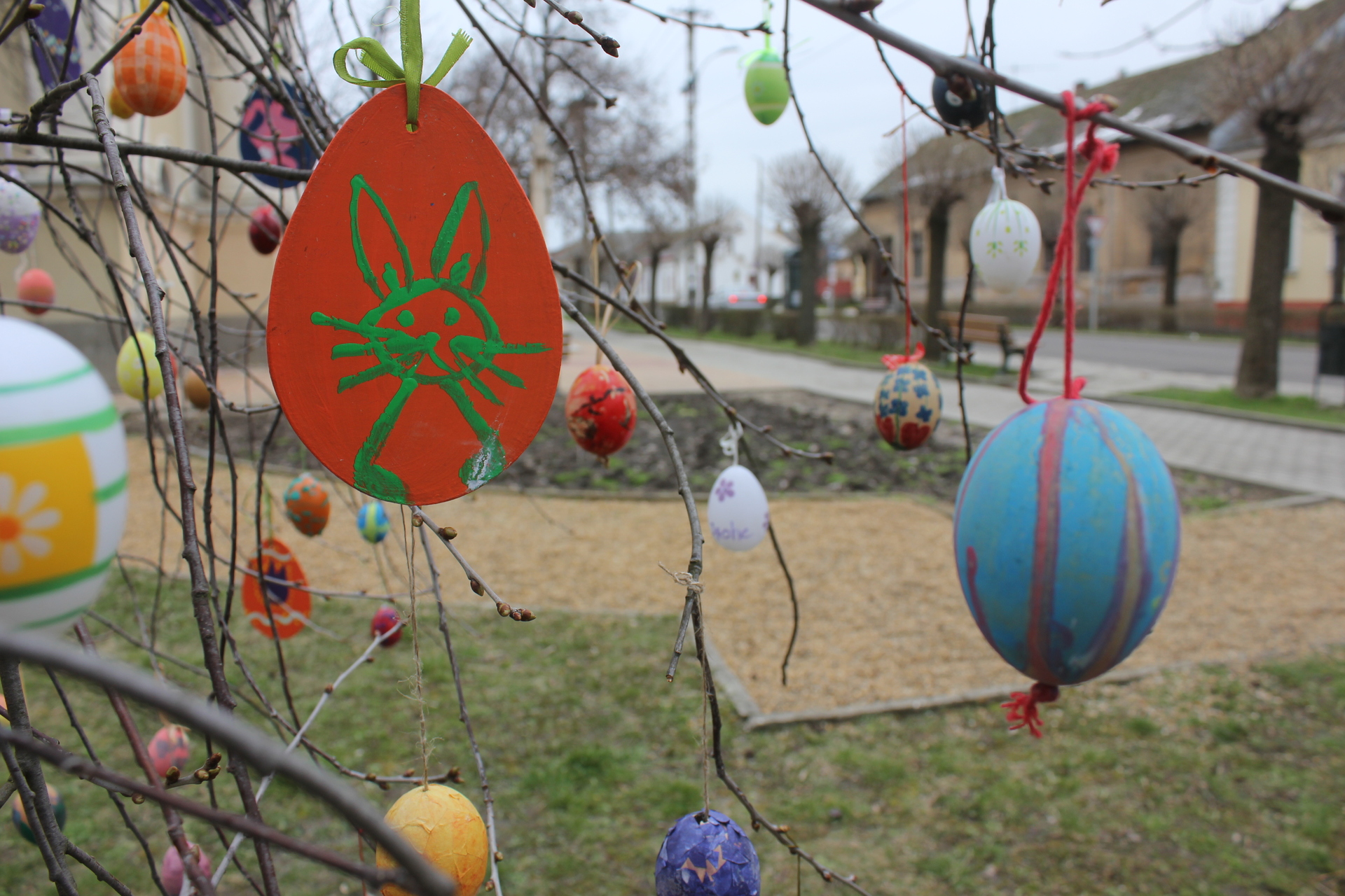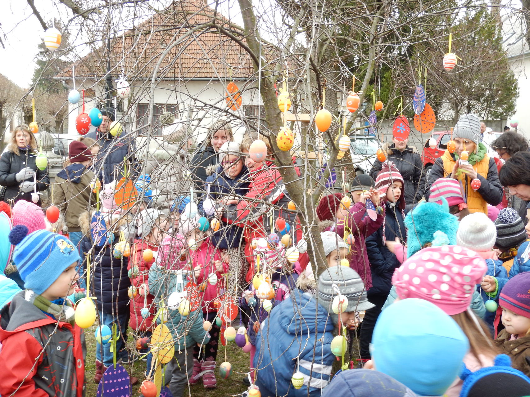 A gyerekek egy télbúcsúztató műsort adtak elő, majd feldíszítették a templom melletti fát a saját kezűleg alkotott, színes, festett tojásokkal.