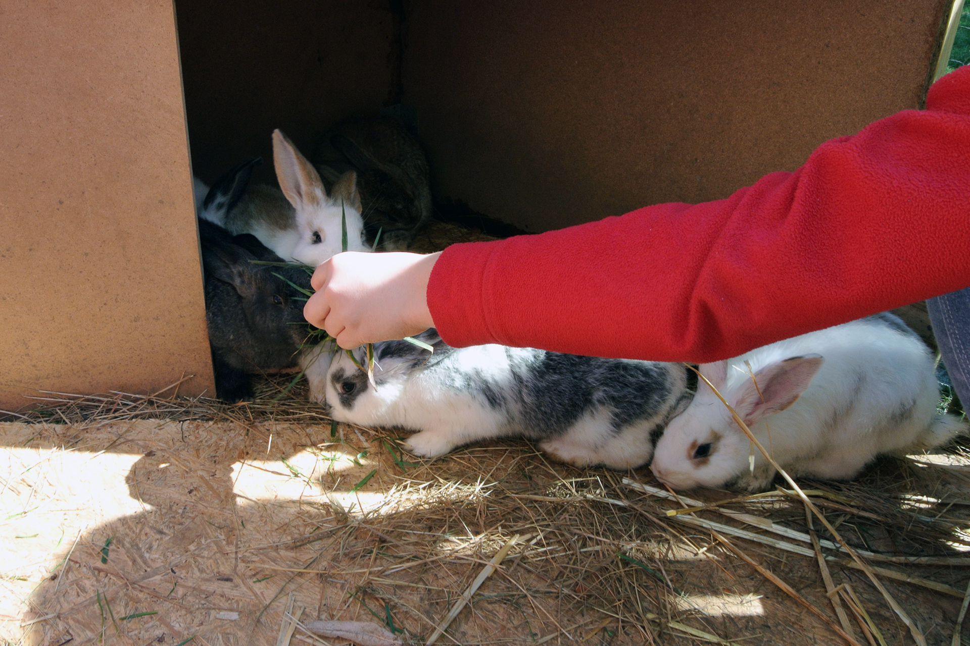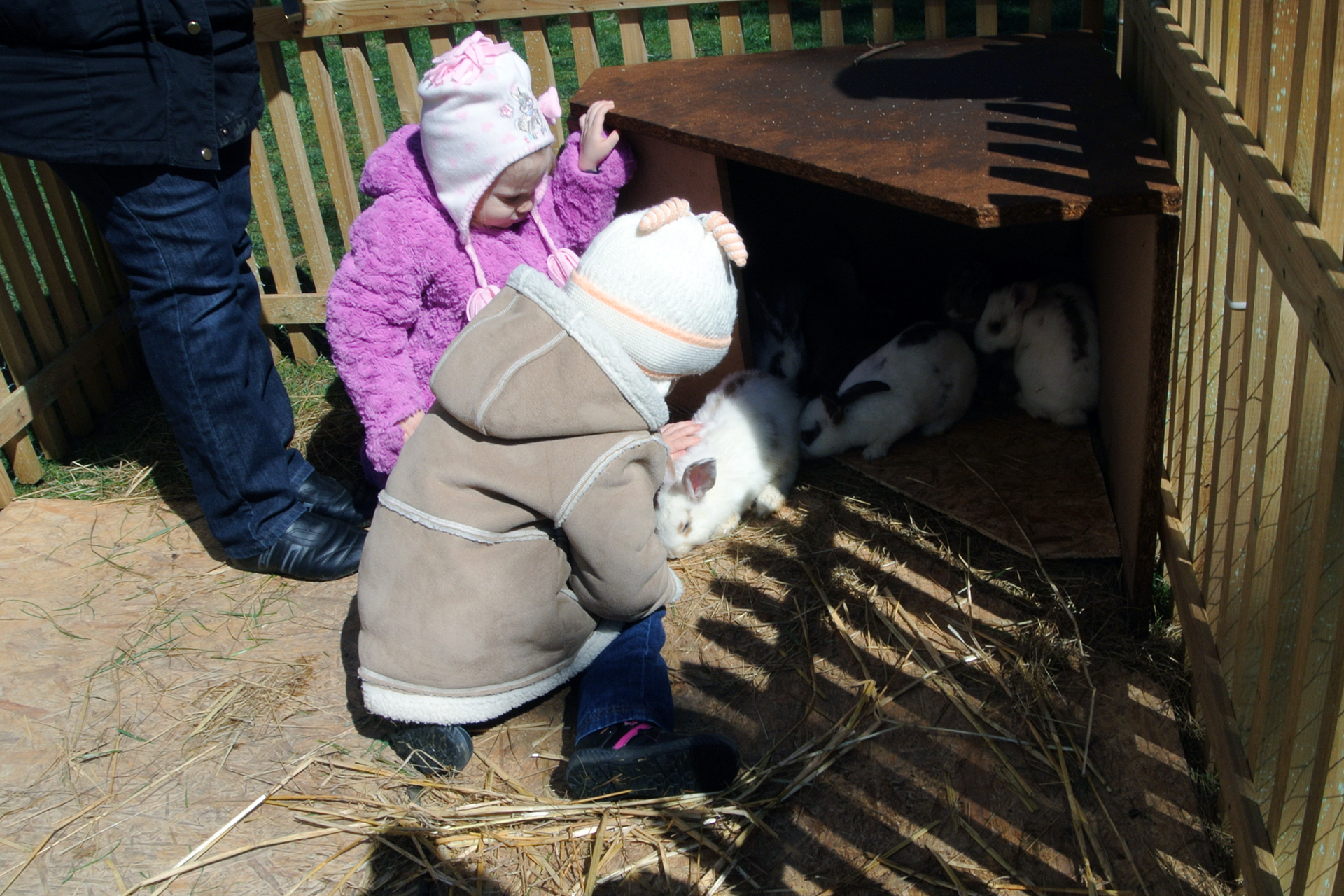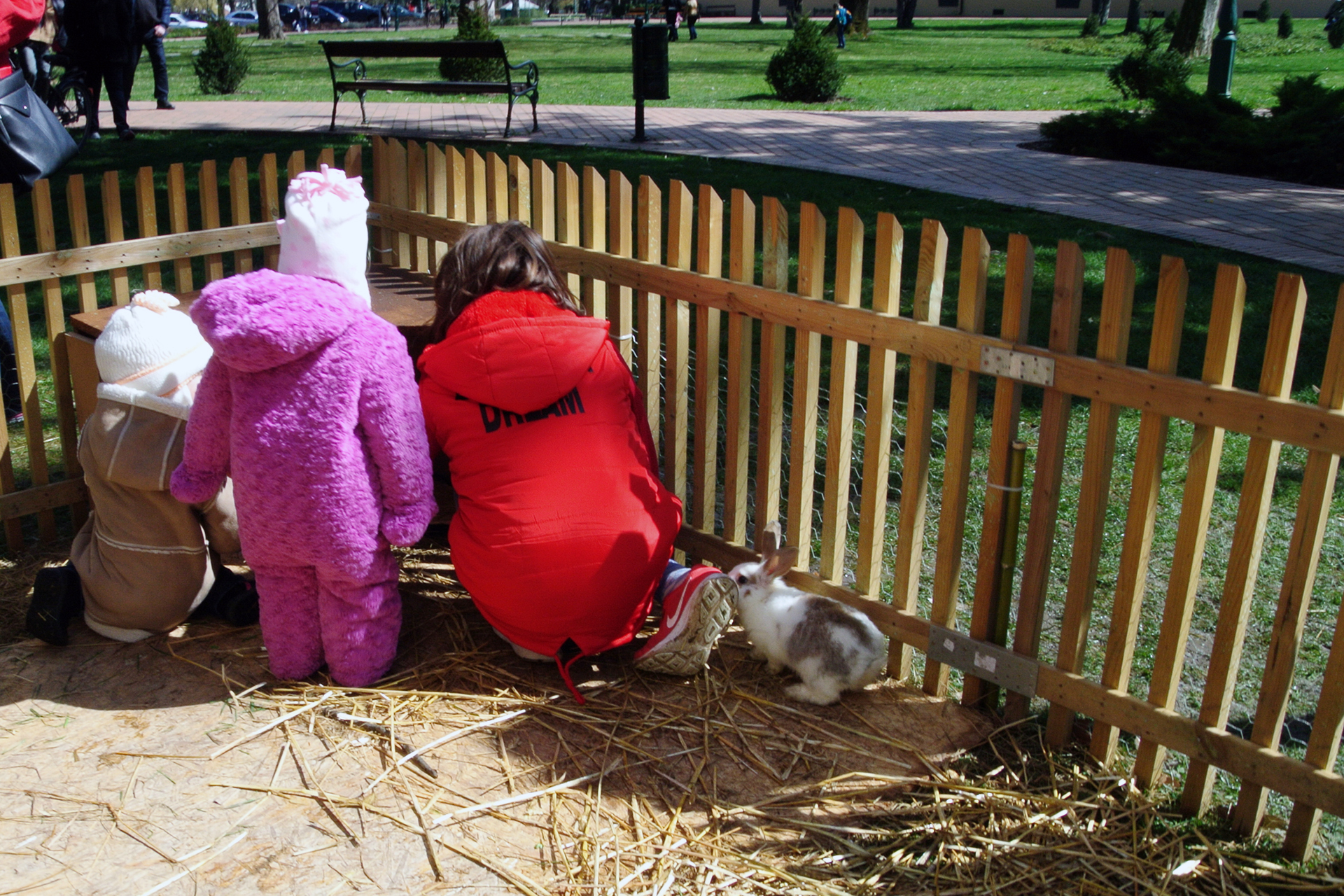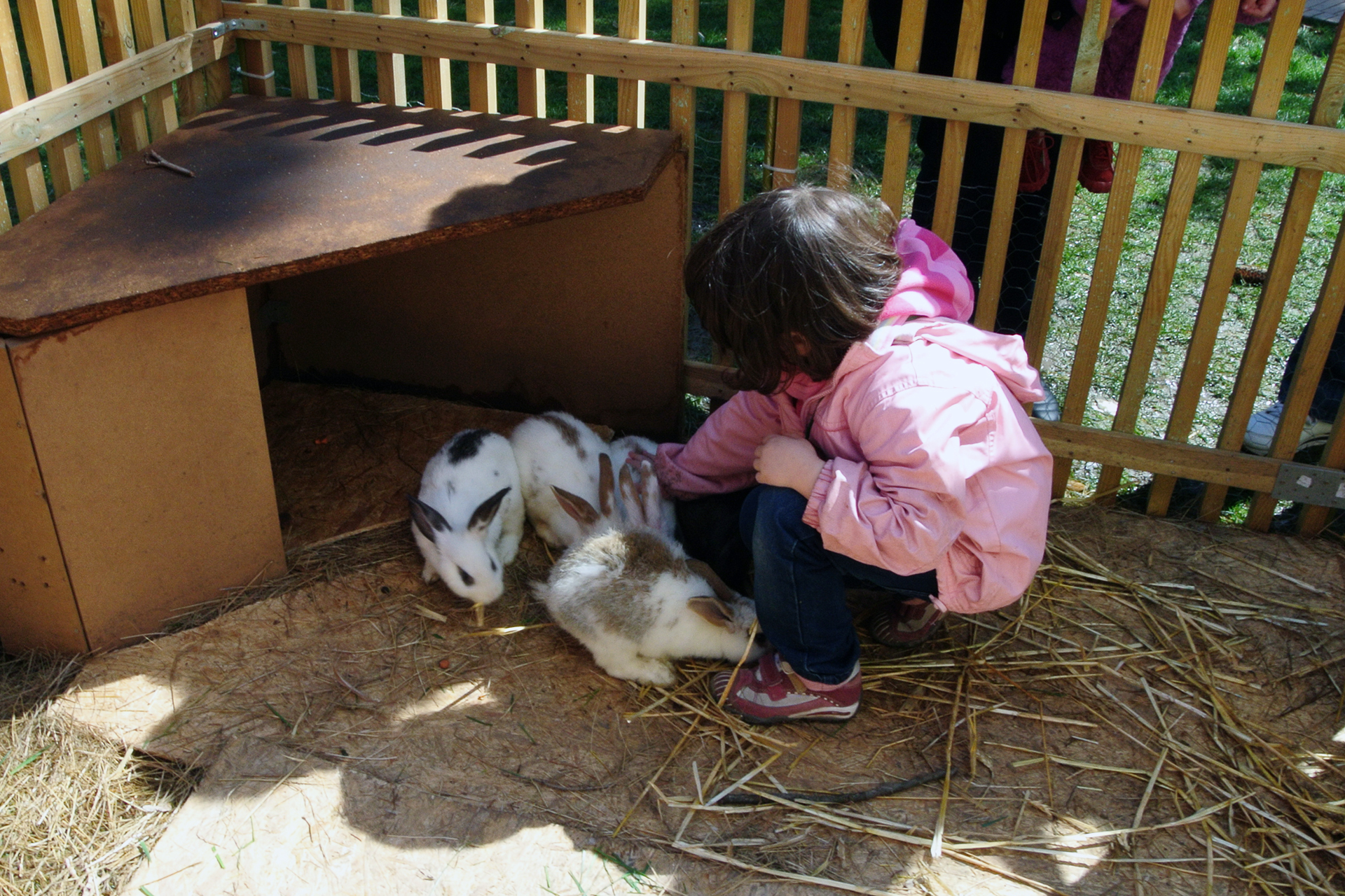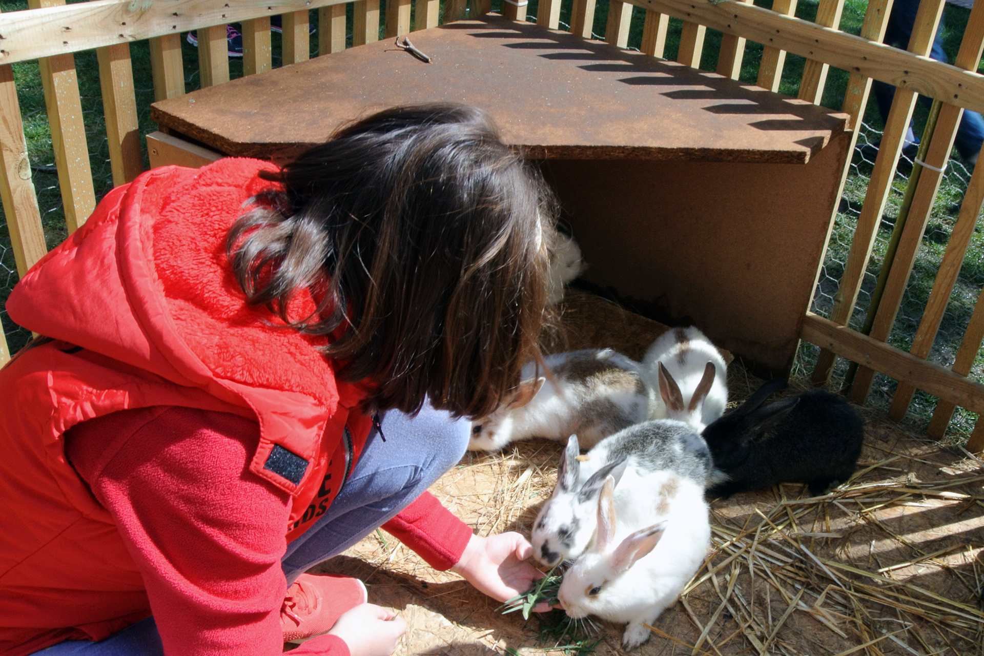 A kastély munkatársai a Török toronynál állították fel a tapsifülesek ideiglenes lakóhelyét. A fehér, fekete és tarka nyuszik sárgarépa-rágcsálás közben várják kis barátaikat.