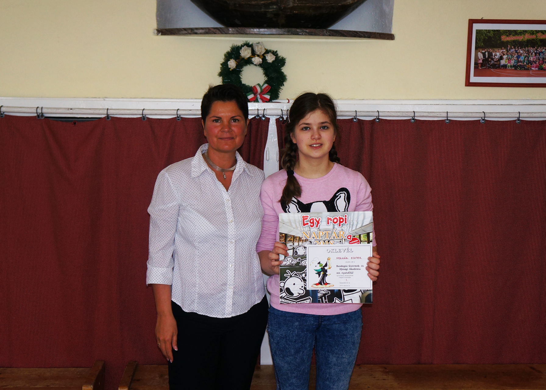 Ennek a versenynek a megyei fordulóján (minden évfolyamon) az első nyolc diákot díjazták, így külön öröm és büszkeség volt számunkra, hogy Molnár Eszter Békés megyében a legjobbnak bizonyult az 5. évfolyamosok között, azaz 1. helyezést ért el. Így – iskolánk történetében először – karácsonyis diák képviseli Békés megyét a szegedi országos döntőn május 12-én.