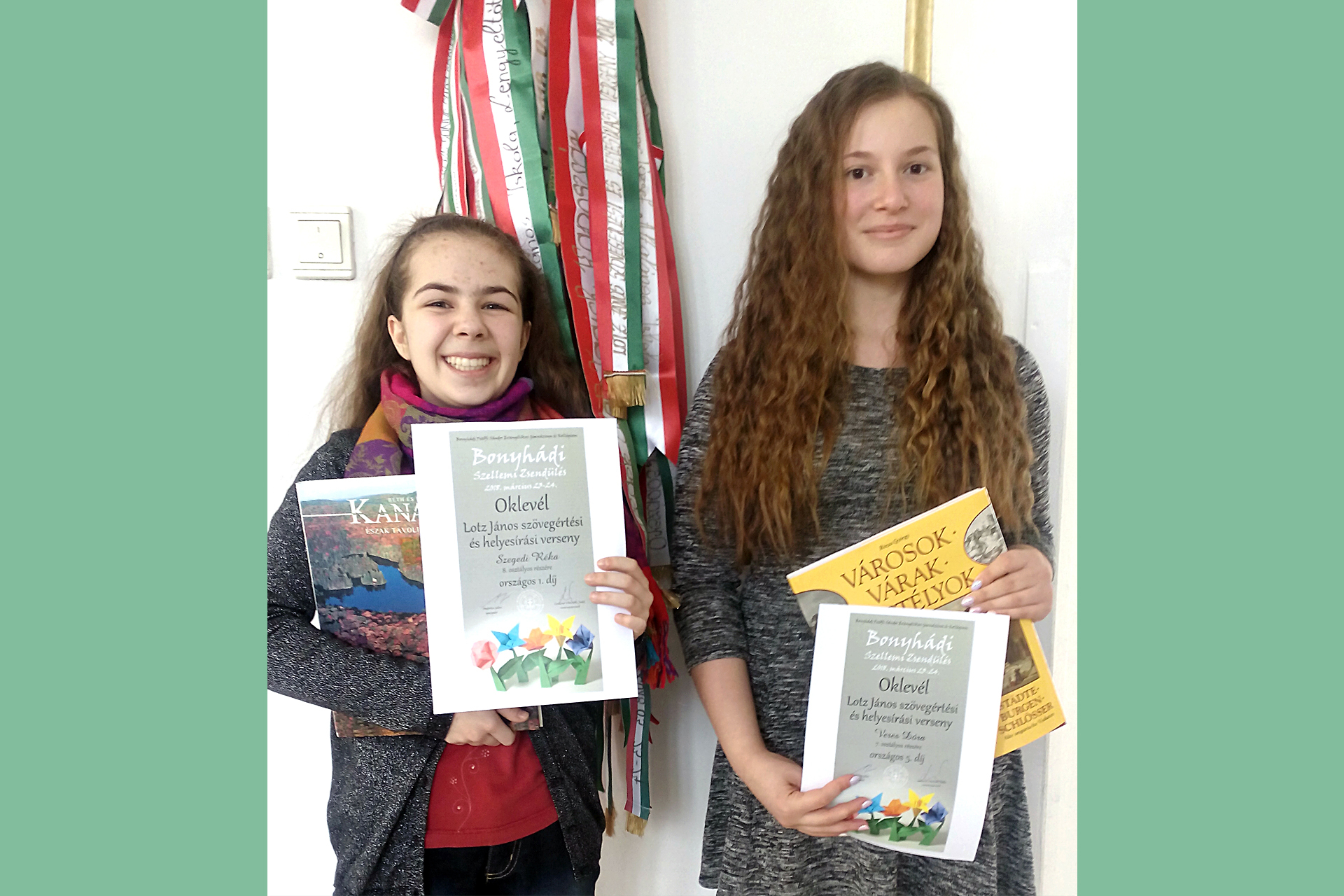 A hetedikesek között Veres Dóra 5. helyezést ért el, a nyolcadikos Szegedi Réka Panna pedig – aki tavaly már dobogós, 3. helyezett volt – nagy fölénnyel megnyerte az országos versenyt. A versenyzők több hónapig tartó felkészülését Kovácsné Megyeri Anna (Dóra) és Tóthné Bodó Mária (Réka) magyartanár segítette.