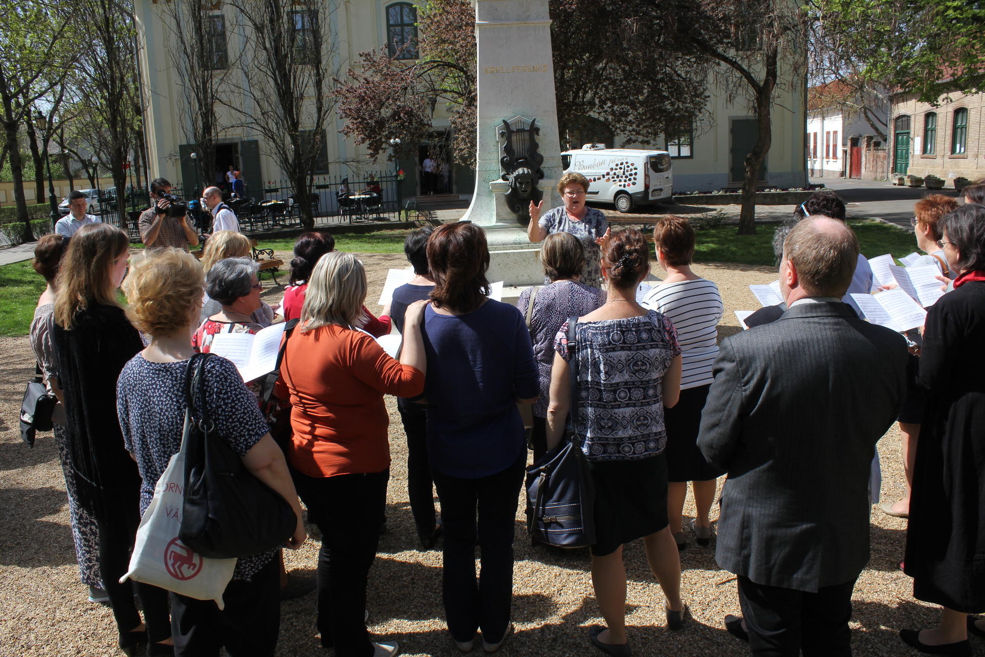 Koszorúkat helyeztek el Erkel Ferenc gyulai szobránál április 14-én délután. Az ünnepi eseményre a XXVI. Éneklő Ifjúság Szakmai Napok és Koncertek elnevezésű program keretében került sor.