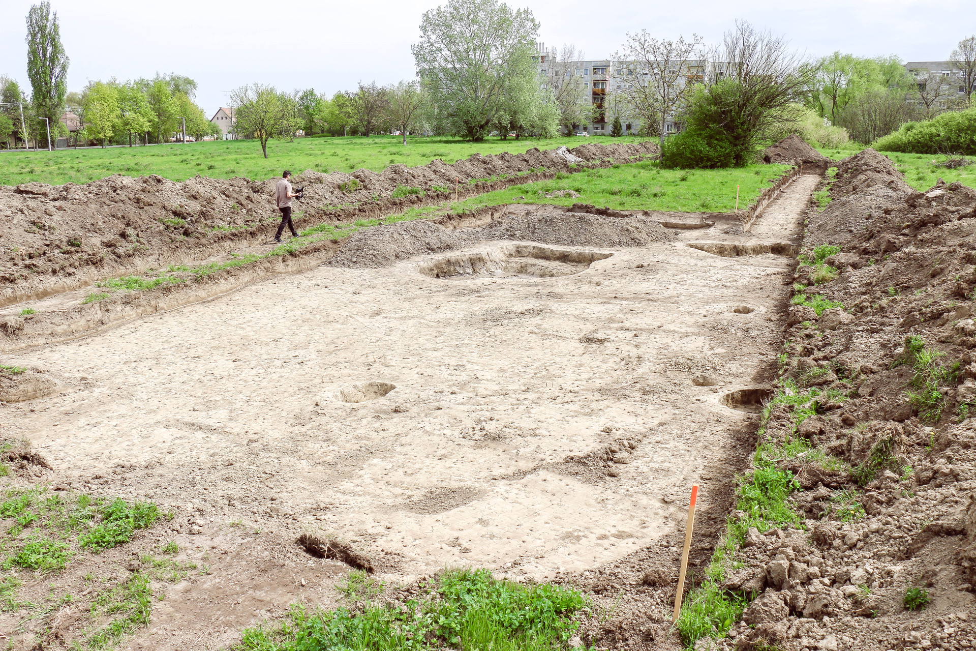 A legutóbbi egy viszonylag kis felületű feltárás folyt, mutatott rá a vezető régész, hisz egyetlen útnak a nyomvonalát kellett megvizsgálniuk. Két ütemben dolgoztak. Először egy próbafeltárást végeztek, ami abból állt, hogy húztak két szelvényt a tervezett út szélén. Mivel népvándorlás kori és Árpád-kori objektumokat is találtak, egyeztettek a beruházóval, és azonnal megkezdték a megelőző feltárást. Ez azt jelentette, hogy azon a részen, ahol régészeti érintettséget tapasztaltak, kibővítették az ásatási szelvényt.