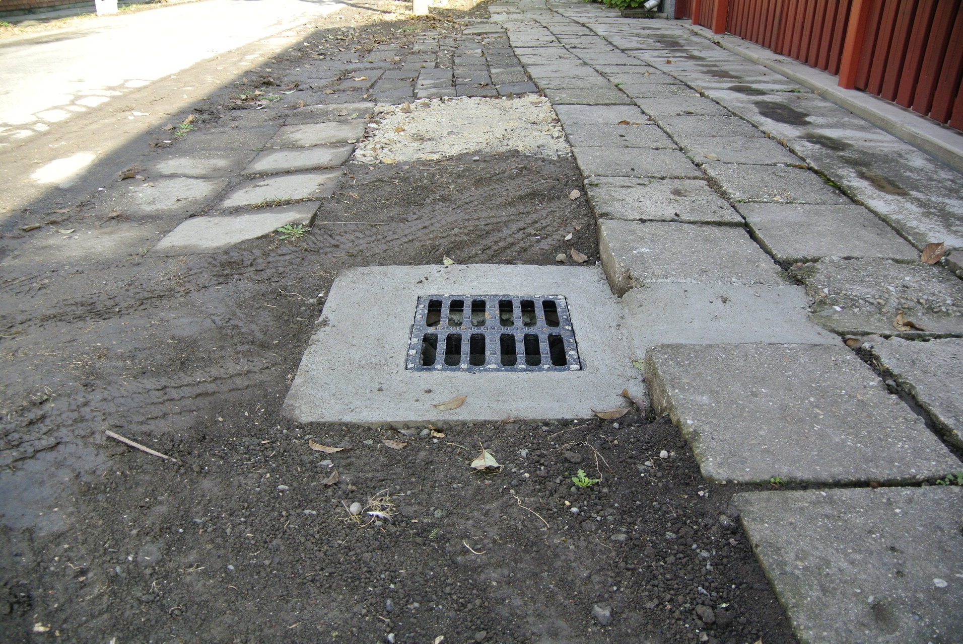 A Pacsirta utcával párhuzamosan elhelyezkedő utcában hasonló a helyzet. Itt is található néhány ház előtt árok áteresszel, de sem a mérete, sem a magassága nem megfelelő.
