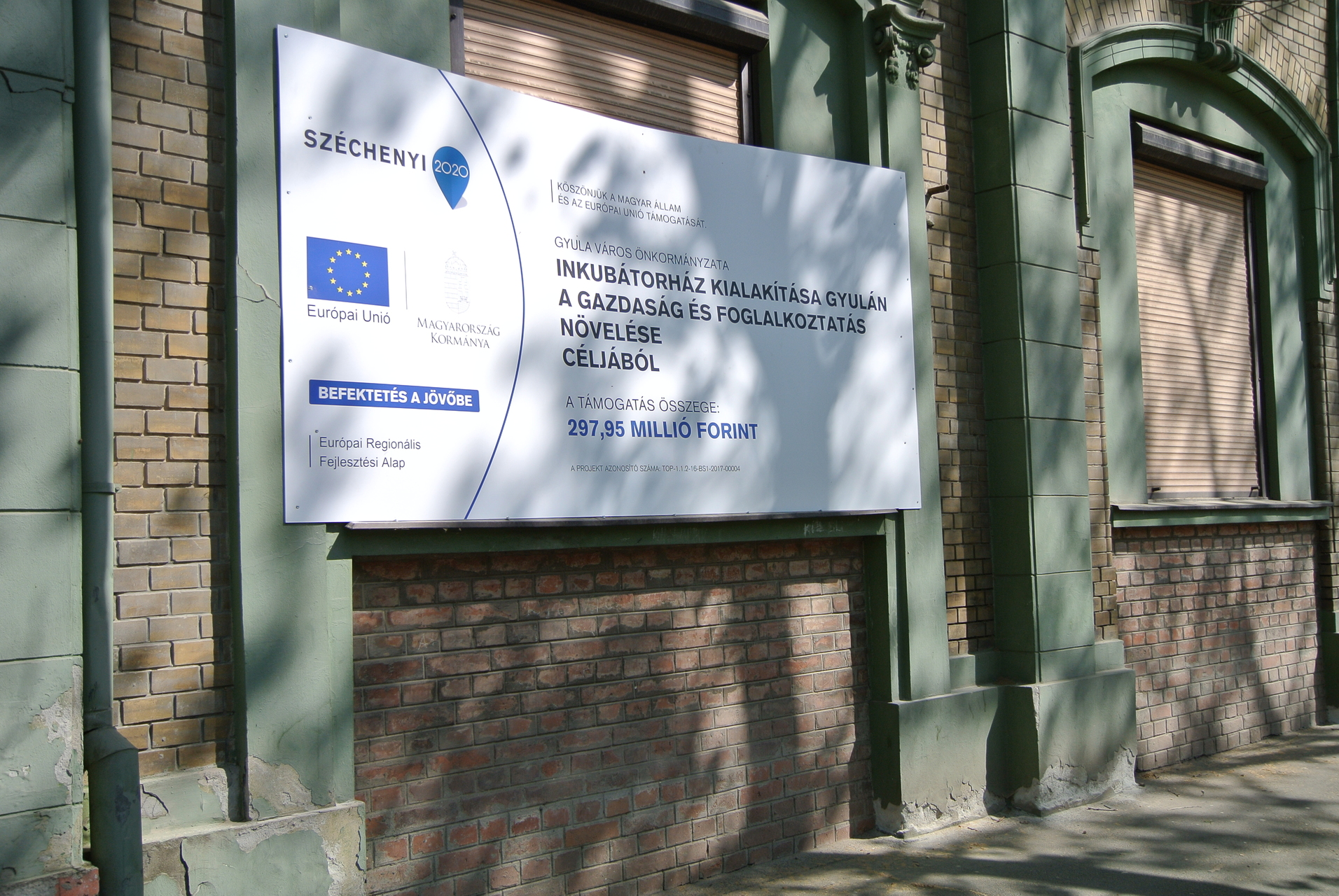A Széchenyi 2020 program keretében, 297,95 millió forint európai uniós támogatásból valósul meg a TOP-1.1.2-16-BS1-2017-00004 azonosítószámú, Inkubátorház kialakítása Gyulán a gazdaság és foglalkoztatás növelése céljából című projekt. A pályázat nem igényel önerőt.