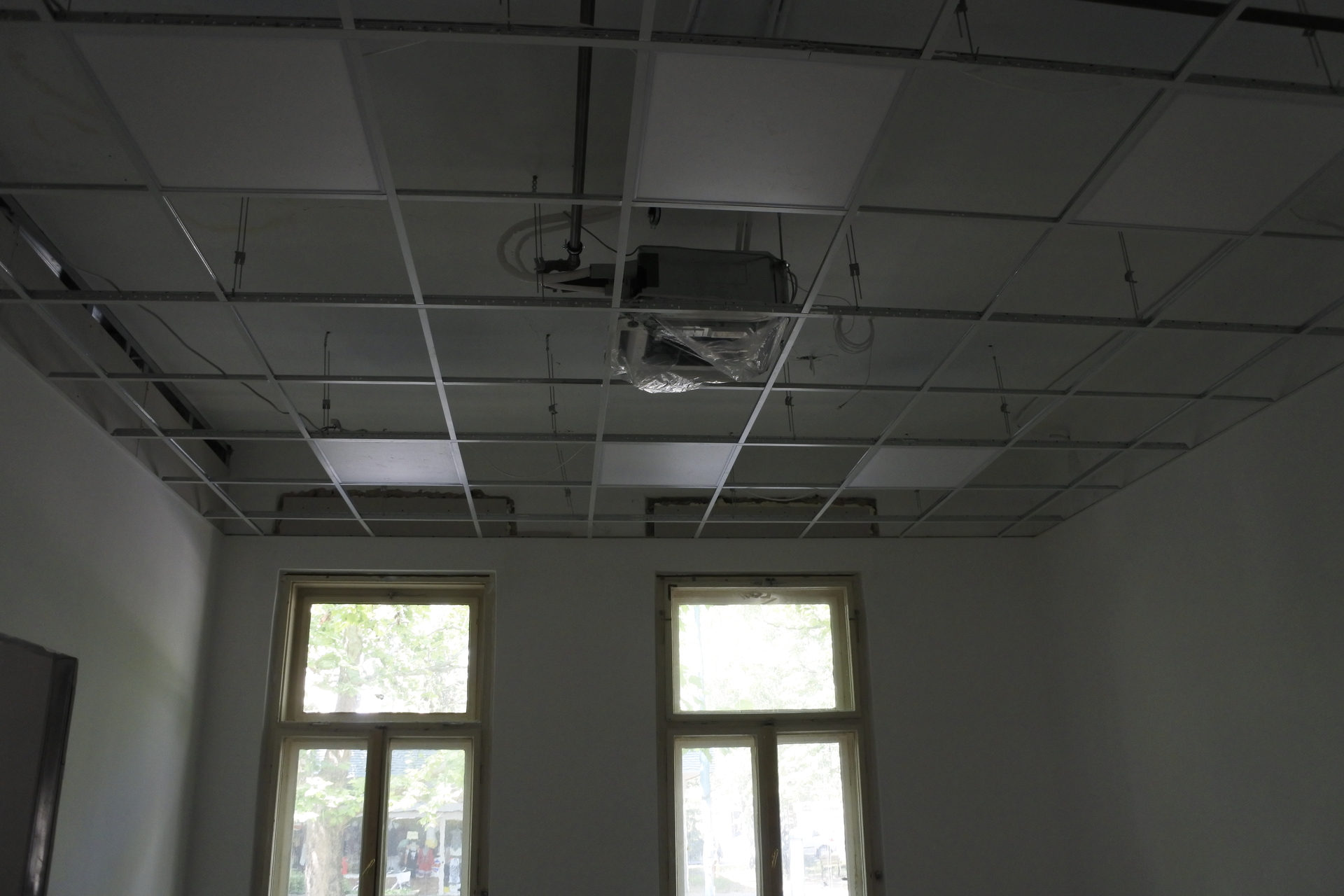 A belső terek egy részét újra burkolják. A pince és a lépcsőház kivételével a teljes mennyezeti felület hőszigetelt kazettás álmennyezetet kap, a falfelületeket pedig javításukat követően újra festik. A belső nyílászárók szintén megújulnak.