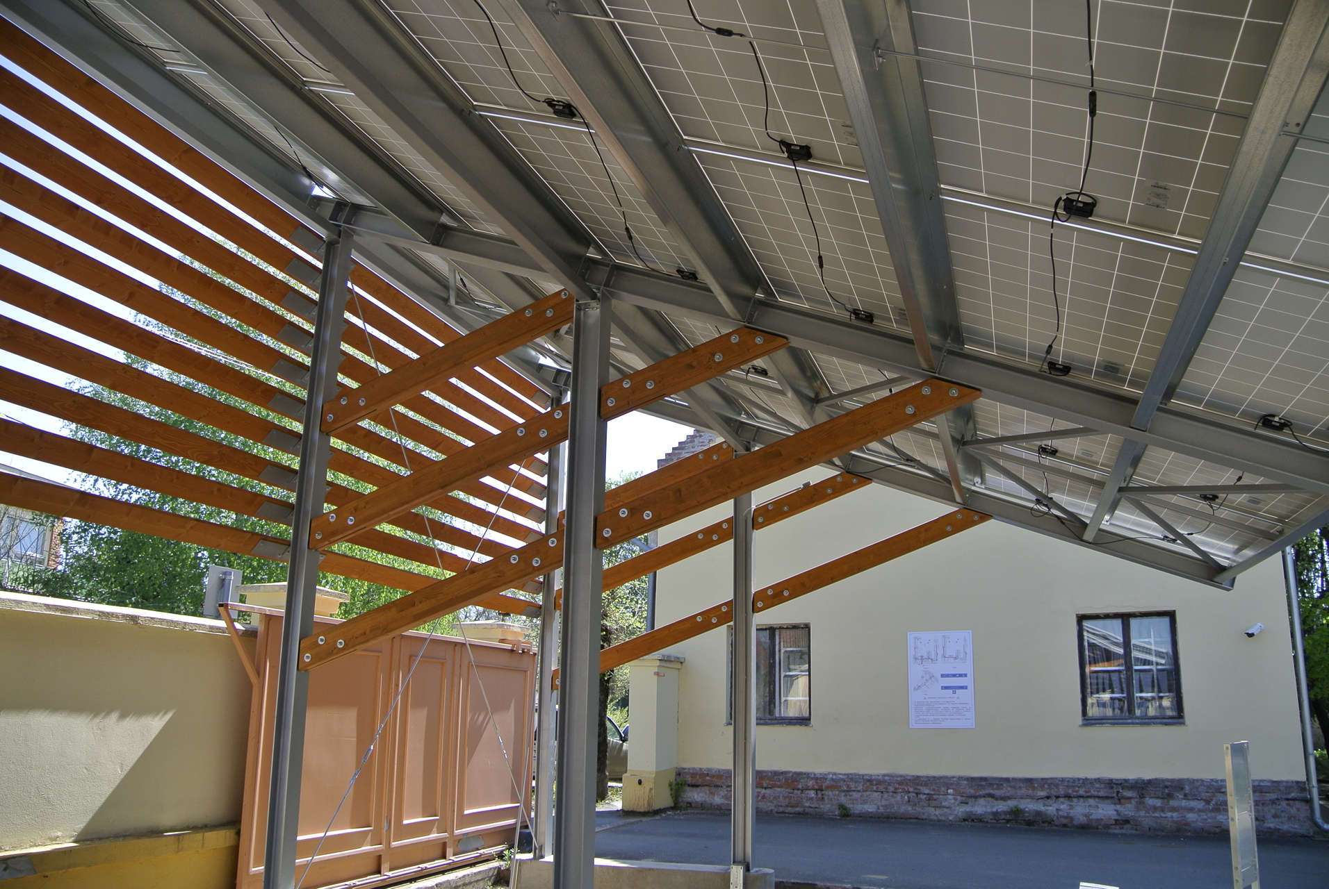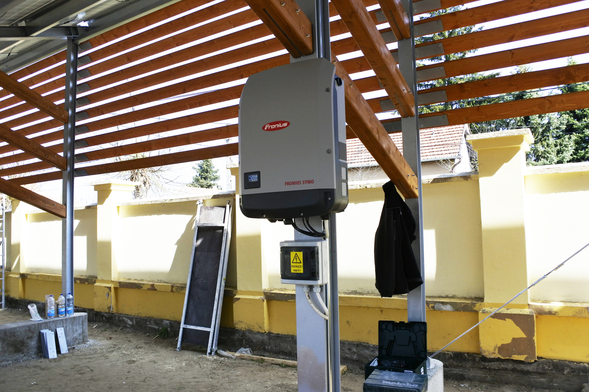 A munkálatok során egy 196 napelemmodulból álló rendszert telepítettek a városháza udvarára. Figyelembe kellett venniük azt is, hogy a rendszert úgy kellett kiépíteni, hogy közben ne sérüljenek a műemléki értékek, így jött a megoldás, hogy az udvaron, kvázi parkolóárnyékolóként helyezték el az elemeket.