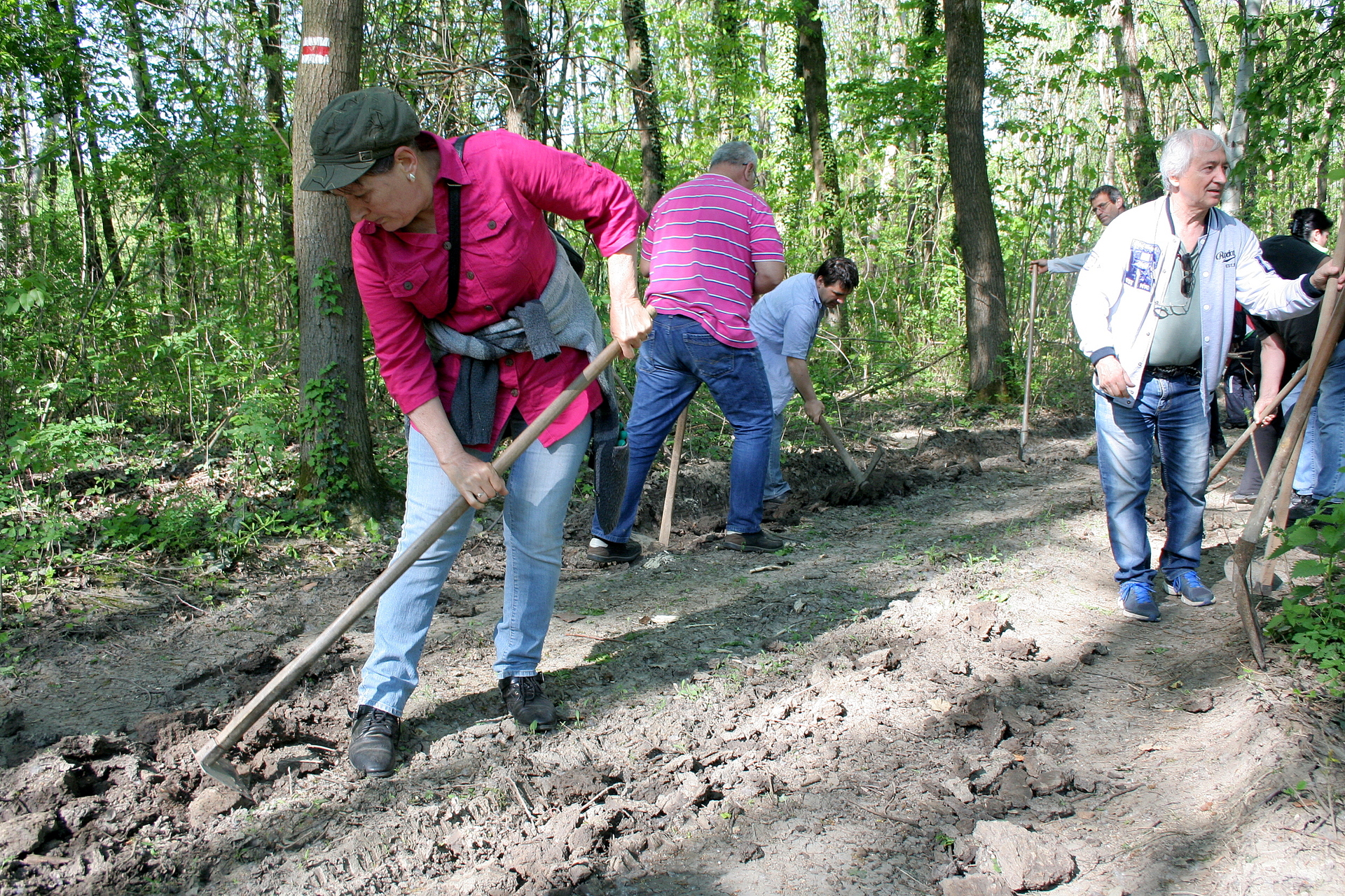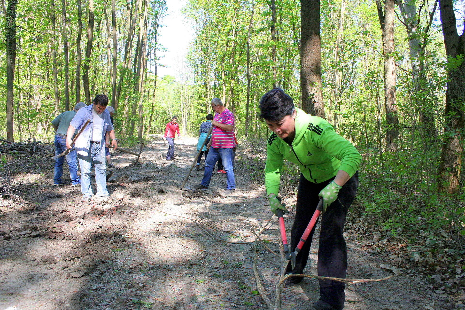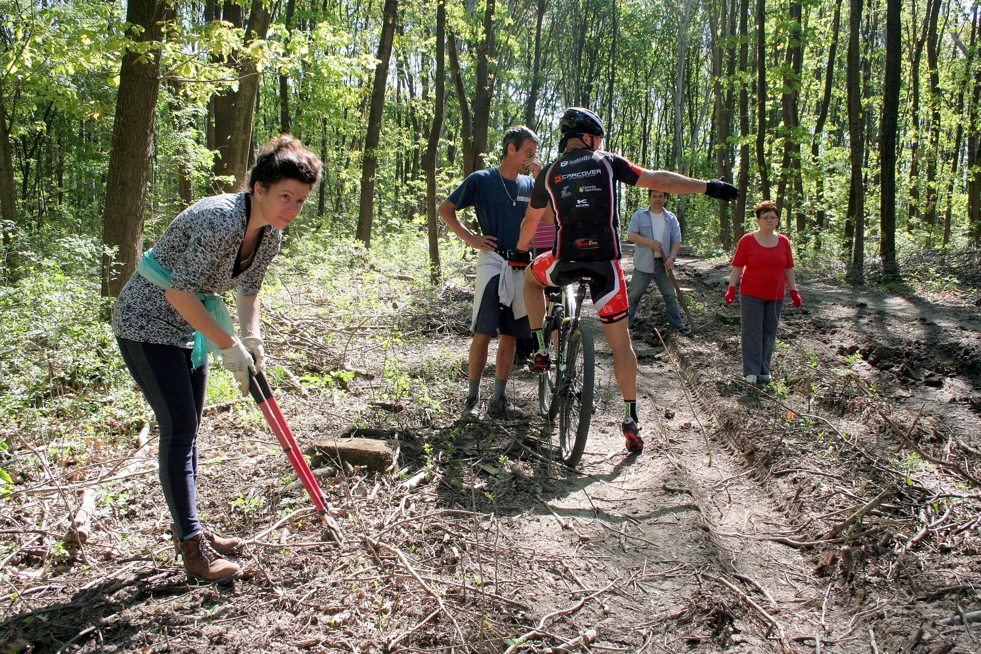 A vasárnapi önkéntes munkát az illető erdőrészleten áthaladt túrázók, kerékpározók és lovasok is üdvözölték.