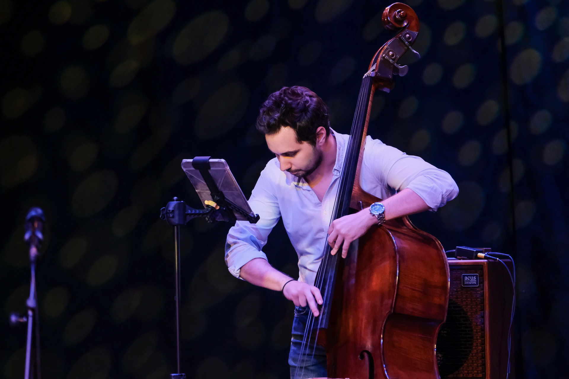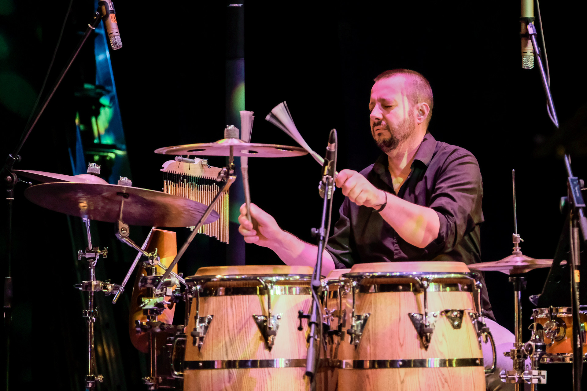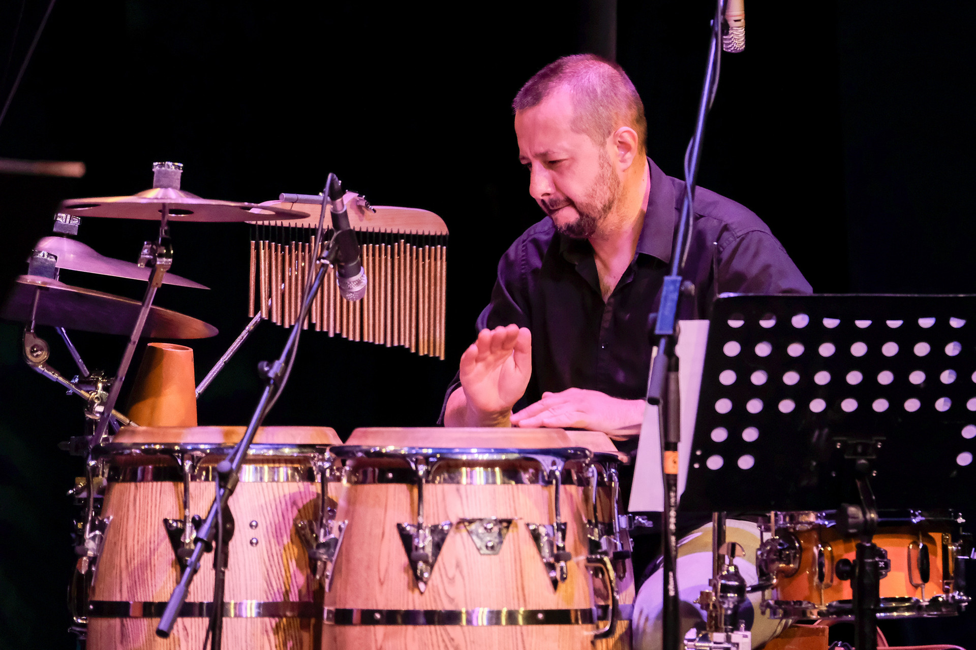 Aztán egy másik barátját, Urbán Orsit is színpadra szólította. Az énekesnőről azt mondta, meghatározó művész az életében. A következő percekben Chick Corea Spainje csendült fel, majd Antonio Carlos Jobimtól a melankolikus és intim hangvételű Képek feketében és fehérben. Ezzel a jazznek egy másik területére kalauzolta el a nagyérdeműt az együttes.