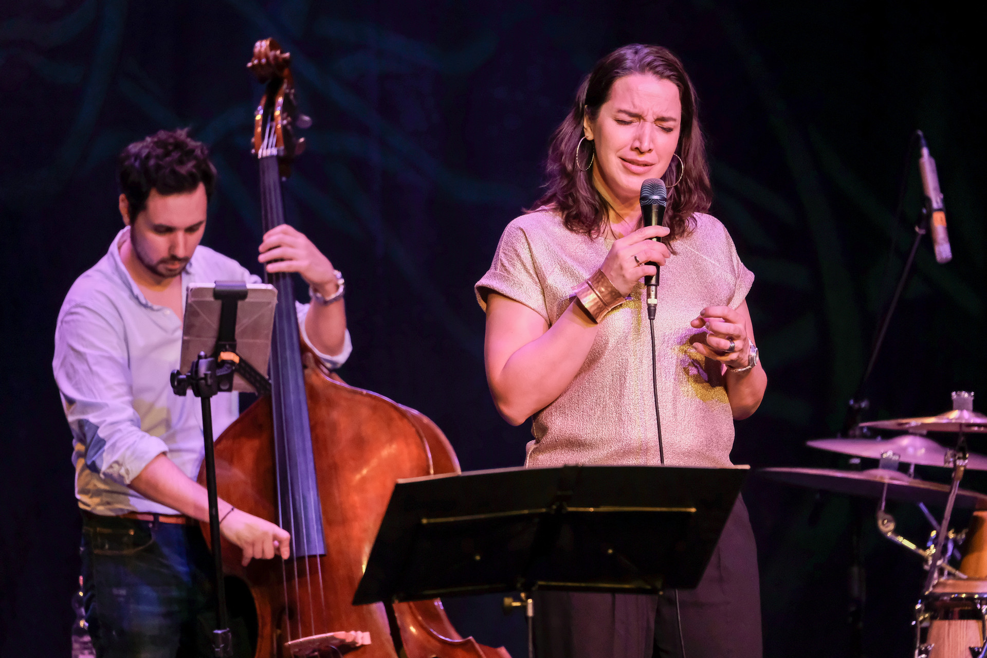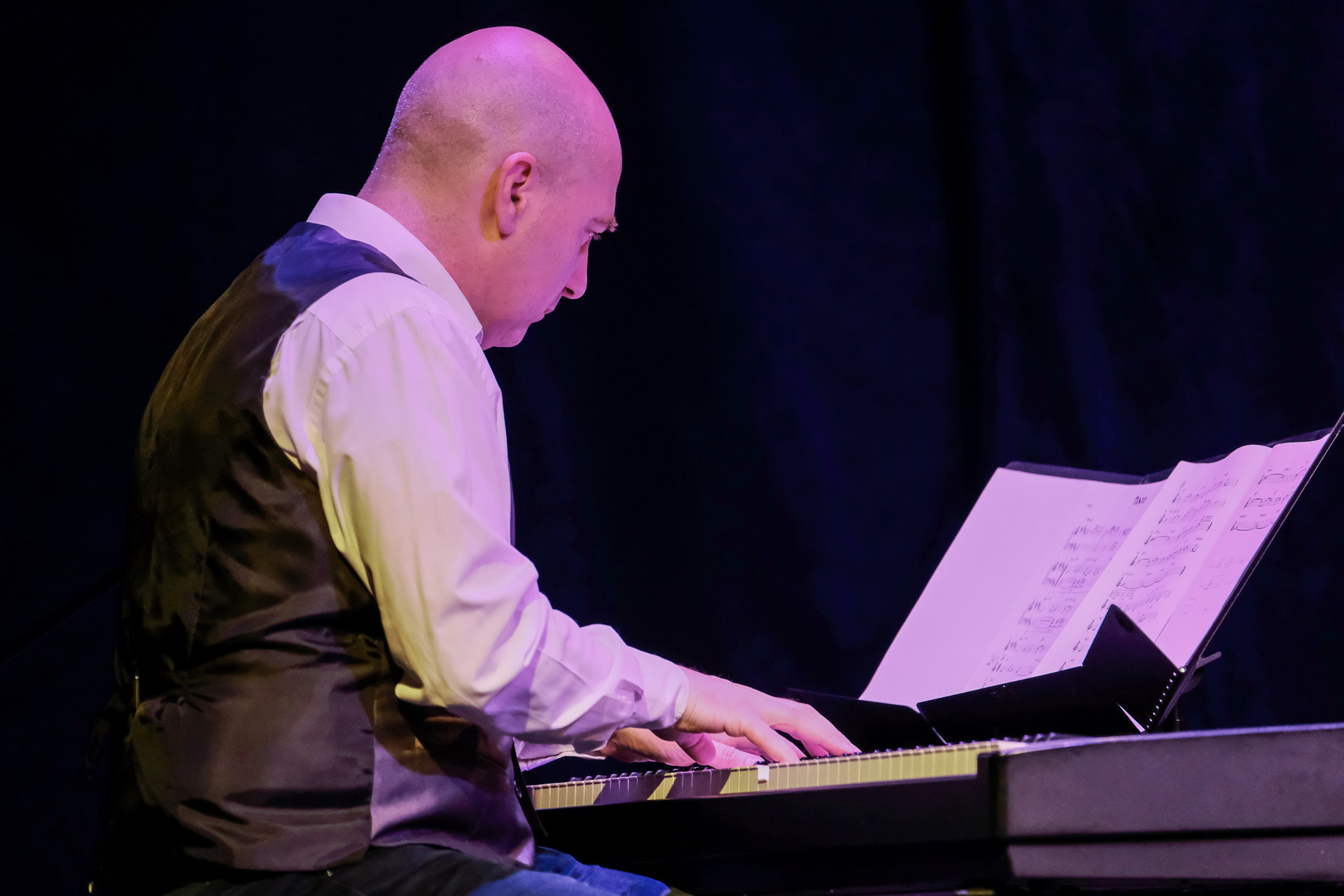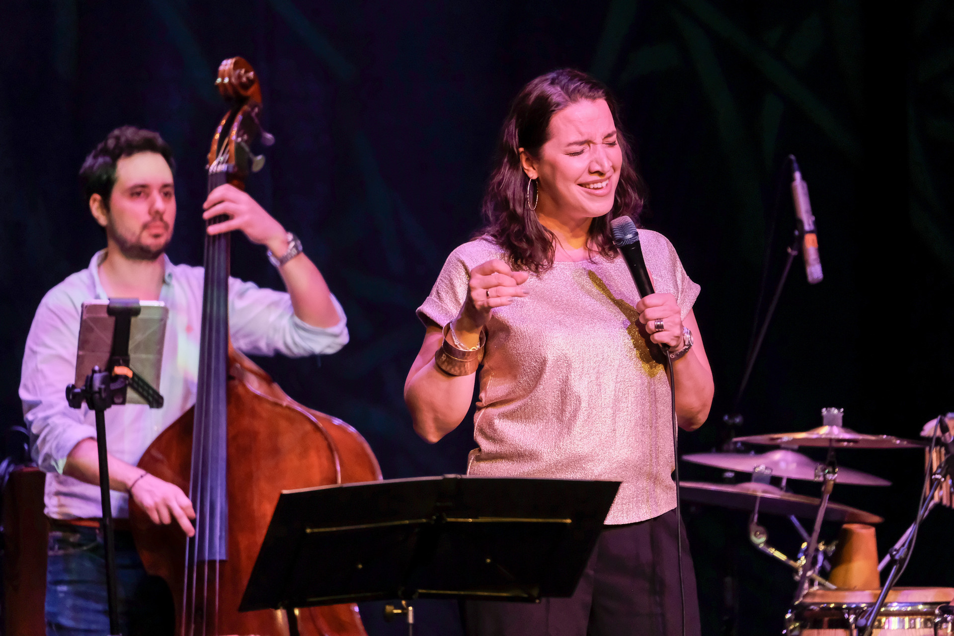 Aztán egy másik barátját, Urbán Orsit is színpadra szólította. Az énekesnőről azt mondta, meghatározó művész az életében. A következő percekben Chick Corea Spainje csendült fel, majd Antonio Carlos Jobimtól a melankolikus és intim hangvételű Képek feketében és fehérben. Ezzel a jazznek egy másik területére kalauzolta el a nagyérdeműt az együttes.