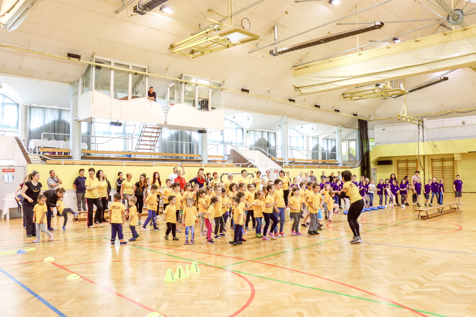 A nap játékos programokkal folytatódott. Elsőként a Nyuszi csoportos gyerekek mutattak be táncos produkciót, majd zenés bemelegítővel folytatódott a délelőtt. Ezek után a Sport Manó program eszközeinek bemutatása, kipróbálása következett, majd az eseményt támogató sportáruház eszközeit is bemutatták a legkisebbeknek.
