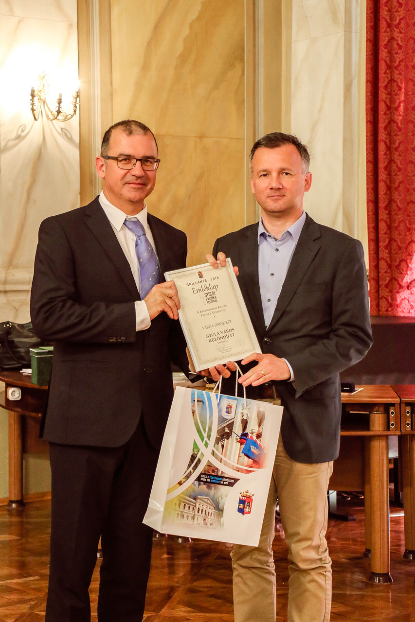Gyula város különdíját Görgényi Ernő polgármester adta át a Várda Drink Zrt.-nek.