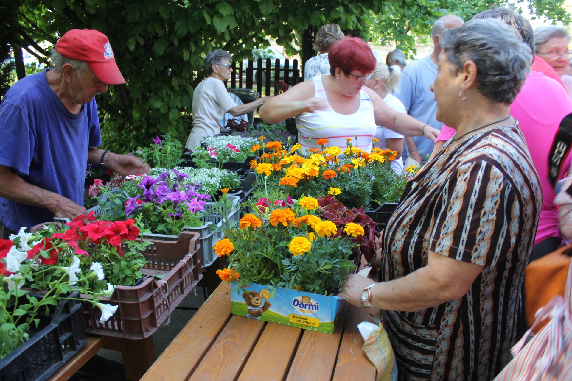 A Szentháromság utcában folytatódott az egynyári virágok kiosztása