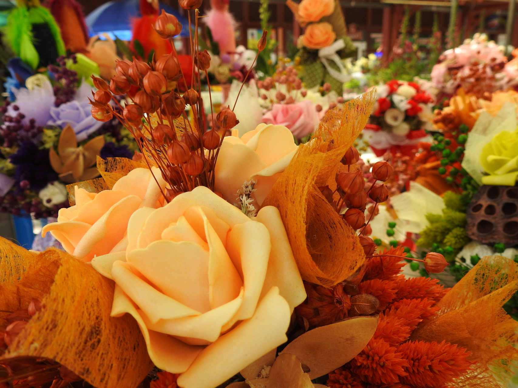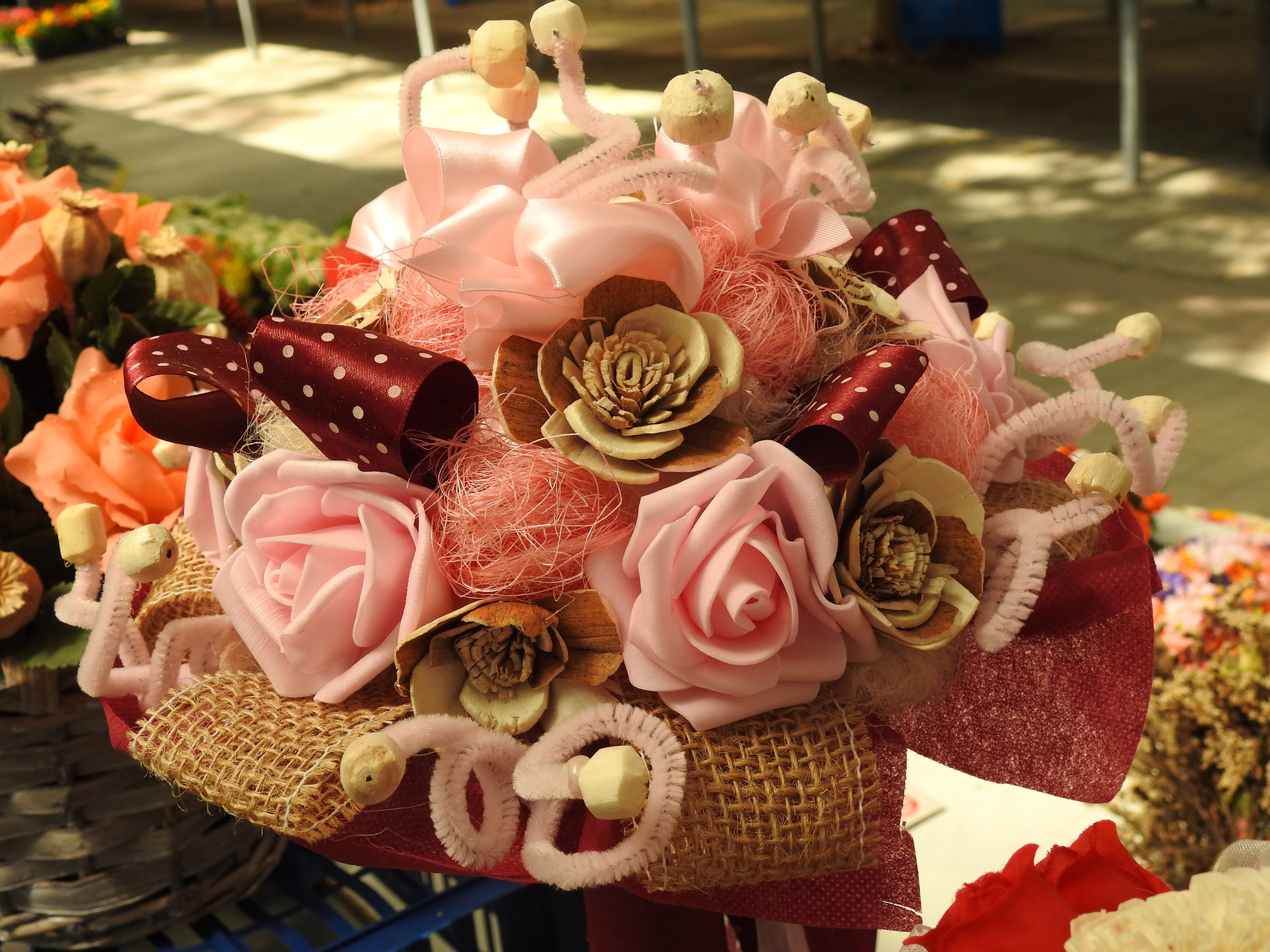 Anyák napjára, esküvőre és ballagásra is vásárolhatunk száraz és selyem virágból, valamint termésekből készült csokrokat a gyulai piacon.