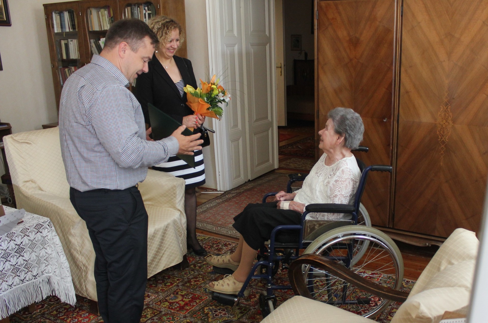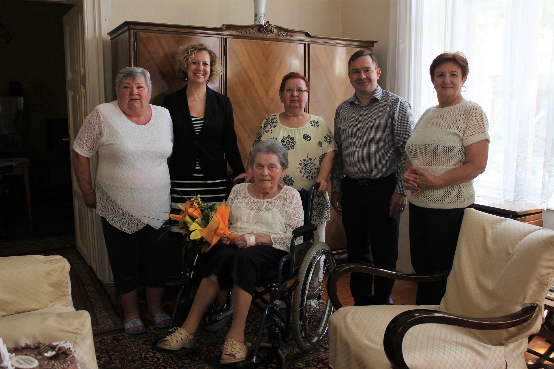 Otthonában köszöntötte Iványi Jánosnét május 4-én Becsyné Szabó Márta főjegyző, Kónya István alpolgármester és Mittag Mónika önkormányzati képviselő. Az ünnepeltnek tortát, virágot és emléklapot vittek ajándékba.