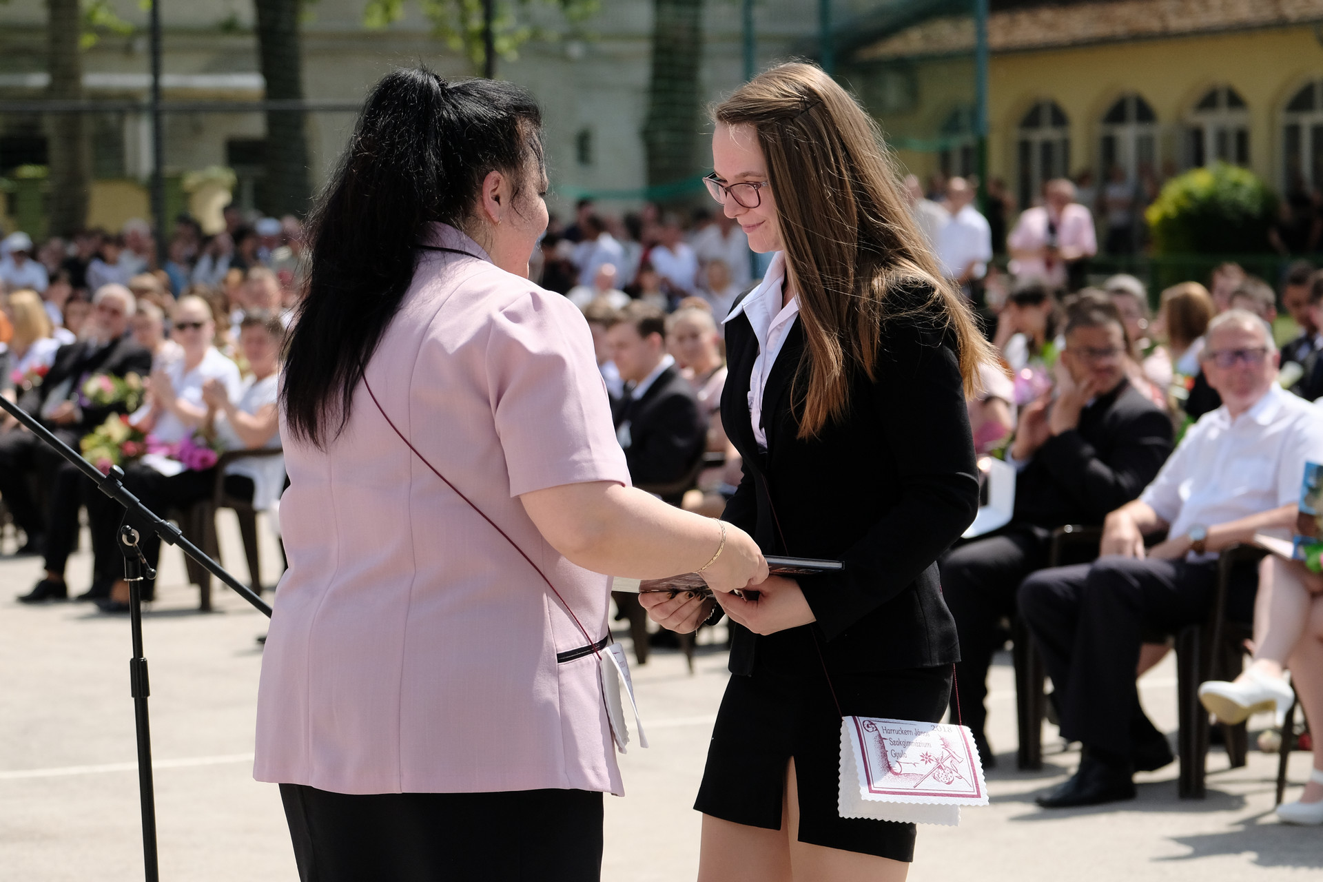 Czeglédiné Szappanos Anita intézményvezető Haraszti Noémi 11. osztályos tanuló szavalata után búcsúztatta el a végzősöket. Beszédében így fogalmazott, tervekkel, álmokkal, vágyakkal ülnek most itt, de talán nem értik, mi értelme volt a sok tanulásnak, próbatételnek, kihívásnak. Nem baj, ha ezt érzik, mondta az igazgató, többet kell ahhoz élni és tapasztalni, hogy igazán felismerjék az iskola, a műveltség, a helyes magatartás elsajátításának jelentőségét. Czeglédiné Szappanos Anita azt javasolta, készüljenek fel a vizsgákra, és ne feledjék, napjainkban újra felértékelődött a tudás, a becsületes kétkezi munka. Ezért ne a teljesítmény nélkül megszerzett bizonyítványok csalóka világát keressék, a valódi, tartós sikerért ugyanis mindenütt meg kell dolgozni. Igyekezzenek megérteni mindent, de egy-egy területen mélyedjenek el az átlagosnál jobban, ettől lesznek egyediek, érdekesek.