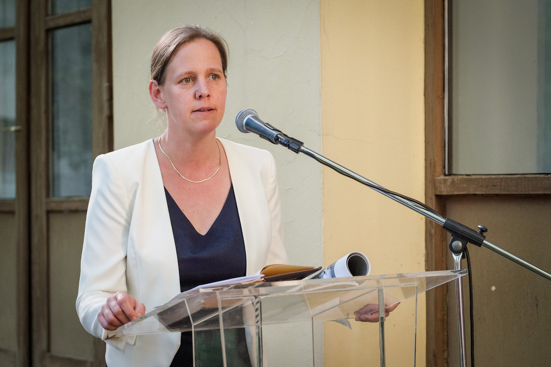Földváryné Kiss Réka, a Nemzeti Emlékezet Bizottsága elnöke azzal vezette fel méltatását, hogy kijelentette: nem hitte volna, hogy aktuális lesz ez a kiállítás 2018 májusában, amikor Nyugat-Európa Marx Károlyt szoborral és emlékünnepség-sorozattal ünnepli, köztük olyan politikusok is, akik magukat kereszténydemokratának vallják. A történész aláhúzta: nekünk különösen fontos feladatunk emlékeztetni arra, mi volt az a bizonyos alkotó marxista gondolat. Ebből idézte: annyi rést kell ütni a keresztény állam gépezetén, amennyit csak lehet.