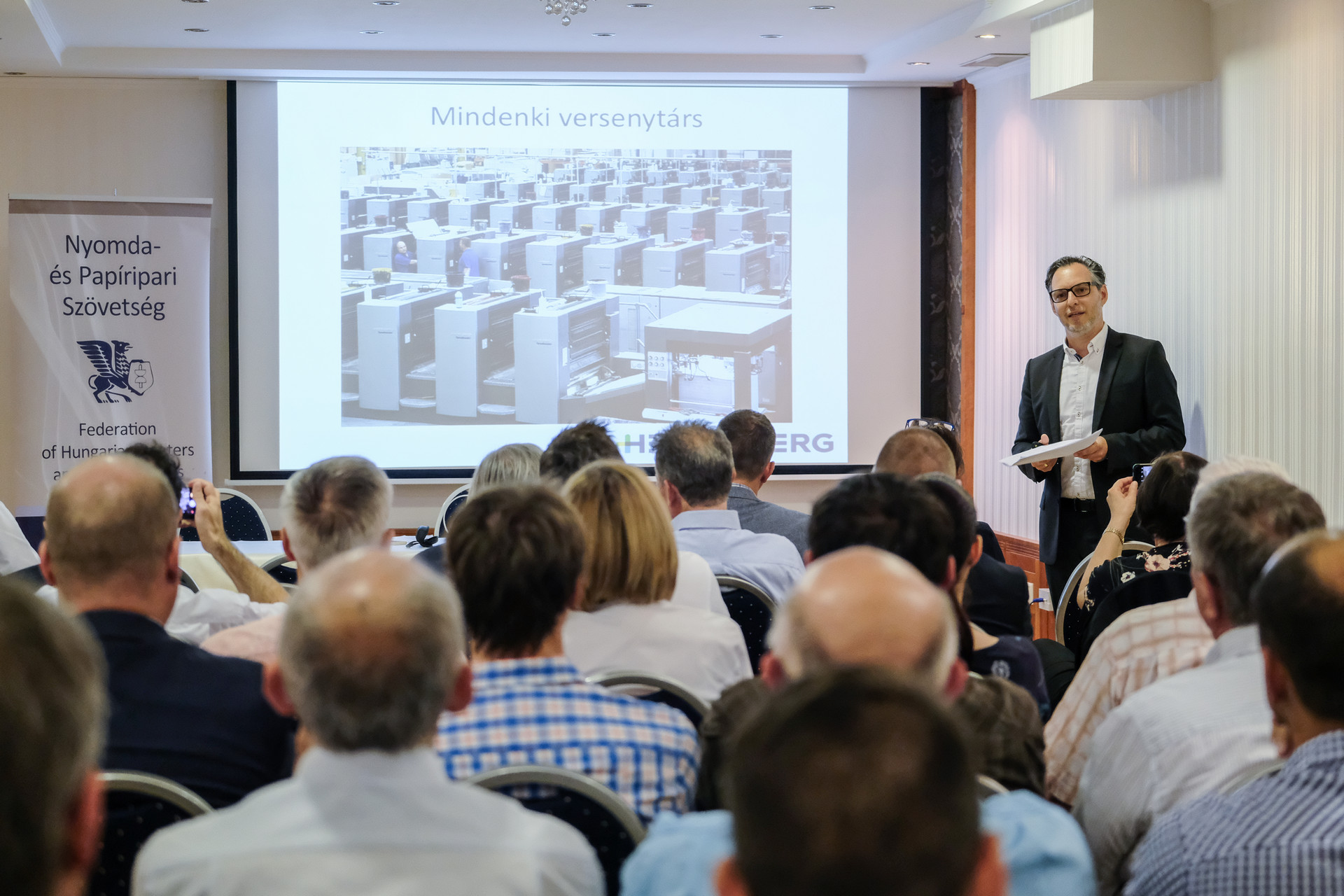 Az összejövetel délután konferenciával folytatódott. Jakubász Péter (Heidelberg Magyarország Kft.) Beruházási trendek a nyomdaiparban címmel tartott előadást, Gál Katalin (MKKE, elnök) a magyar könyvpiac változásait ismertette, a békéscsabai nyomdászképzésről pedig Kása István (Marzek Kner Packaging Kft., ügyvezető igazgató) értekezett. Dr. Schultz Péter az ofszet és a digitális technológia előnyeit és hátrányait elemezte, a műanyag jövőjéről, megújulásáról vagy megszűnéséről Nagy Miklós (CSAOSZ, főtitkár) beszélt. Bod Péter Ákos közgazdász, egyetemi tanár arra a kérdésre adott választ, hogy merre tart a világ gazdasága, és számba vette, melyek azok a globális trendek, amelyek Magyarországra is hatással lesznek.
