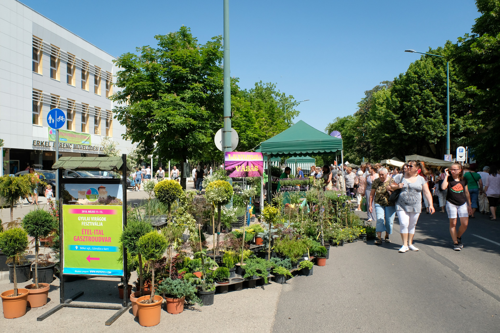 Az egész napos virágpiacot délután Pepe manó műsora színesítette, majd a Gyulai ifjúsági Fúvószenekar biztosította a jó hangulatot.