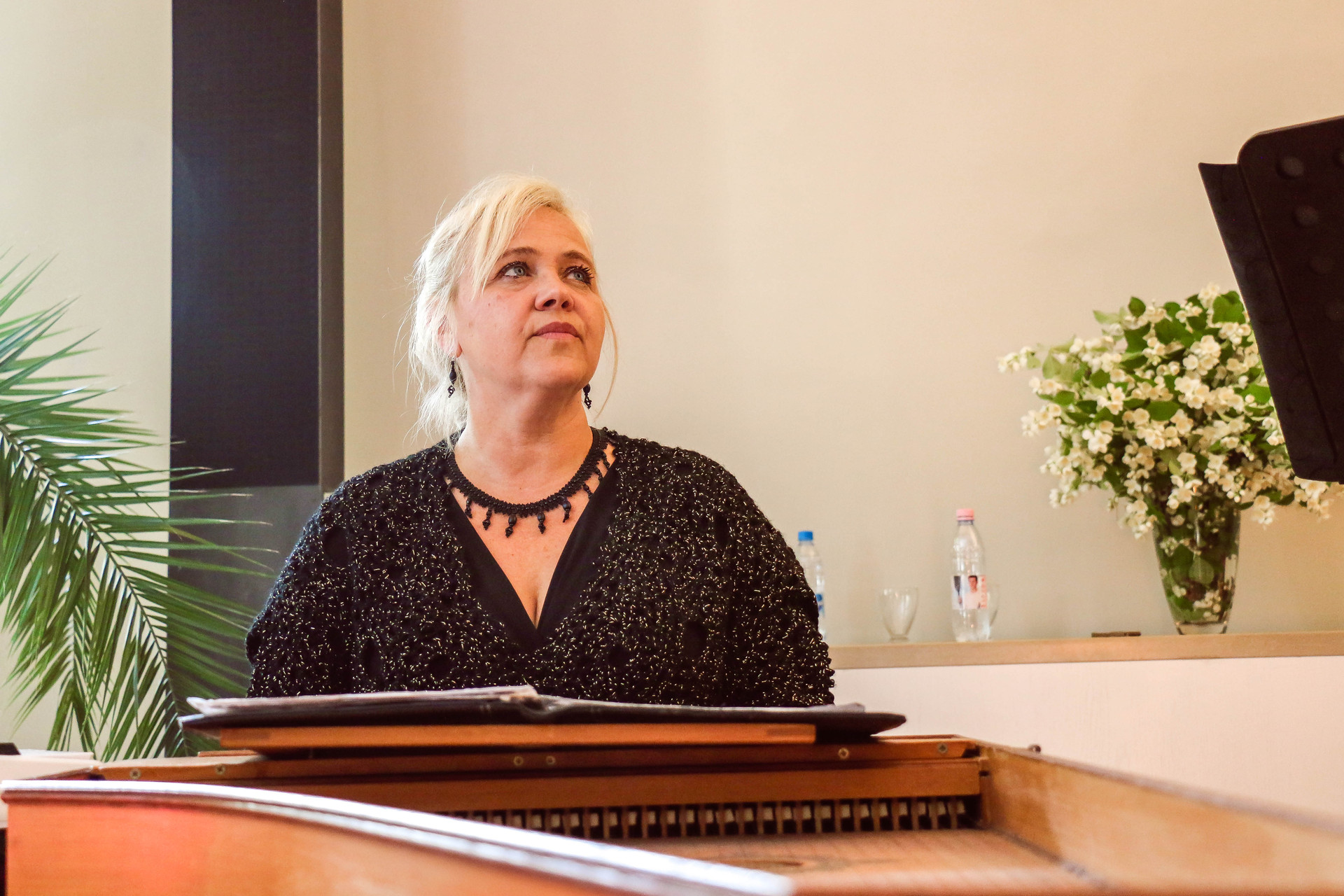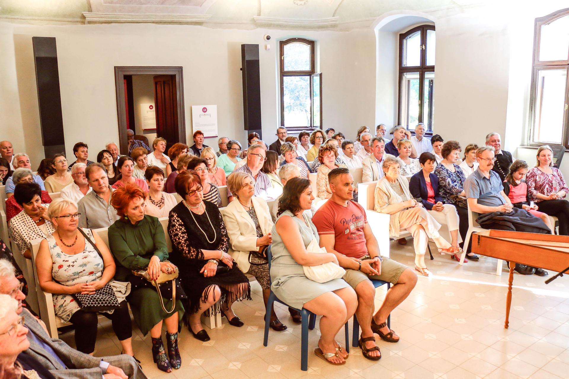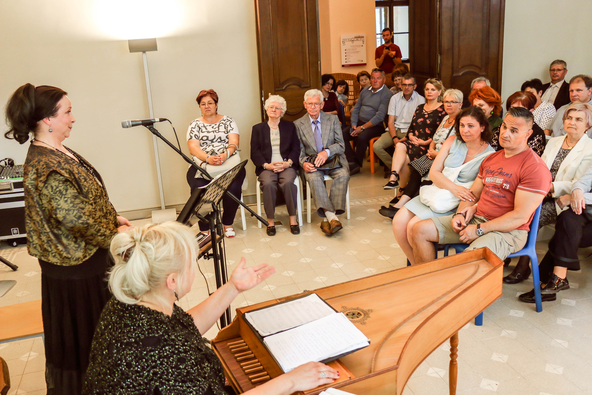 Egy szusszanásnyi időt a pihenőpercekből Andrejszki Judit arra használt fel, hogy bemutassa publikumának a csembalót. Elmondta, bár sokan annak tartják, nem a zongora őse, hisz a csembaló valójában egy pengetős hangszer. A 15. századtól használták, és virginálnak is nevezték. Az erdélyi főúri házakban nagyon elterjedt volt, többek között Bethlen Gábor, Apafi Mihály udvarában is zenéltek rajta. Előbb a reneszánsz, majd a barokk kamarazenének lett az alaphangszere, a későbbikben viszont szólóhangszerként is befutott. A 17–18. században hatalmas hosszúságúra kezdték építeni, így egyre nagyobb hangerőt adott ki. Brandenburgi Katalin egyik virginálját a Magyar Nemzeti Múzeumban őrzik, ebbe akkoriban egy ékszerdobozt és egy varródobozkát is beépítettek, ami azt jelzi, hogy napi használatban volt.
