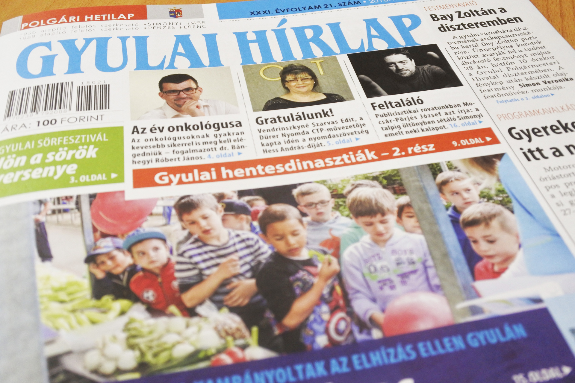 Gyulai Hírlap - Itt a legfrissebb Gyulai Hírlap! Jön a gyereknap! Díjat kapott a gyulai nyomda munkatársa! Bay a díszteremben!