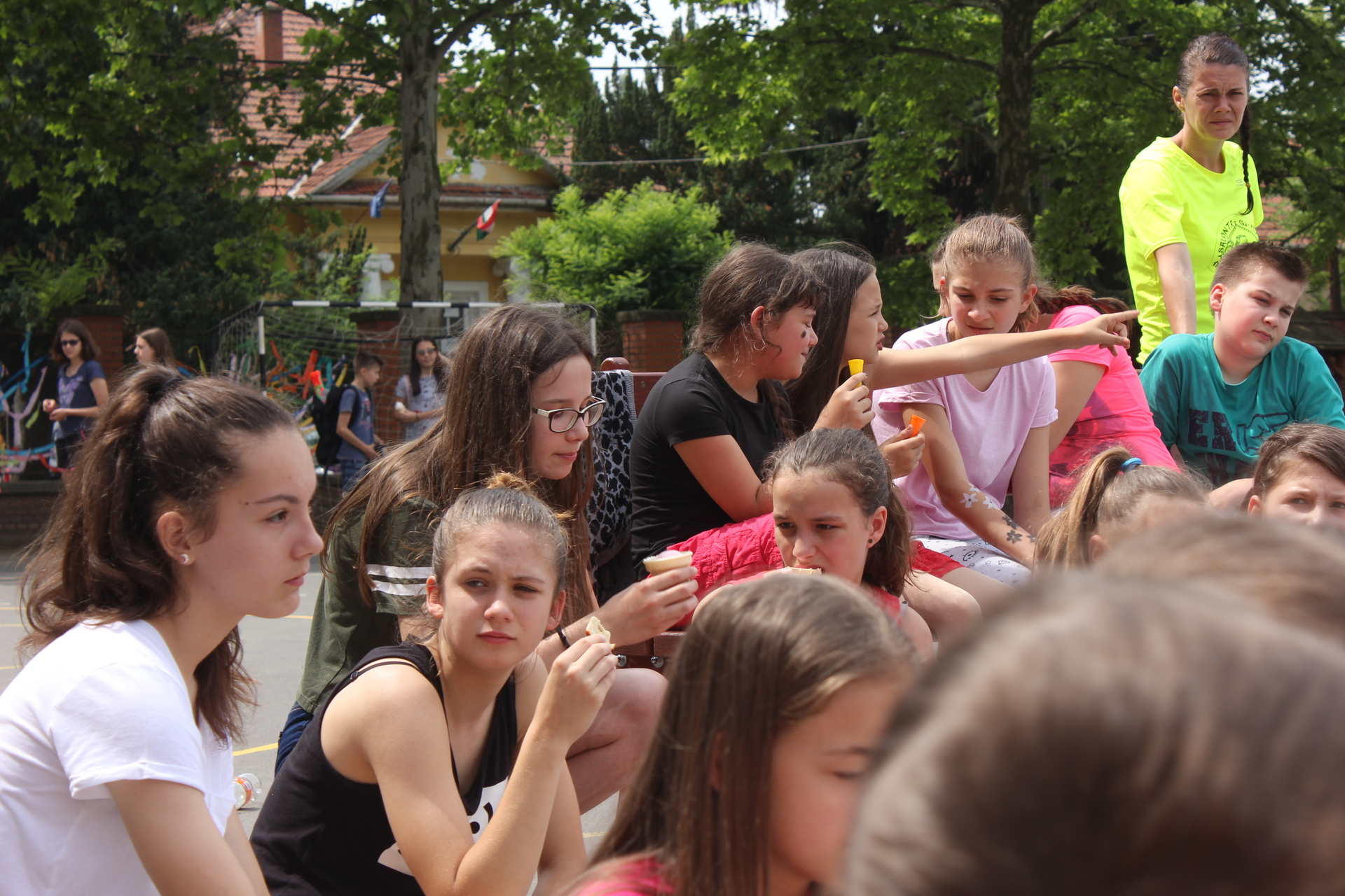 – Nagyon szeretik a diákok a Mr. & Mrs. című páros vetélkedőt, de népszerű volt a Honfoglaló bajnokság is, és természetesen a számítógépes játékokat is nagyon élvezték – árulta el az iskola újdonsült diákigazgatója, aki azt is hozzátette, hogy érkezésünkkor éppen vízibomba-bajnokság zajlott, amelynek végén balett- és vívásbemutatóval is készültek a tanulóknak.