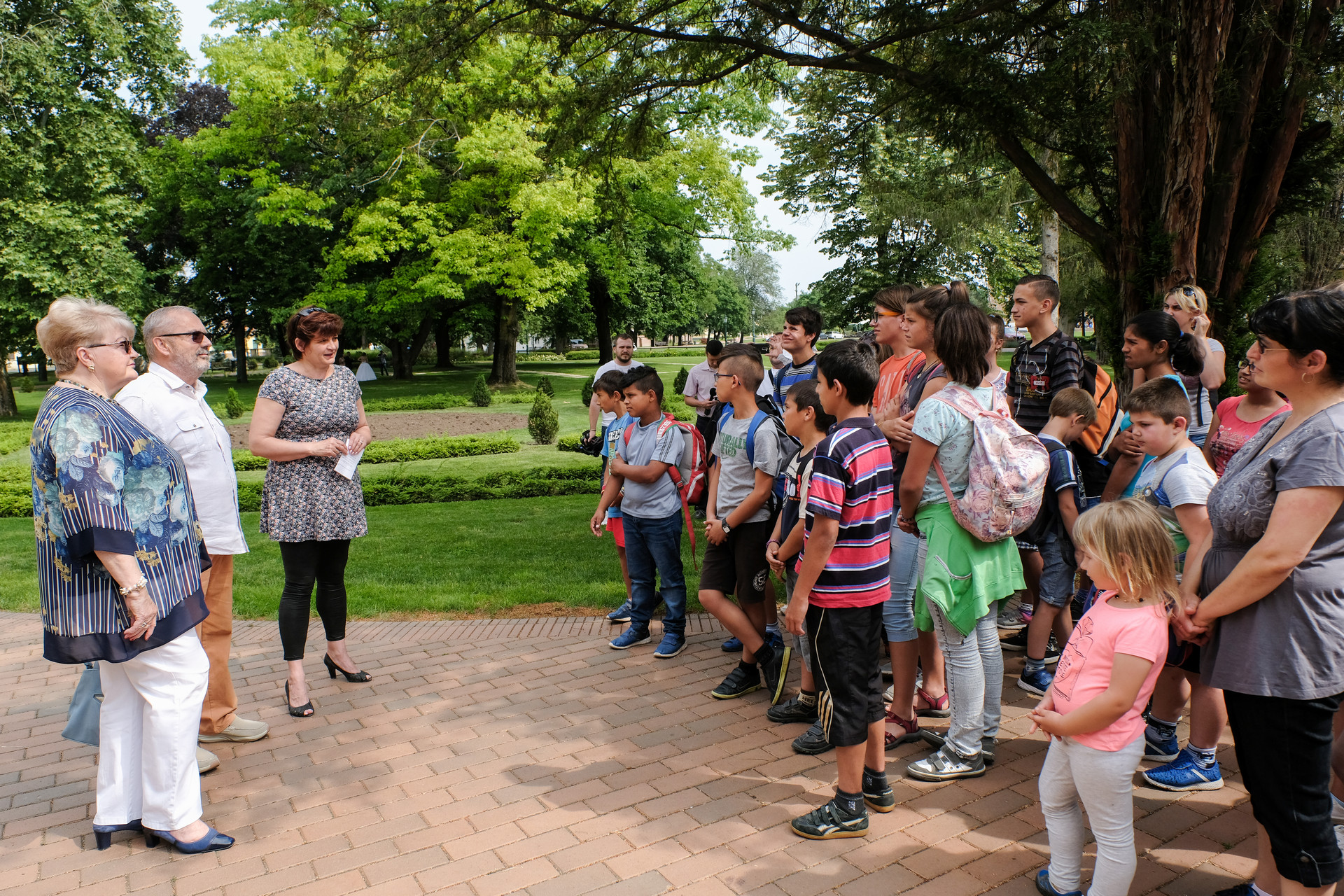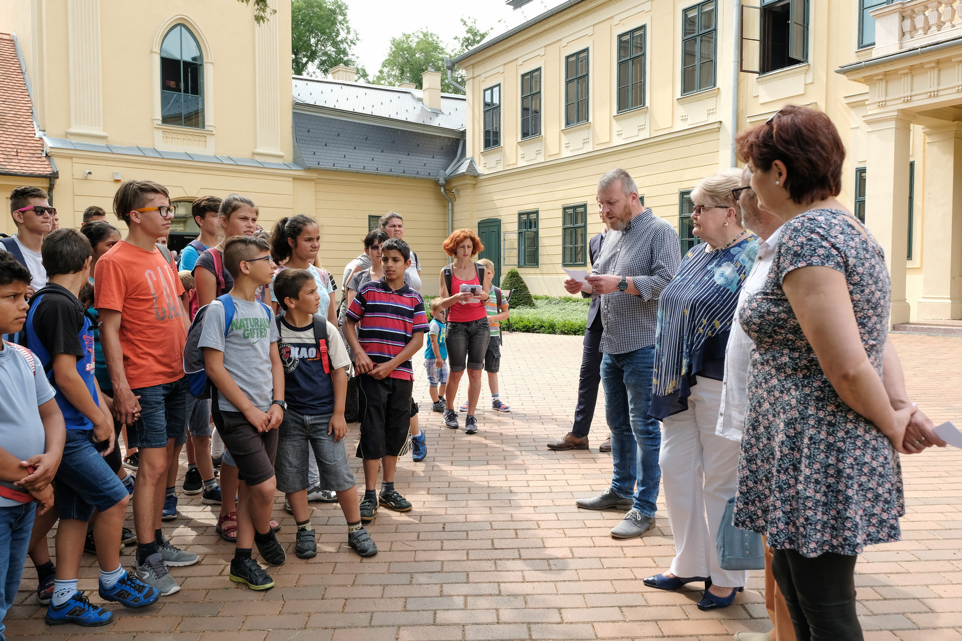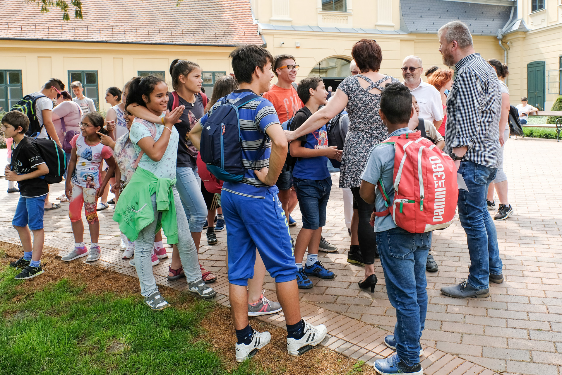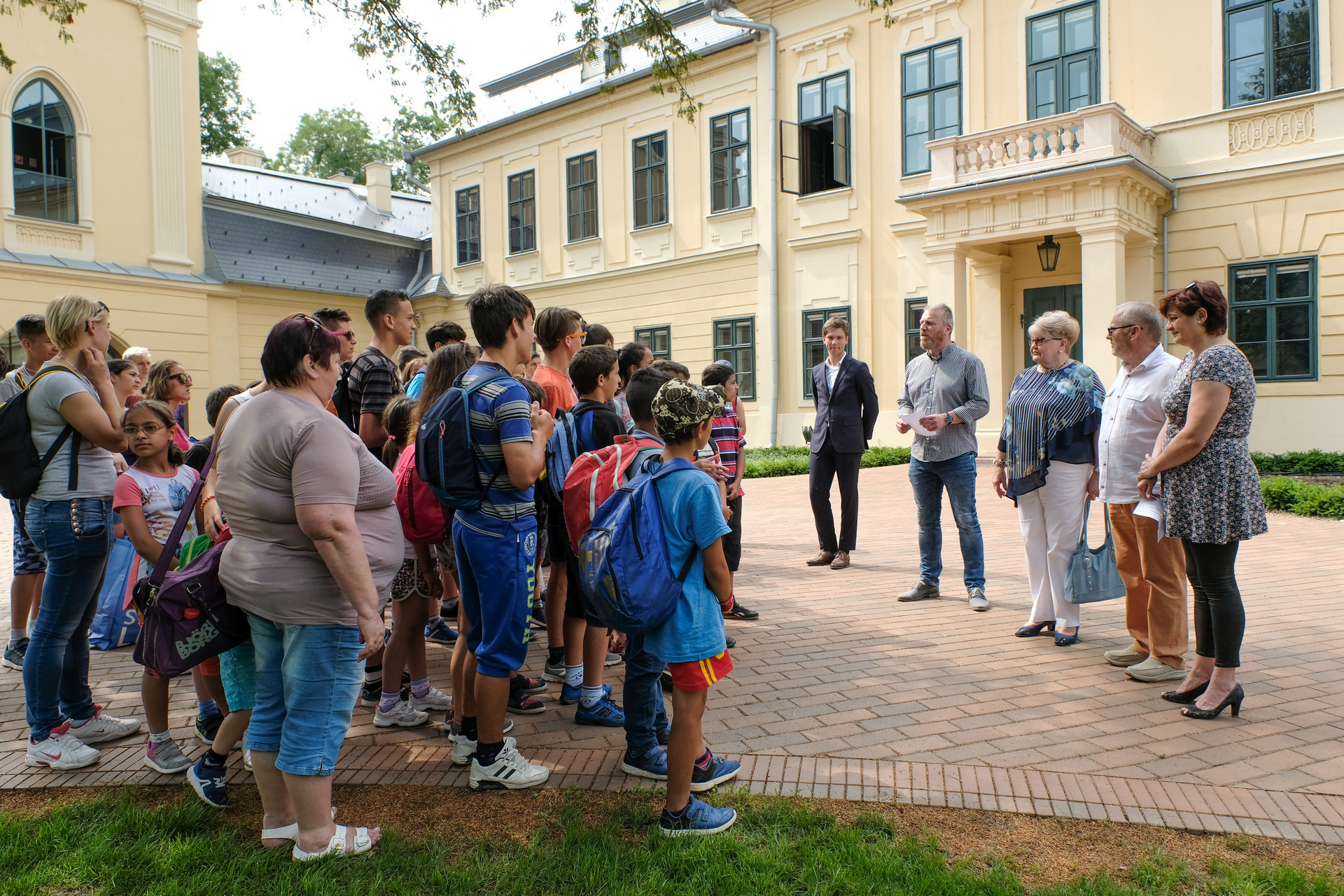A fiatalokat Fábián Tamás, a Gyulai Almásy-kastély Látogatóközpont kommunikációs vezetője köszöntötte, majd átadta szót a kirándulás és a vendéglátás megjelent támogatóinak. Elsőként Mikus Éva kívánt kellemes időtöltést a csapat tagjainak, majd Dombi Ildikó fejtette ki gondolatait. Az ügyvezető elmondta, a kastély életében mindig gyakorlat volt a jótékonykodás, a tulajdonosok folyamatosan tettek azokért, akik a városban és a környéken éltek. Kiemelte, a látogatóközpont folytatni szeretné ezt a tradíciót, ezért külön öröm számukra, hogy az előző évi gyakorlathoz képest idén több partnerrel tudtak együttműködni. Úgy tűnik, hangsúlyozta Dombi Ildikó, egyre szélesedik a segítők köre, ami mögött városi összefogás áll, és hozzáfűzte: gyermeknap tájékán a jövőben is szeretettel várják majd a busznyi gyermeksereget Nagyszalontáról, és mindent meg fognak tenni azért, hogy jól érezzék itt magukat. A fiataloknak azt kívánta, legyenek jó tanulók, céljaik pedig teljesüljenek.