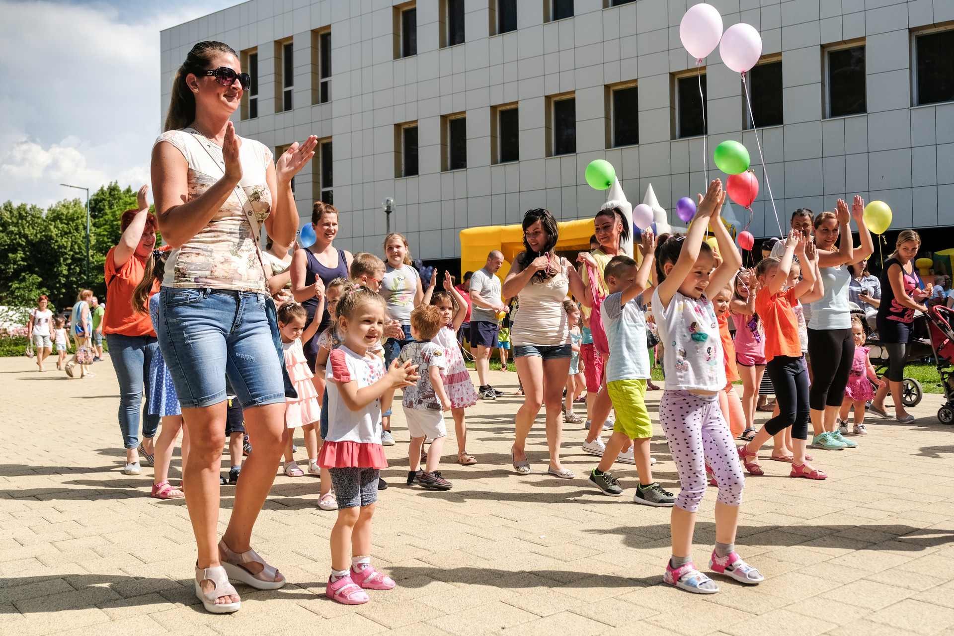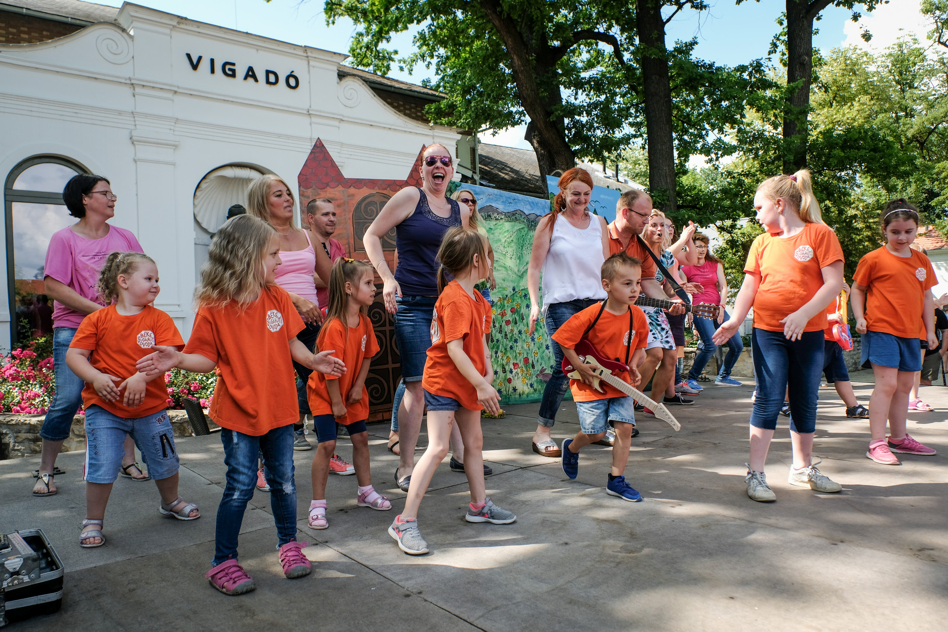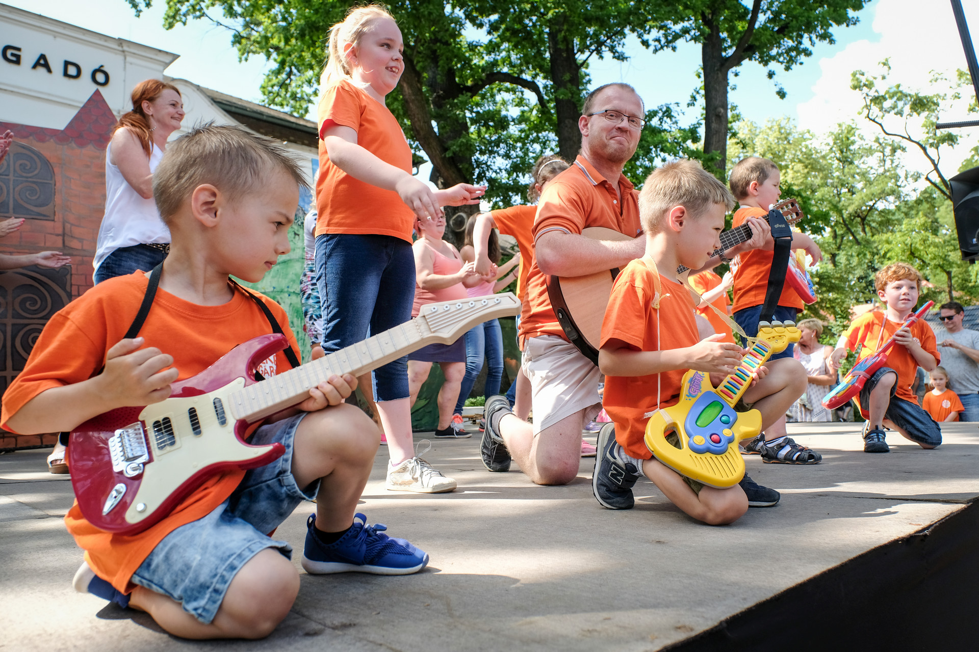 – A táncos flashmobba a szülőket és a gyerekeket is bevontuk, és nagy örömünkre olyanok is csatlakoztak, akik látogatóként voltak a helyszínen. Tánclépésben haladtunk el a színpadhoz, ahol a Béke sugárúti óvodás gyerekek és szülők együtt adták elő a zenés koreográfiánkat. Külön öröm, hogy a műsorba lelkes anyukák mellett apukák is beszálltak. Még gitárt is hoztak az előadáshoz, így lett az egész nagyon családias hangulatú – részletezte a program megálmodója.