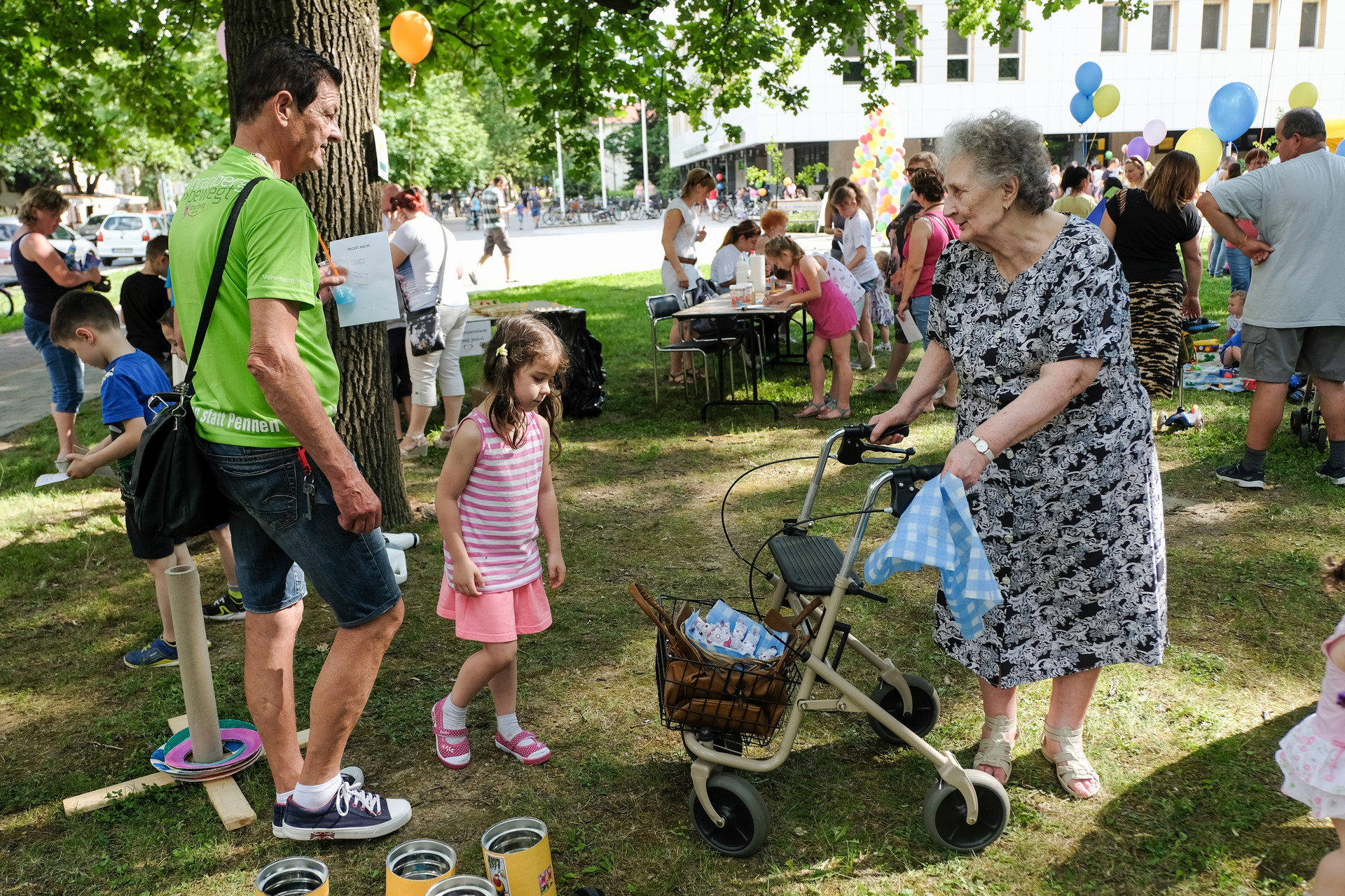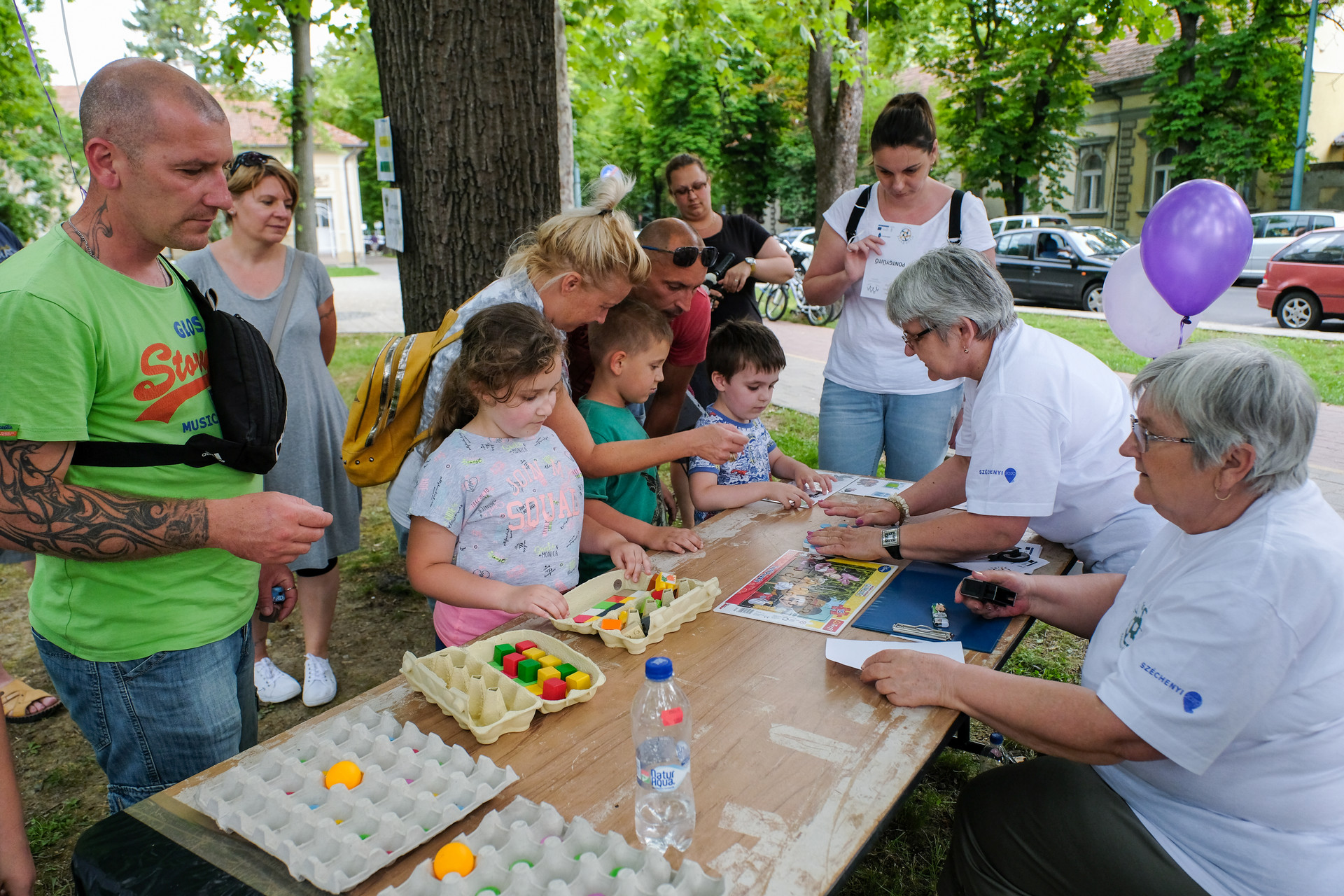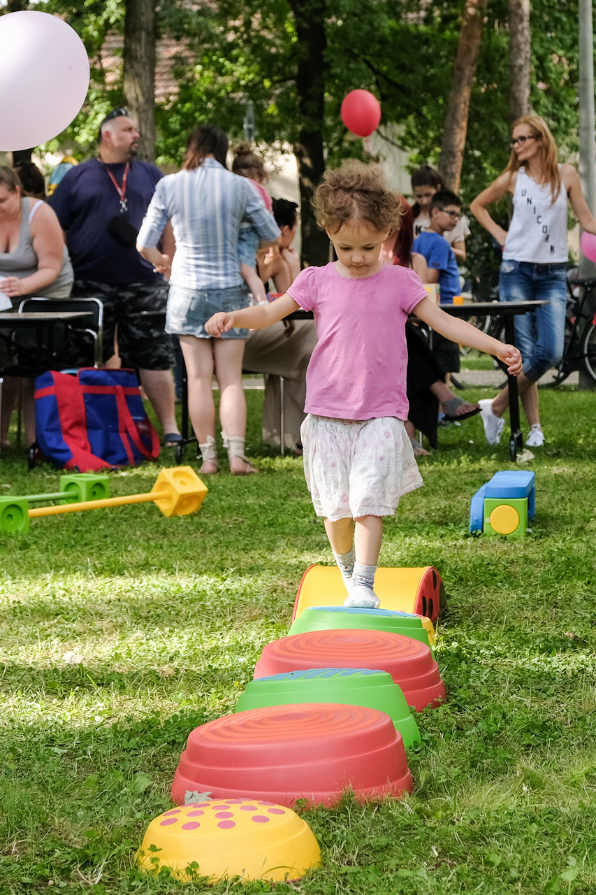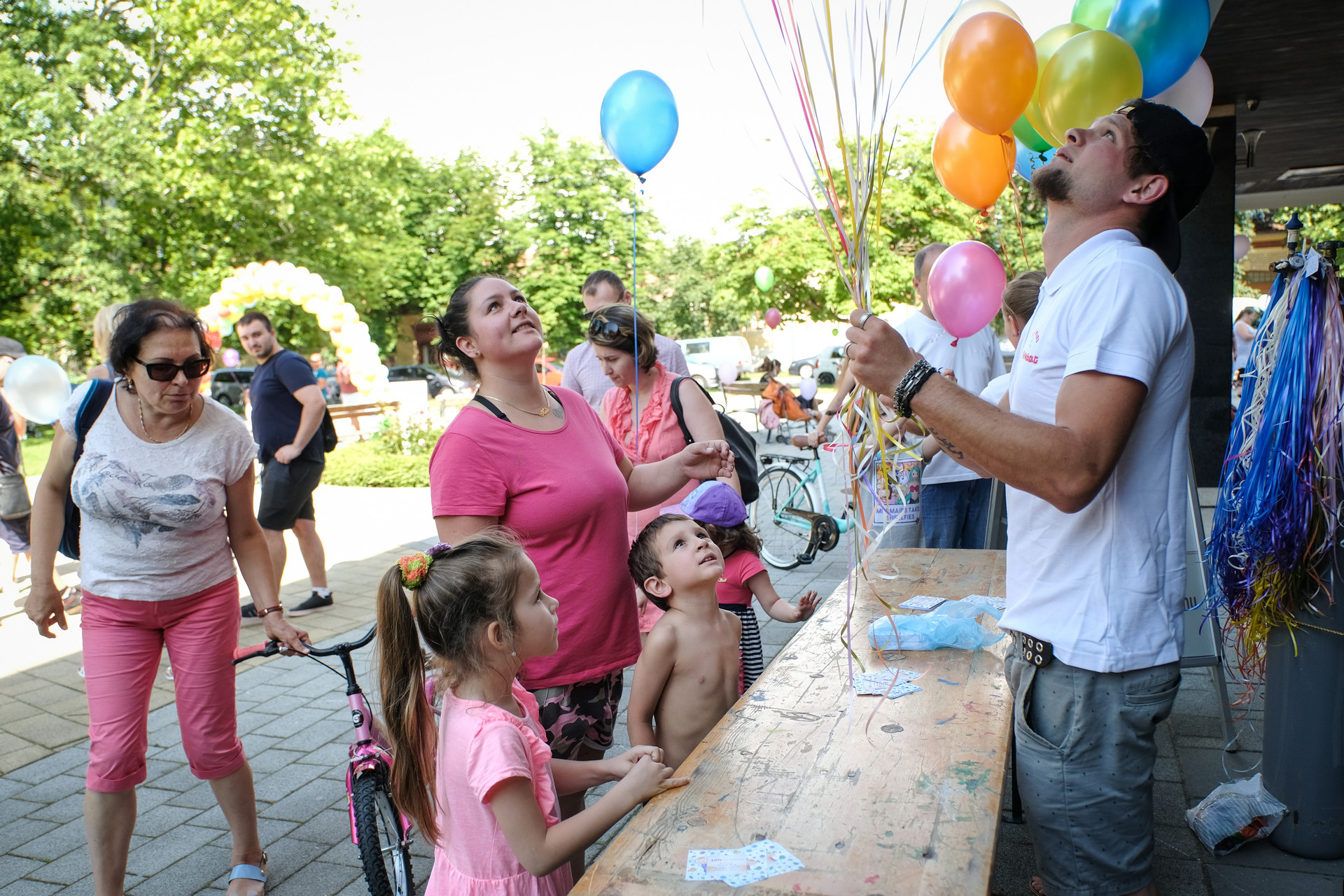 – A táncos flashmobba a szülőket és a gyerekeket is bevontuk, és nagy örömünkre olyanok is csatlakoztak, akik látogatóként voltak a helyszínen. Tánclépésben haladtunk el a színpadhoz, ahol a Béke sugárúti óvodás gyerekek és szülők együtt adták elő a zenés koreográfiánkat. Külön öröm, hogy a műsorba lelkes anyukák mellett apukák is beszálltak. Még gitárt is hoztak az előadáshoz, így lett az egész nagyon családias hangulatú – részletezte a program megálmodója.