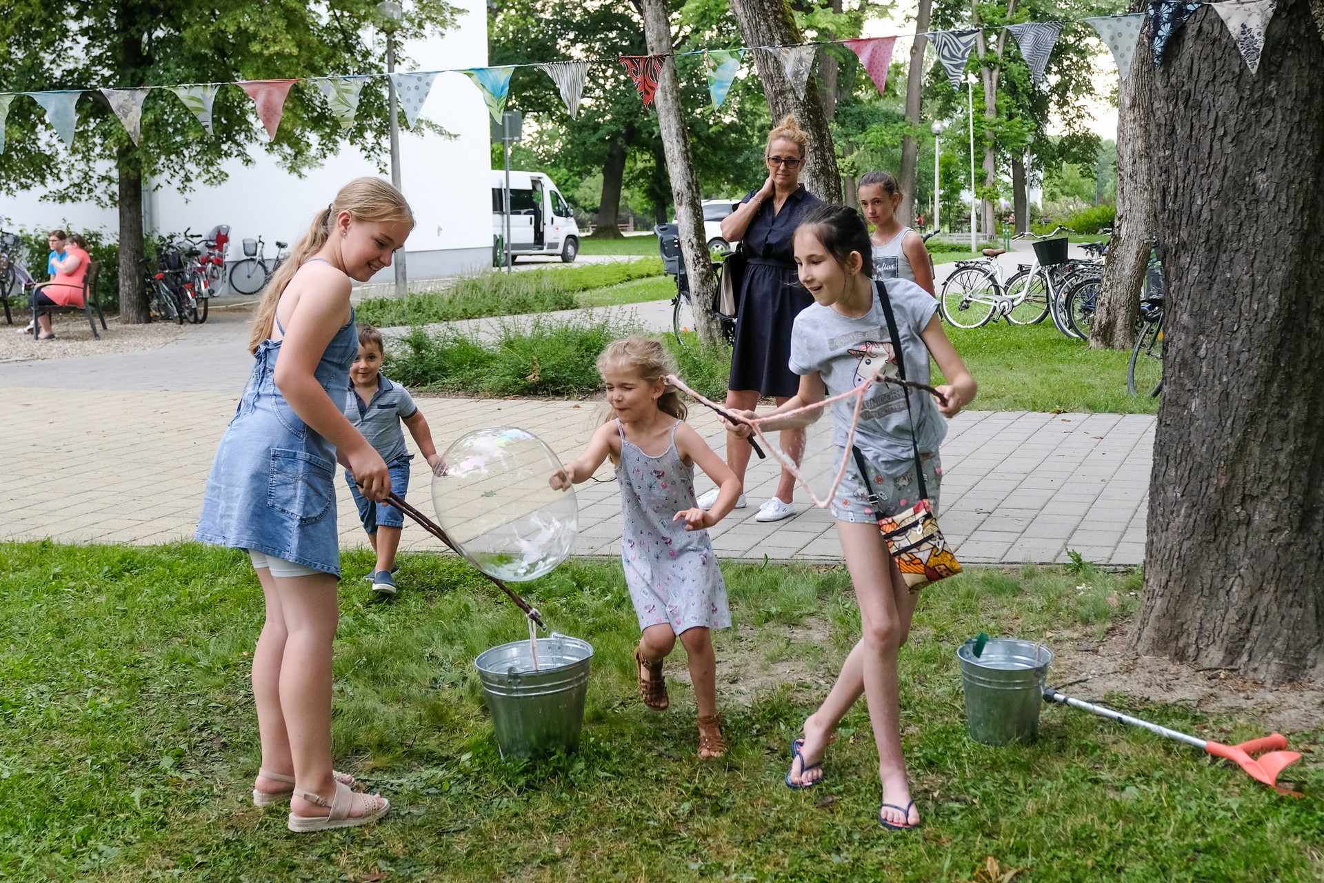Az előadás mellett a Bábika játszóház szórakoztatta a legkisebbeket, akik különböző lányos és fiús kézművesjátékokat, hangszereket készíthettek. A játszóház csapata a téren ügyességi játékokat is bemutatott, amelyeket bárki kipróbálhatott. Az energiák újratöltésére is gondoltak a szervezők, így a gasztrokínálatból nem maradhatott ki a kürtöskalács, a vattacukor és a törökmogyoró sem.
