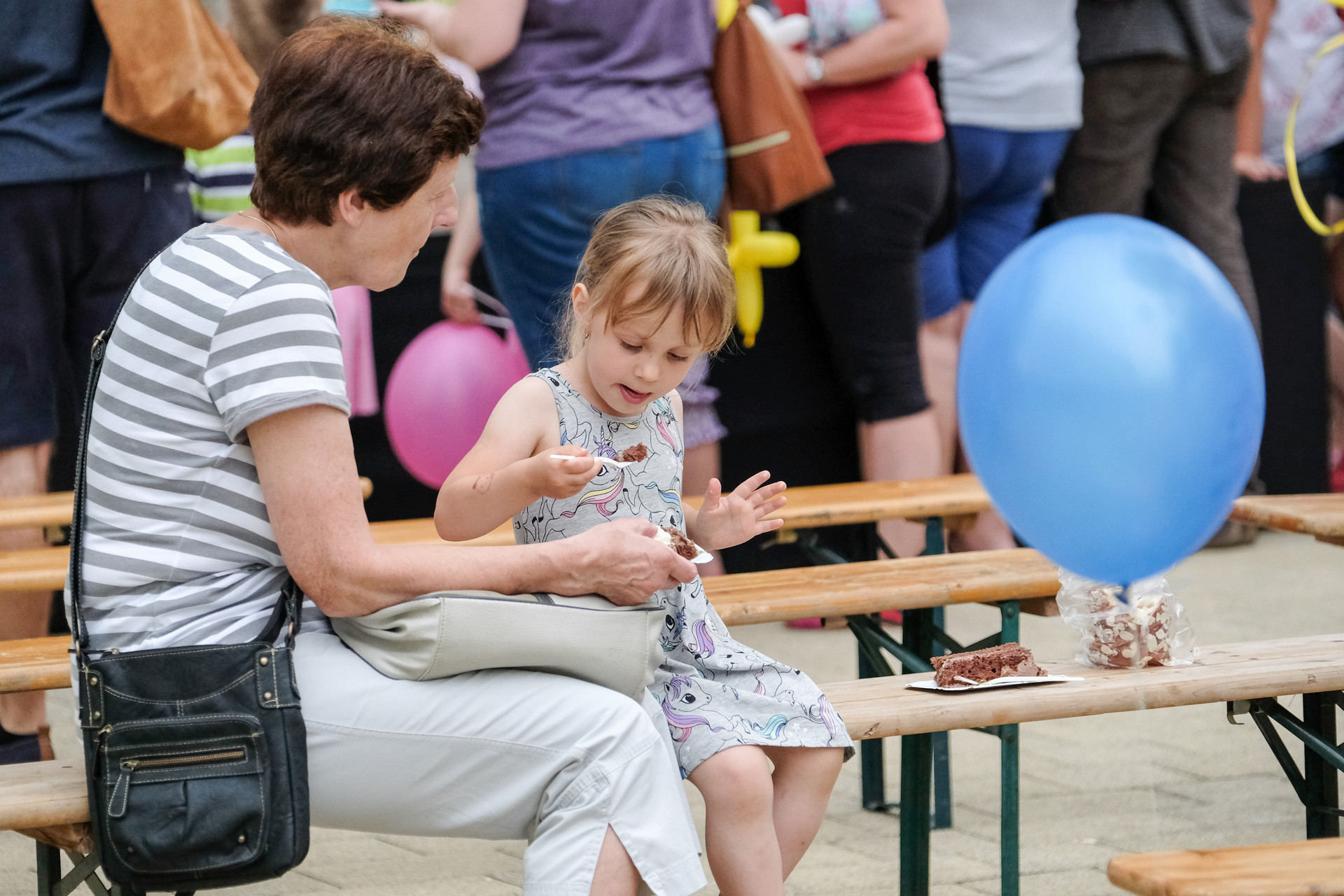 Délután a Calliope színjátszó kör is fellépett A varázslókirály című darabjával, majd a Hahota Gyermekszínház elevenítette fel Ludas Matyi történetét. Délután öt órától a Ghymes zenekar adott koncertet, 18 órakor pedig felvágták az óriás tortát, amelyből az összes gyereknek és felnőttnek jutott egy-egy szelet.