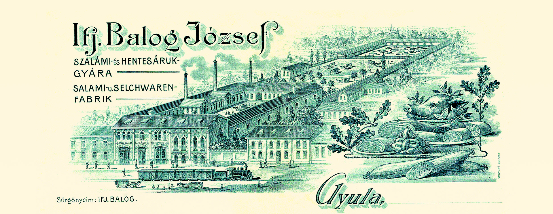 Balogh József (1856. január 1.–1945. július 31.) eredetileg a szűcsmesterséget tanulta ki, és 1882-ben kis szatócsüzletet nyitott a szülői házban, a kórház sarkán. Az üzletet hamarosan felkarolta a szomszédos 2. honvéd huszárzászlóalj katonai élelmezési hivatala. Folyamatosan nagy mennyiségű zsírt és szalonnát vásárolt fel és kisebb mennyiségű húsárut. Az áruját saját hizlalású és felvásárolt sertésekből készítette a család. A megmaradó jelentős mennyiségű ipari szalonnából és húsból házi ízesítésű kolbászt, kolozsvári húsos szalonnát, füstölt paprikázott gyulai szeletszalonnát és disznósajtot készítettek, melyeket szintén az üzletben hoztak forgalomba – részletezte Dinya Imre.
