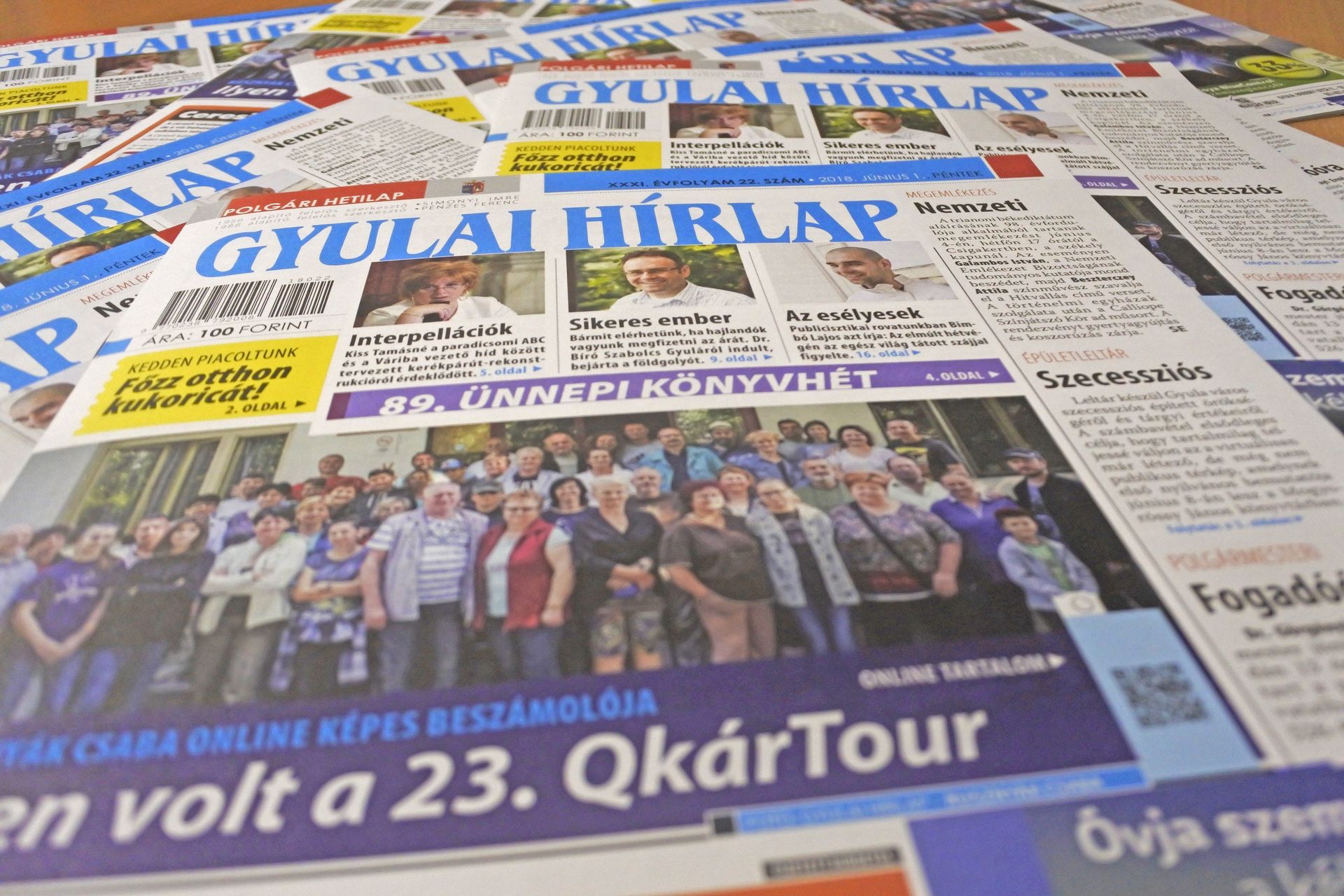 A friss Gyulai Hírlapban többek között beszámolunk a képviselő-testület május 24-i ülésének interpellációs órájáról. A grémium tanácskozásán szóba kerültek a kátyúk és a rossz állapotú utak, valamint a gyulavári gyógyszertár nyitvatartásáról és a Gyulai Termál FC pénzügyeiről is kérdeztek a képviselők. Címlapfotónk ízelítő Rusznyák Csaba galériájából, aki többedmagával a 23. QkárTour-on járt. Heti lapszámunkban olvashatnak a készülő térképről, amely Gyula szecessziós értékeit hivatott bemutatni, de írtunk Hurguly-Szabó Györgyről is – ismertebb nevén Andor bohócról – aki két elektromos kerekesszéket ajándékozott sérült gyermeknek. Lapunkban hírt adtunk arról, hogy felavatták a Bay Zoltánról készült portrét a városházán, valamint olvasható egy interjú dr. Bíró Szabolccsal. Az újságból természetesen a sport, a jegyzet és az állandó rovatok sem hiányozhatnak.