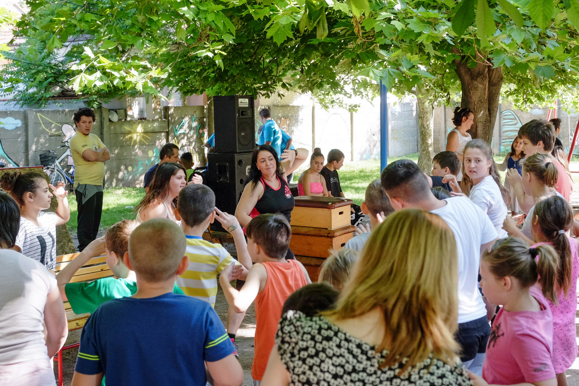 A Ruzsa Zoltán által koordinált rendezvényen a tanulókat többféle programmal várták. A reggelt közös zenés torna nyitotta, melyet a Gyulai Kutyás Agility Szabadidősport Klub négylábúinak bemutatója követett.
