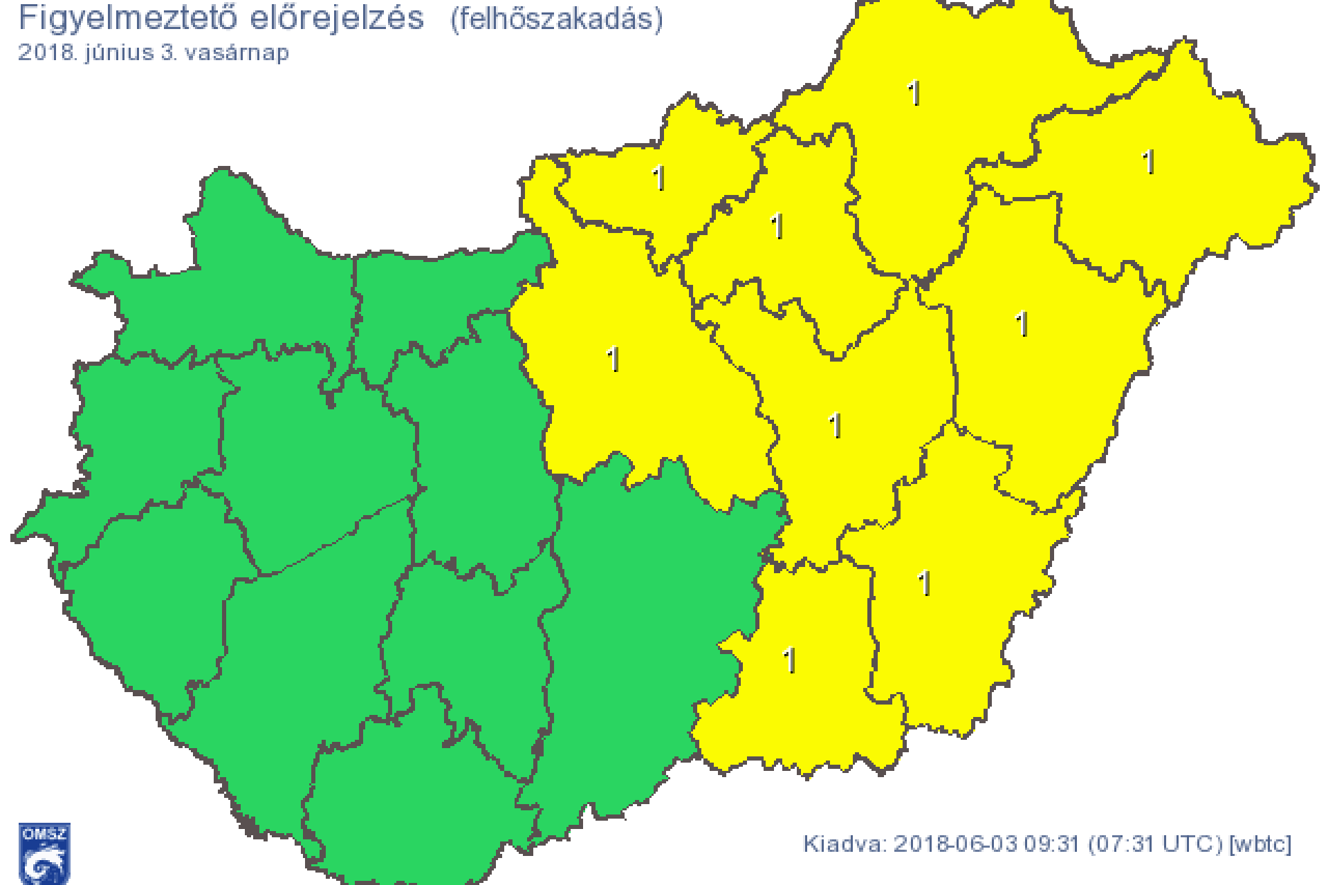 Intenzív záporokból, zivatarokból rövid idő alatt 25-30 mm-t meghaladó csapadék hullhat.Zivatarok környezetében felhőszakadás, néhol viharos szél és egy-egy helyen jégeső is előfordulhat.