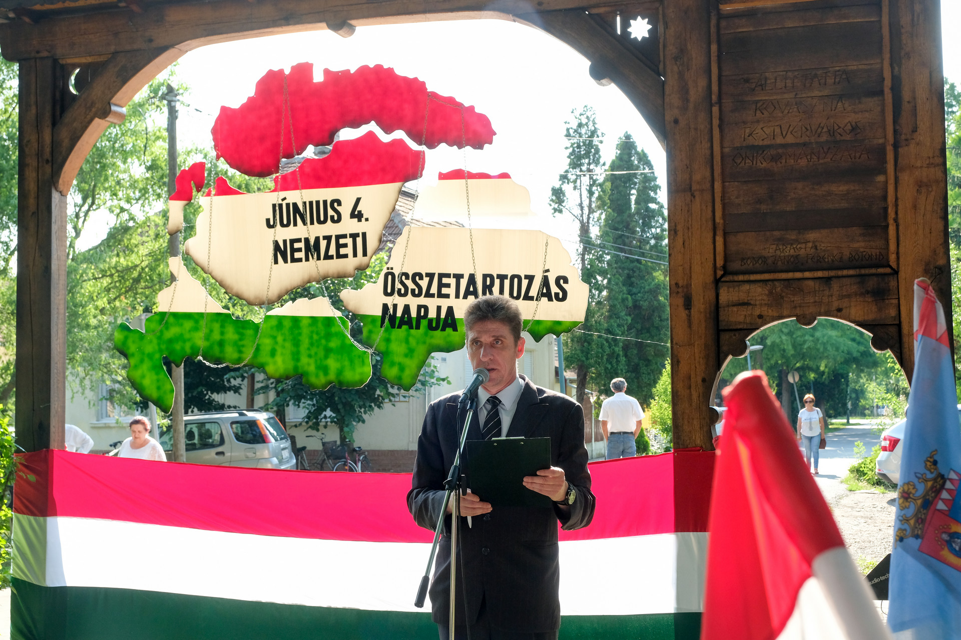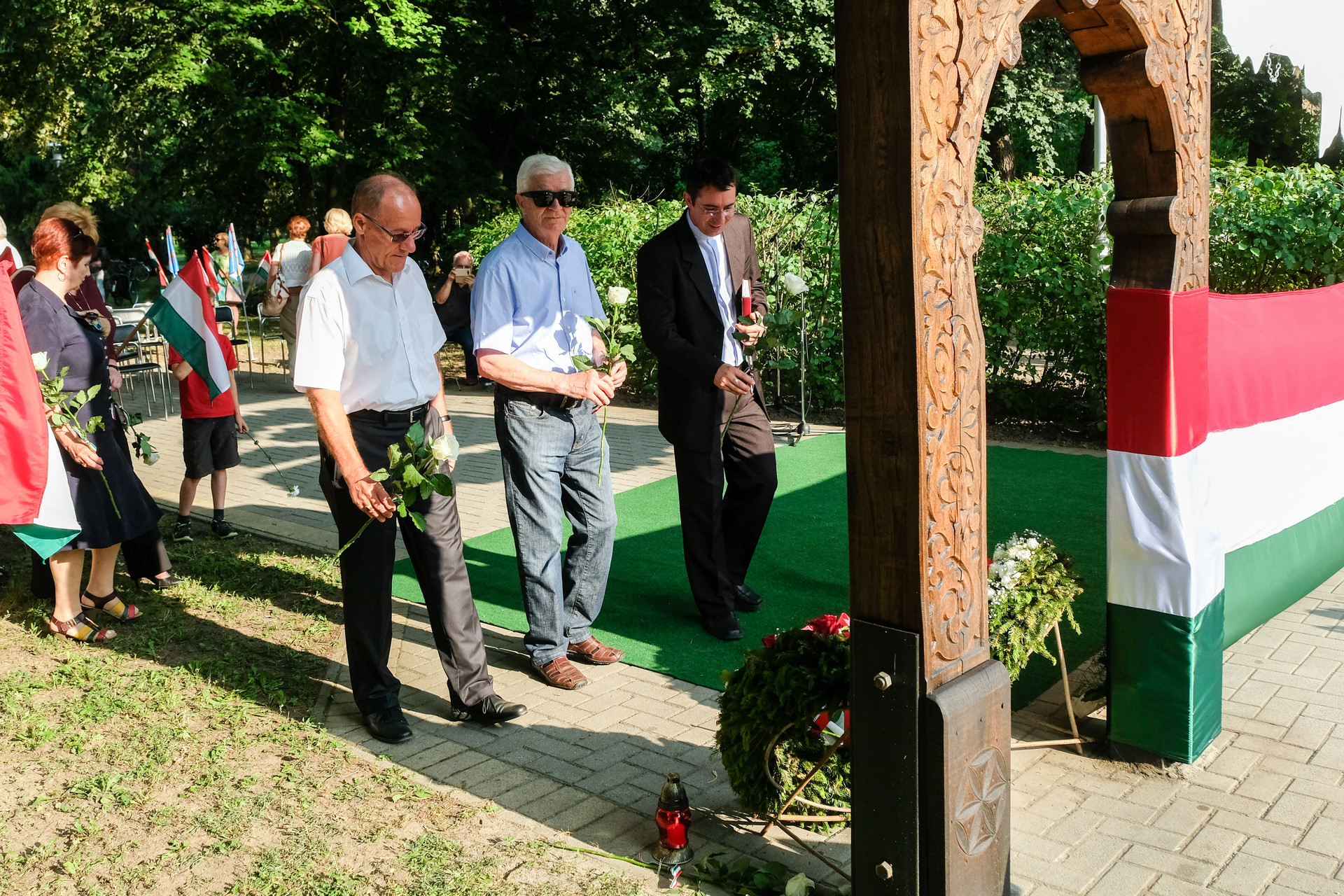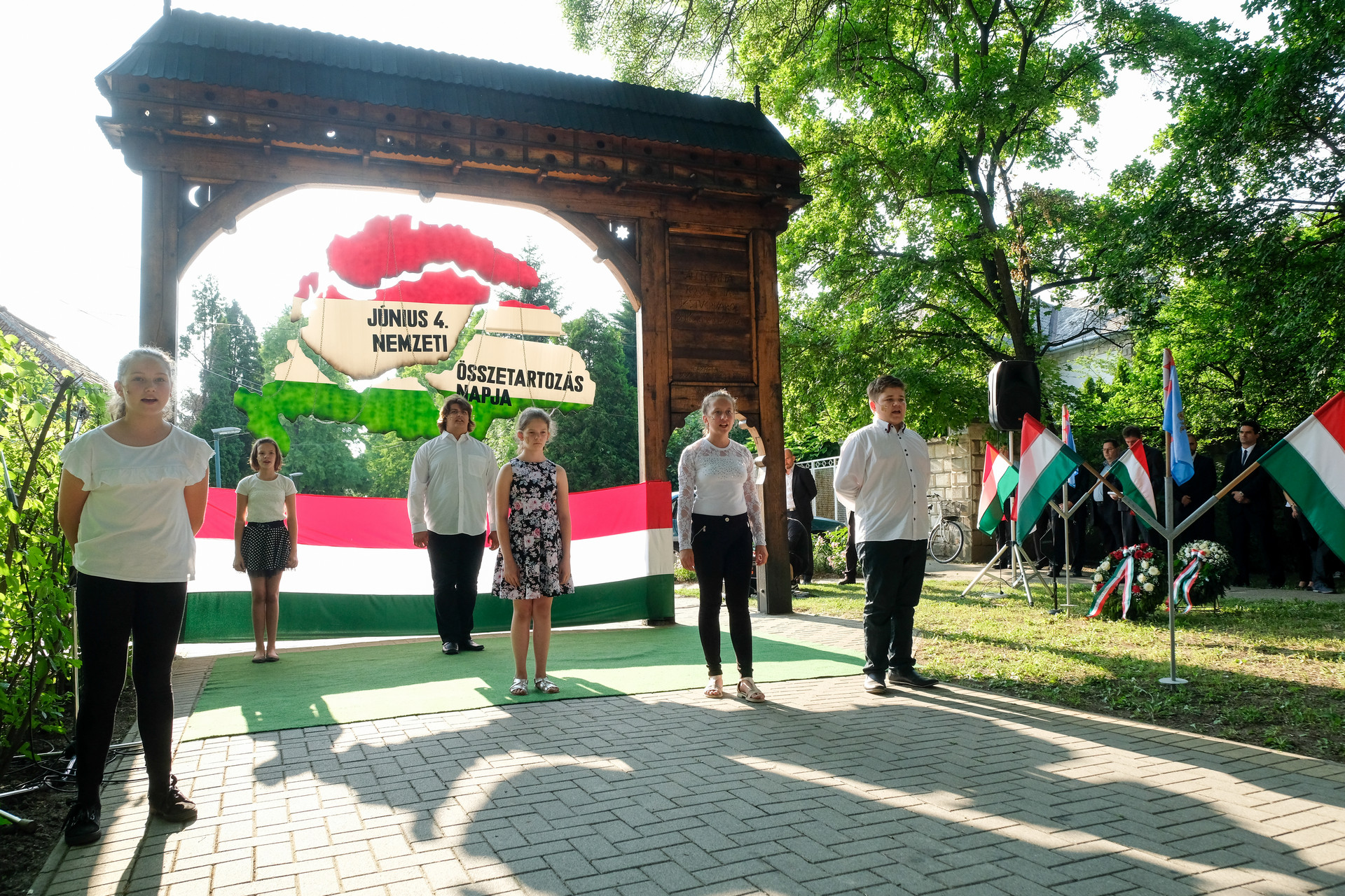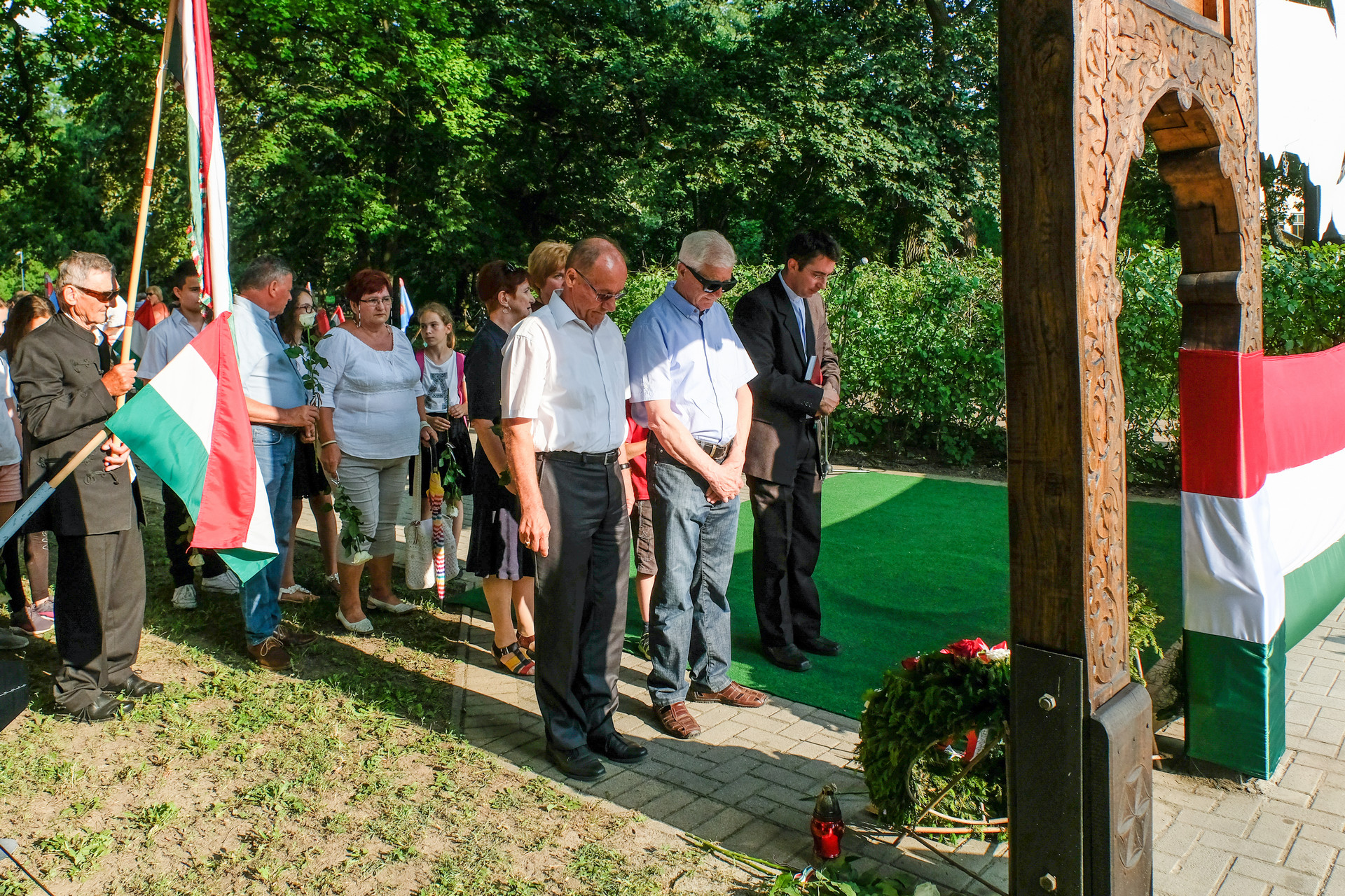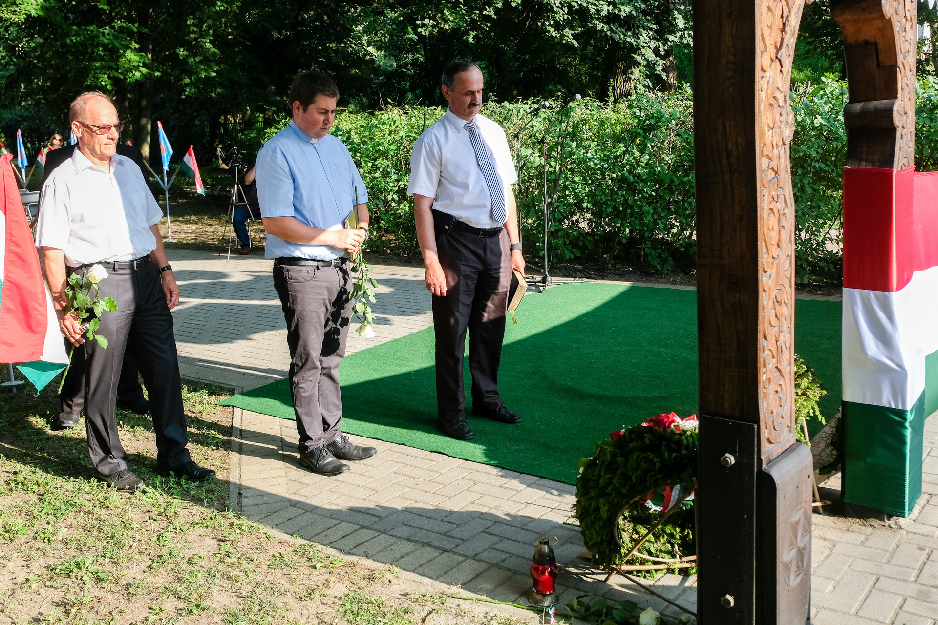 A megemlékezők Beszterczey Attila színművész előadásában hallgatták meg a Hitvallás című verset. A helyi egyházak képviselőinek szolgálata után a Calliope Színjátszó Kör műsorával ért végett a rendezvény. A megemlékezés helyszínéül szolgáló székely kapunál városunk vezetői, intézményeink és civil szervezeteink képviselői, valamint megemlékezők helyeztek el virágokat és gyújtottak gyertyákat.