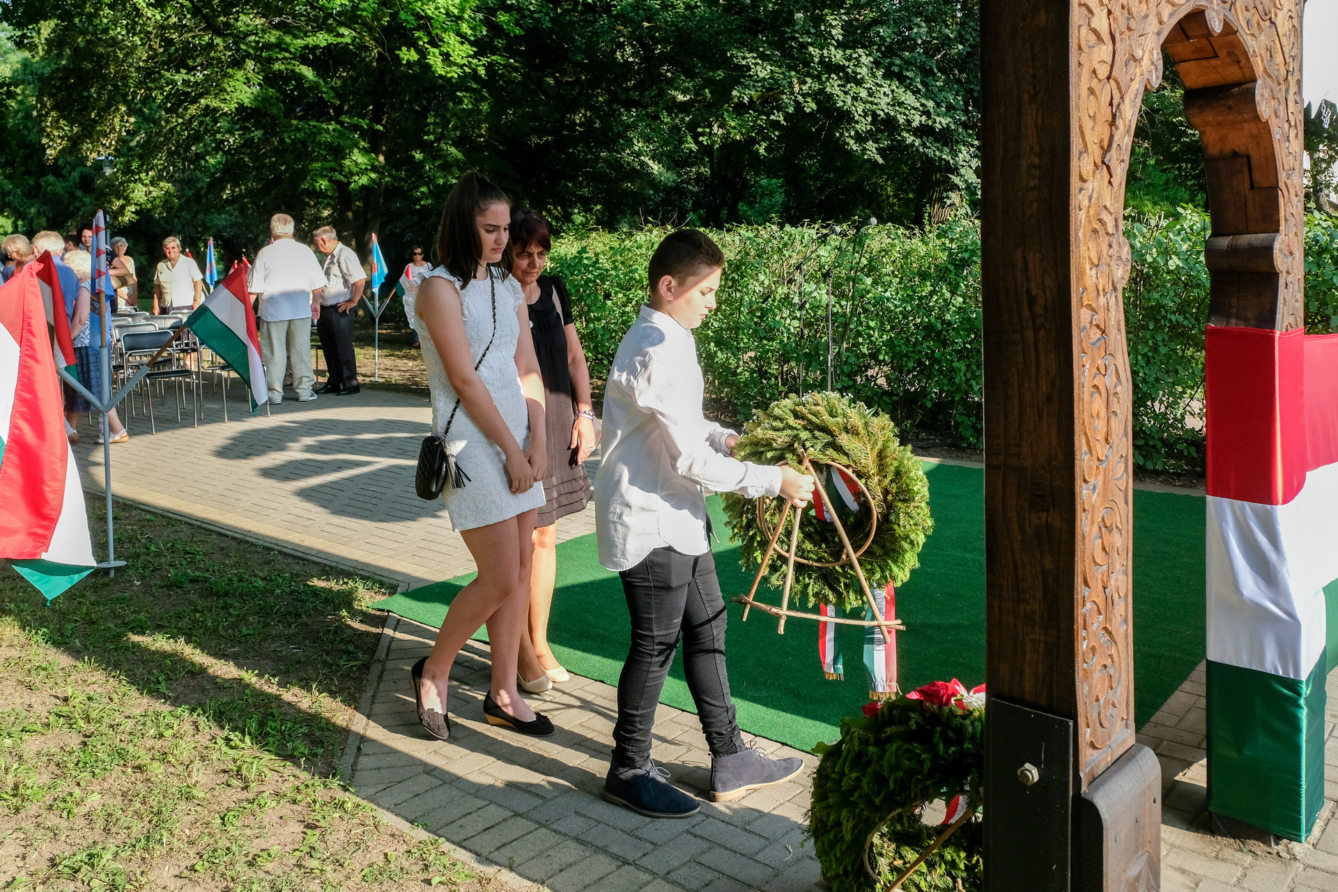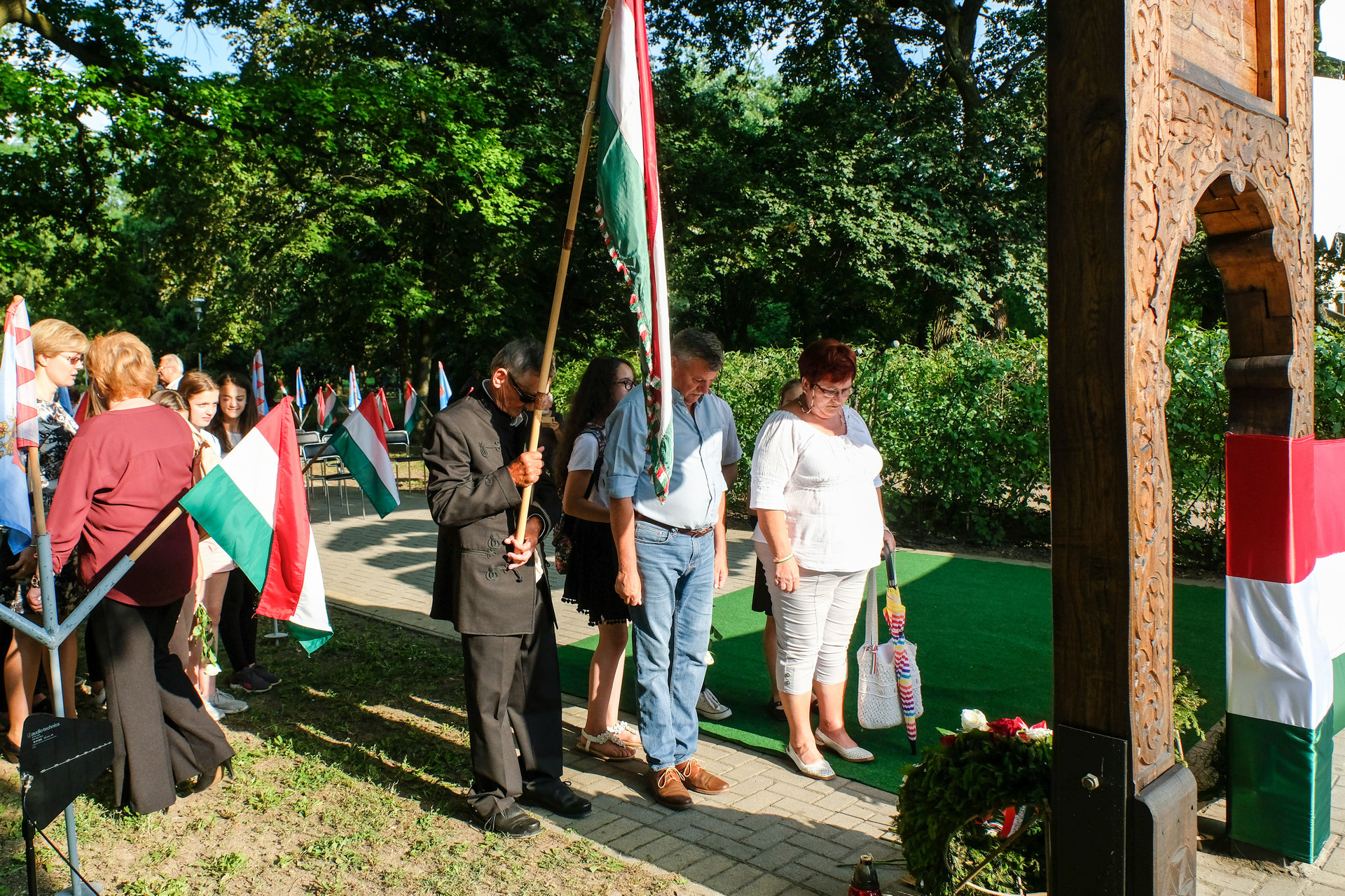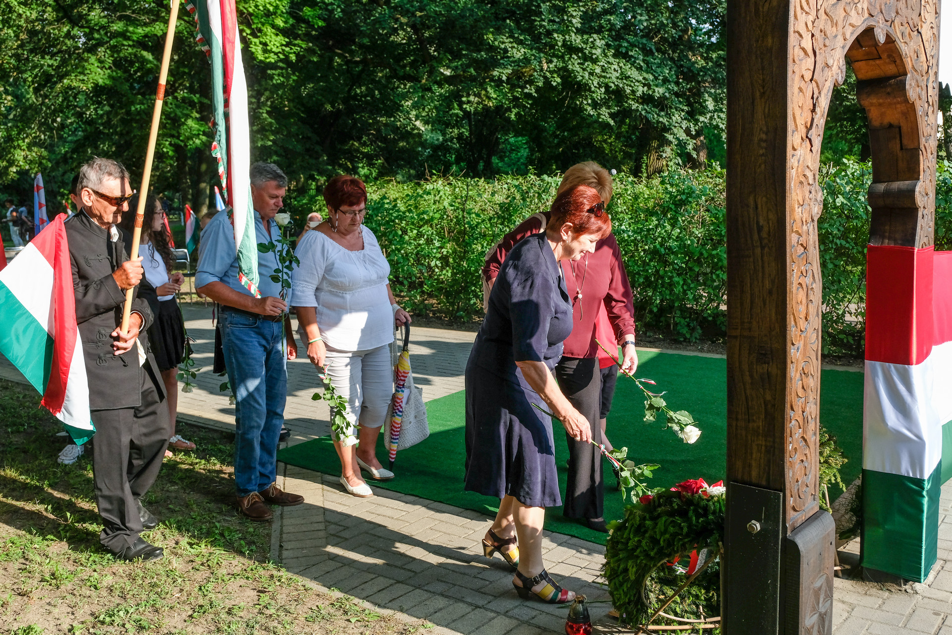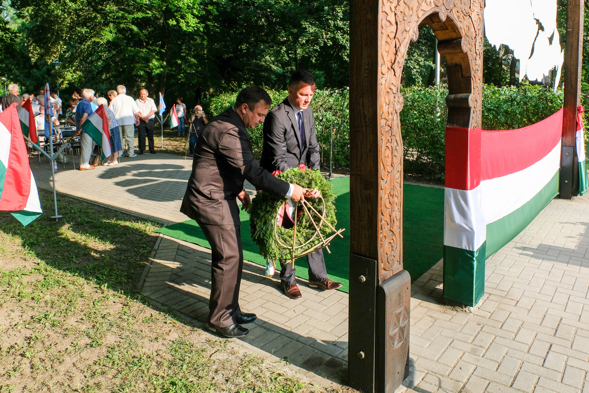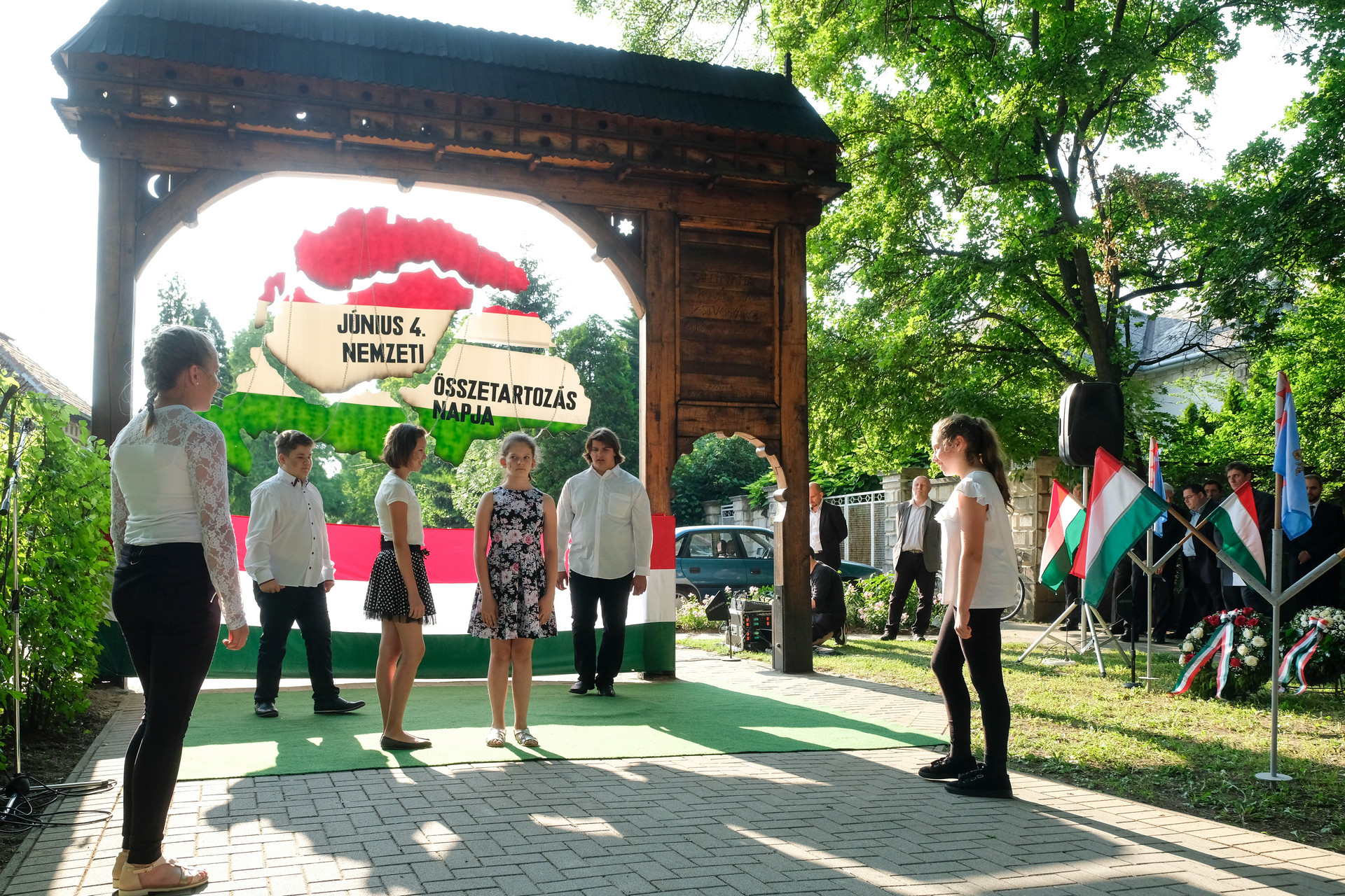 A megemlékezők Beszterczey Attila színművész előadásában hallgatták meg a Hitvallás című verset. A helyi egyházak képviselőinek szolgálata után a Calliope Színjátszó Kör műsorával ért végett a rendezvény. A megemlékezés helyszínéül szolgáló székely kapunál városunk vezetői, intézményeink és civil szervezeteink képviselői, valamint megemlékezők helyeztek el virágokat és gyújtottak gyertyákat.