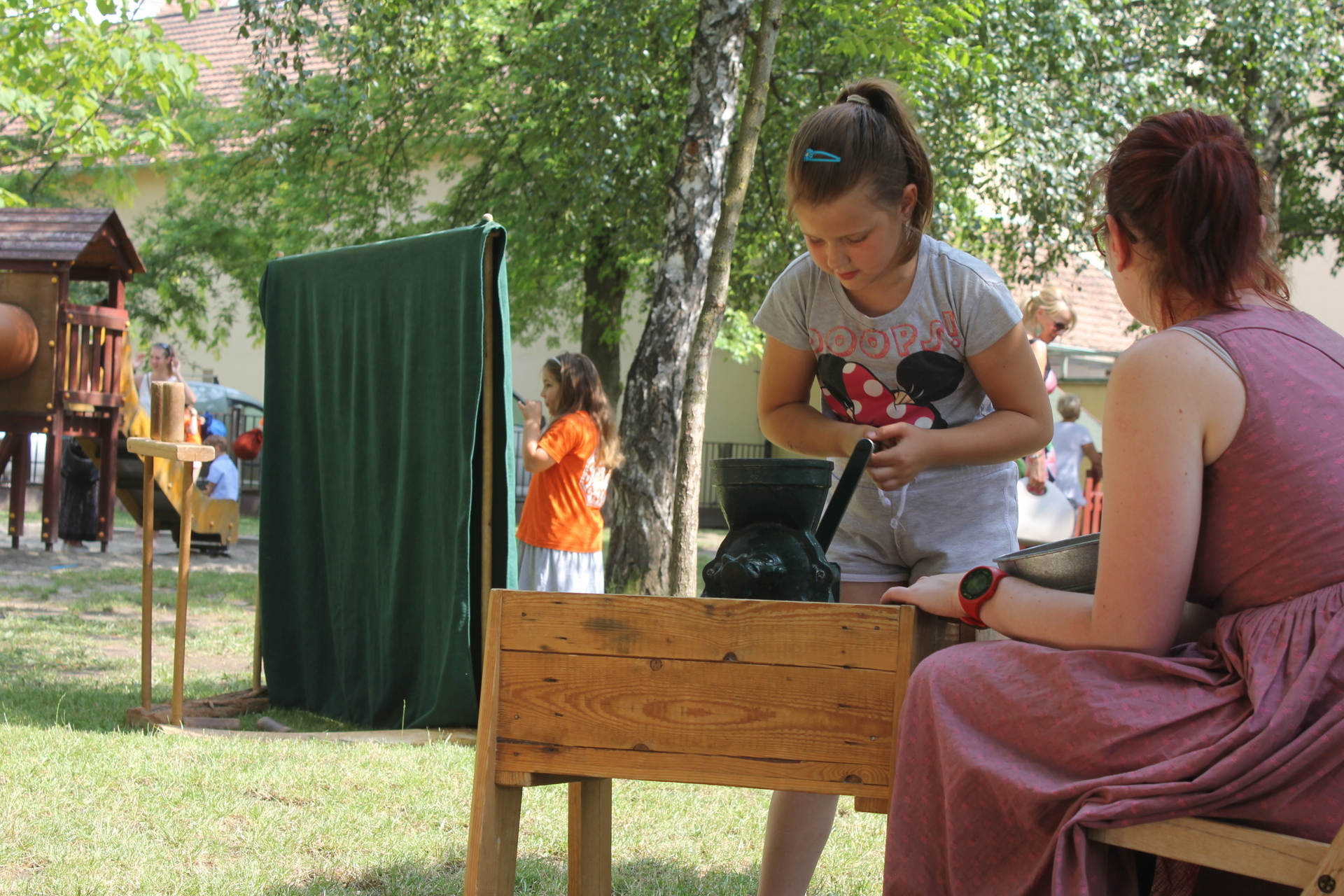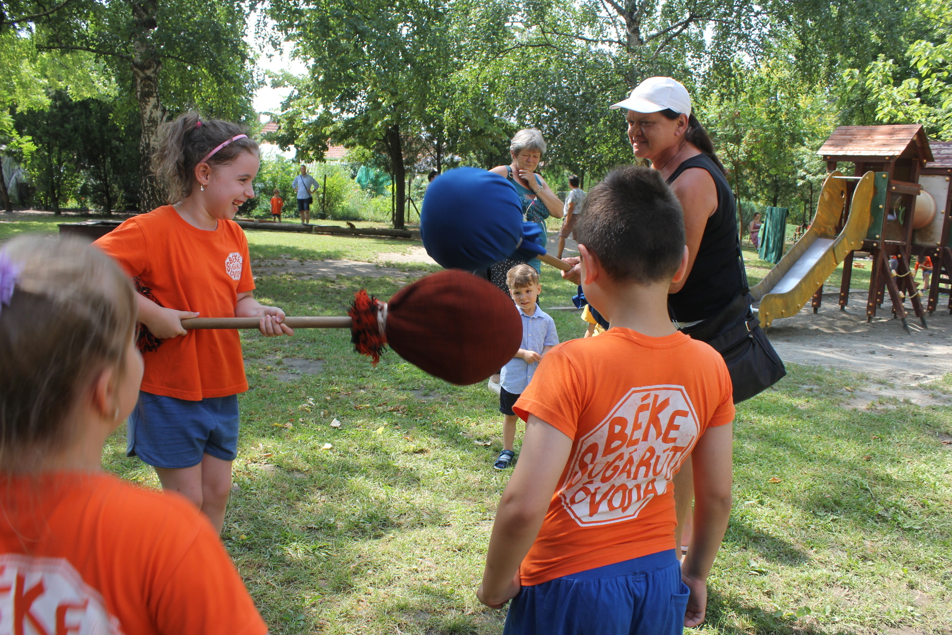 A óvoda udvarán a gyerekek találkozhattak a Velek Vezér Hagyományőrző Íjász Egyesület csapatával is, amelynek tagjai bemutatót tartottak. A sok játék mellett arcfestéssel, zsákbamacskával és tombolával várták az óvodásokat.