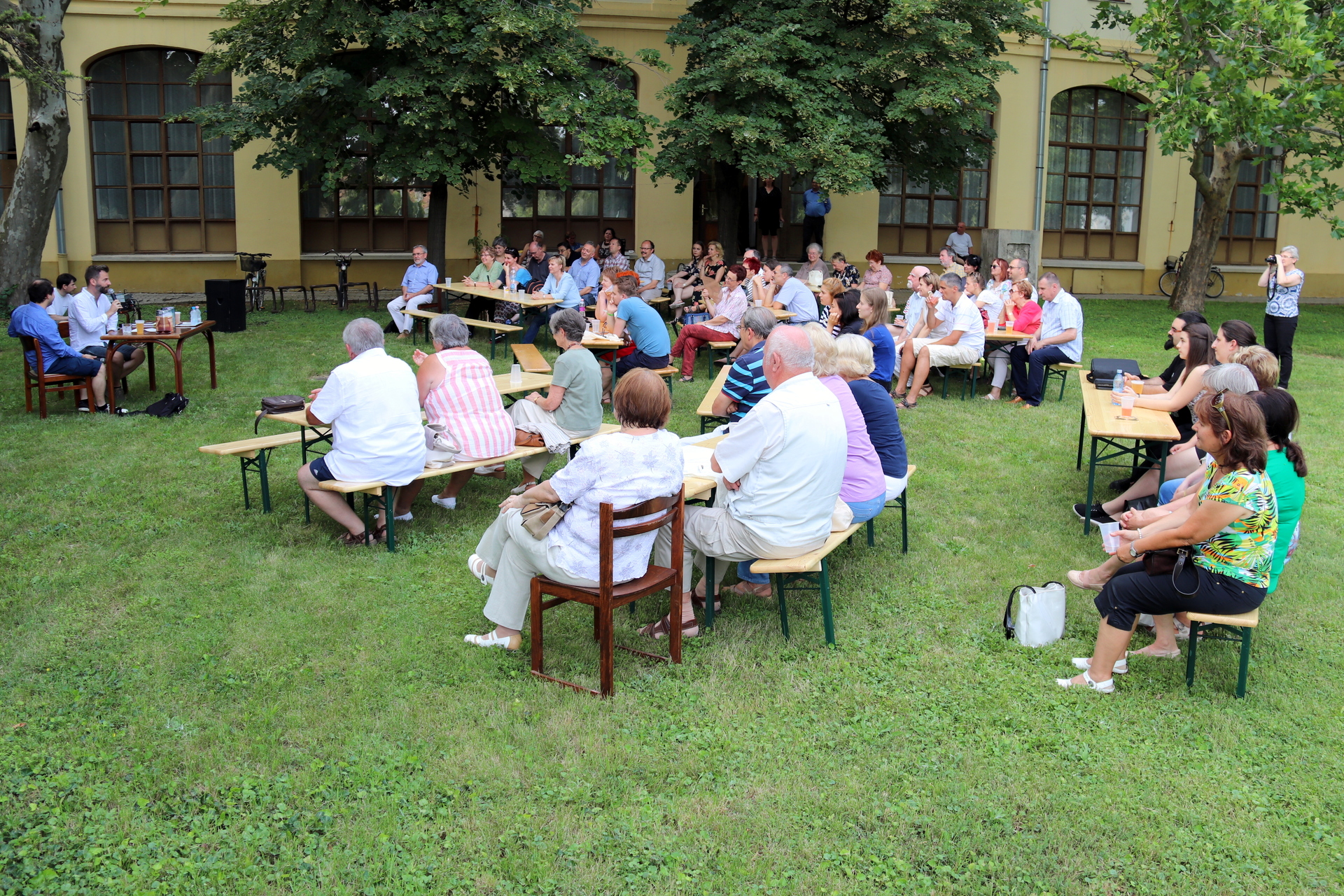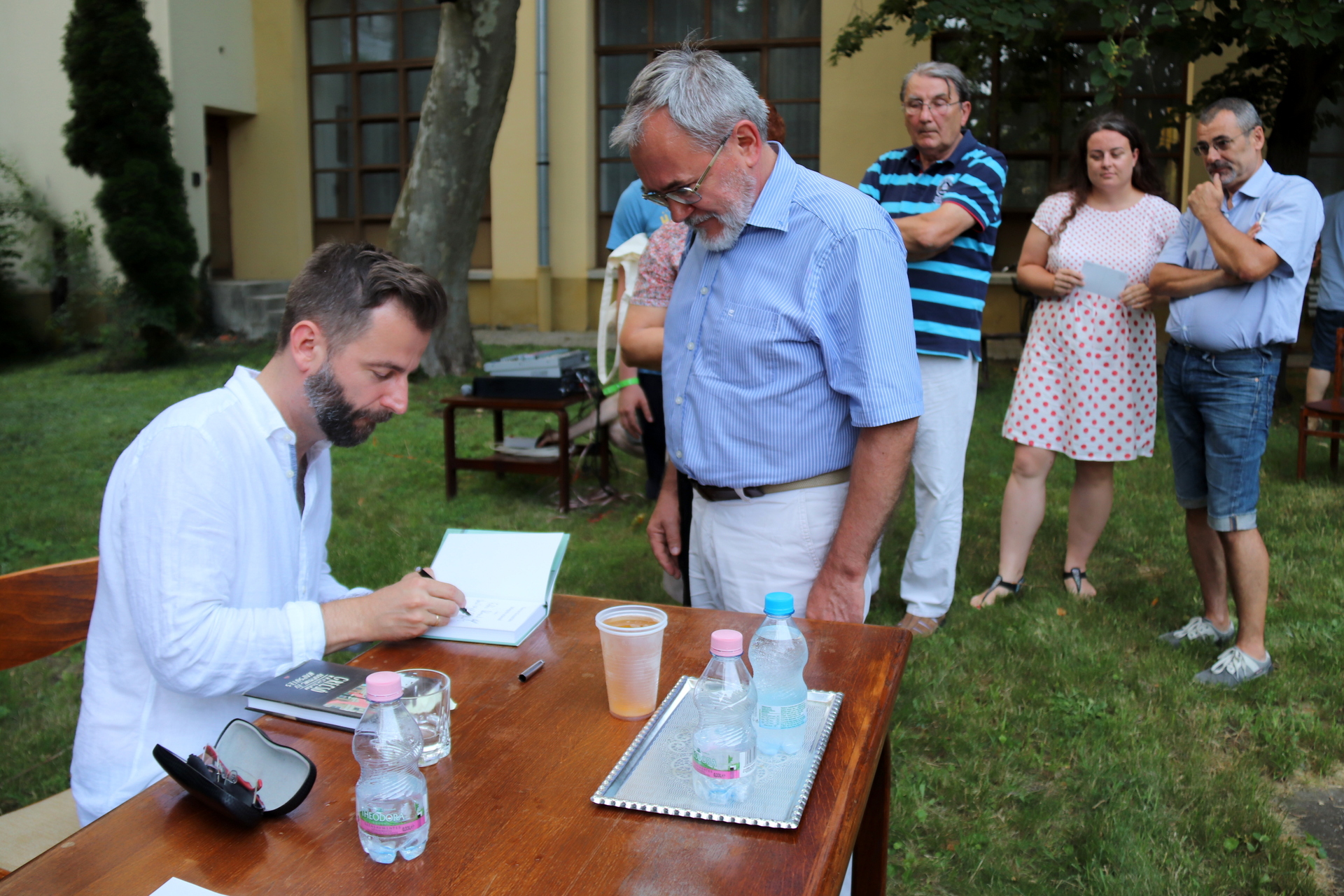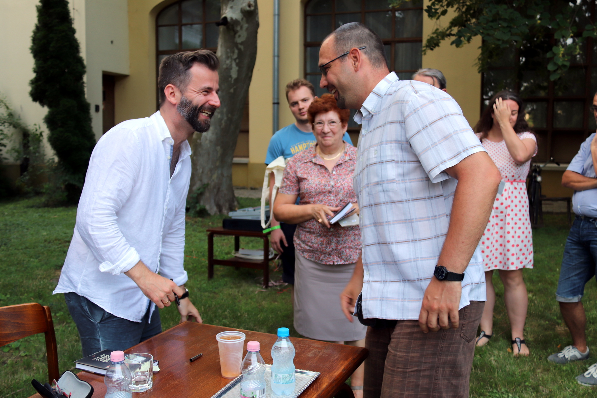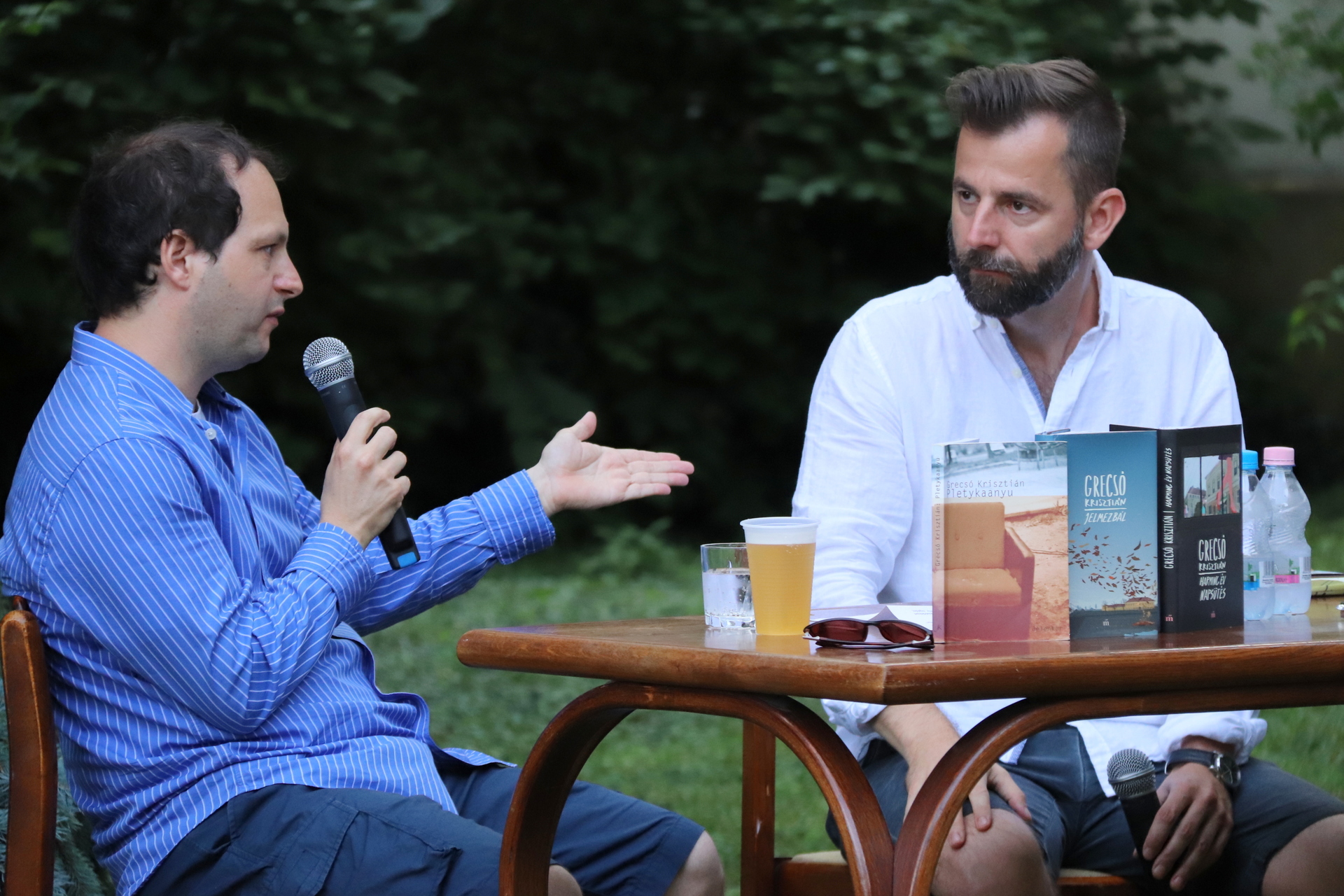 Begyakorlott, összeszokott párosként ült egy asztalhoz és közönség elé Grecsó Krisztián József Attila-díjas író és Kiss László, aki a házigazda szerepét vállalta magára. A 89. Ünnepi Könyvhét június 8-i beszélgetésén a meghívott már ismert „harminc éves” napsütéses történetein kívül újak is előkerültek az emlékezetből.