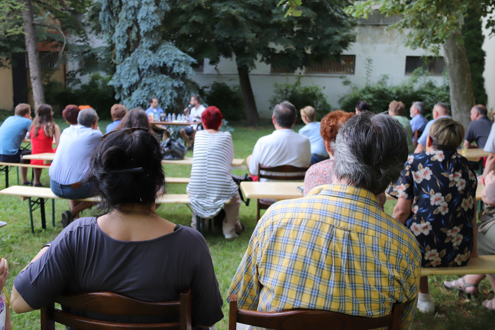 Az esten sok mindenről szó esett, ám elsősorban a József Attila-díjas szerző irodalmi tevékenységéről, többek között a tavaly megjelent Harminc év napsütés című kötetéről, amely tárcanovellákat tartalmaz. A Kortárs címűben például azt ismeri fel, hogy a kortárs irodalom tényleg kortárs, nem csak a nevében az. Vannak szerzői, akik akár a plázákban is dedikálnak, felolvasóesteket tartanak, és akikkel el lehet beszélgetni könyvtárak udvarán. Ennek kapcsán Kiss László megkérdezte, milyen volt az első könyvélménye, hisz egy erősen rusztikus környezetből származik, Szegvárról.