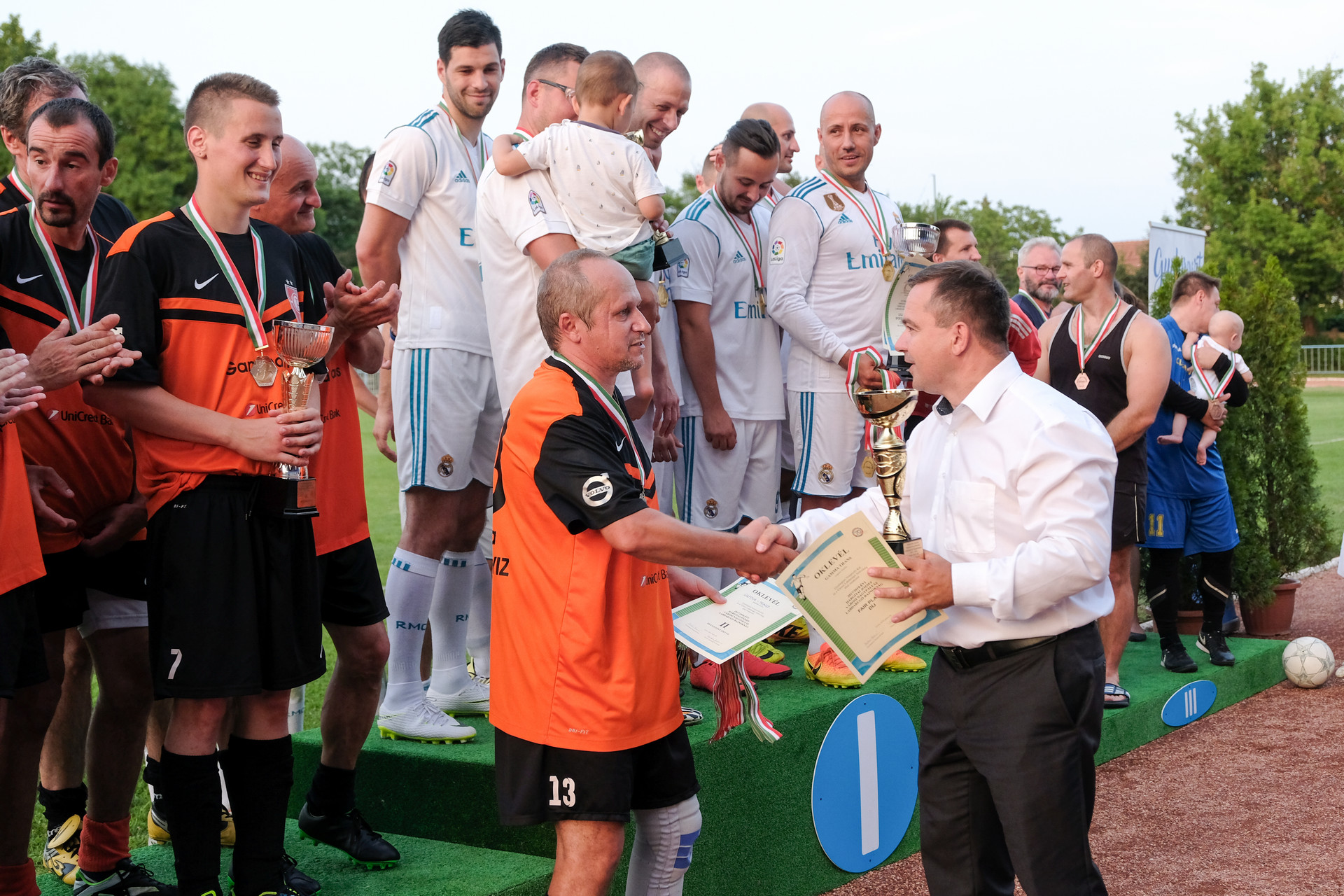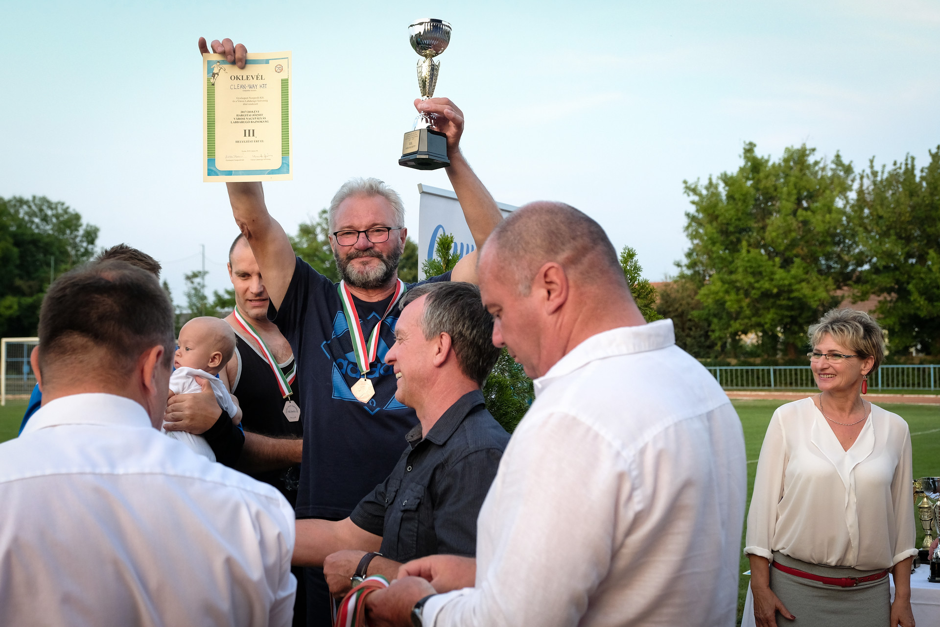 A köszöntők után már az idei év díjazottjai vehették át jól megérdemelt elismeréseiket. A bajnoknak járó serleget a Zé-Pé Café Kft. gárdája emelhette a magasba. Az együttes a legsportszerűbb csapatnak járó kitüntetést is a magáénak tudhatta. A második helyen a Gamma Trans legjobbjai végeztek, míg a bronzérmet a Clean-Way Kft. spílerei akaszthatták a nyakukba. A szervezők döntése alapján a Gamma Trans alakulata az idei év Fair Play díját is a vitrinjébe teheti.