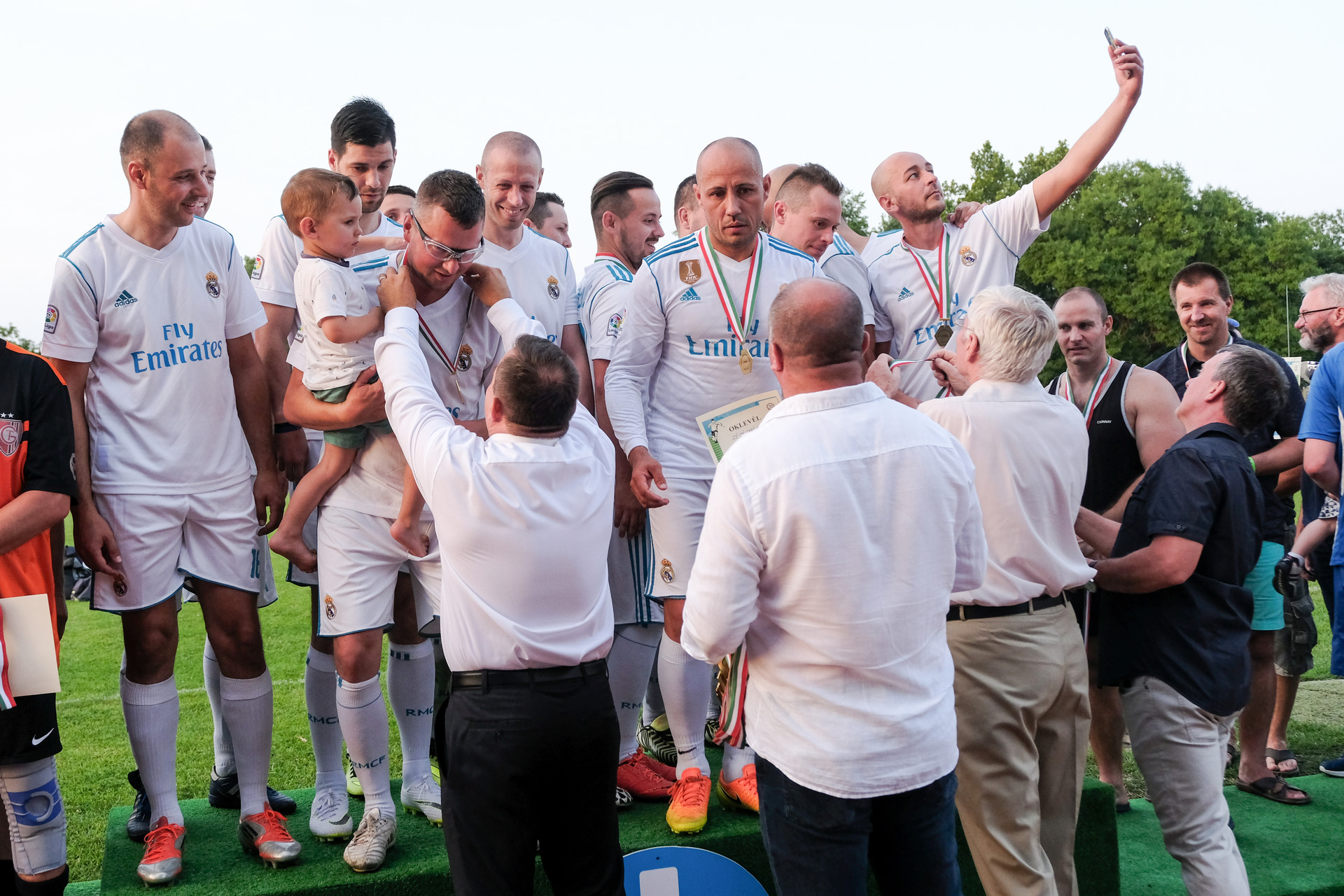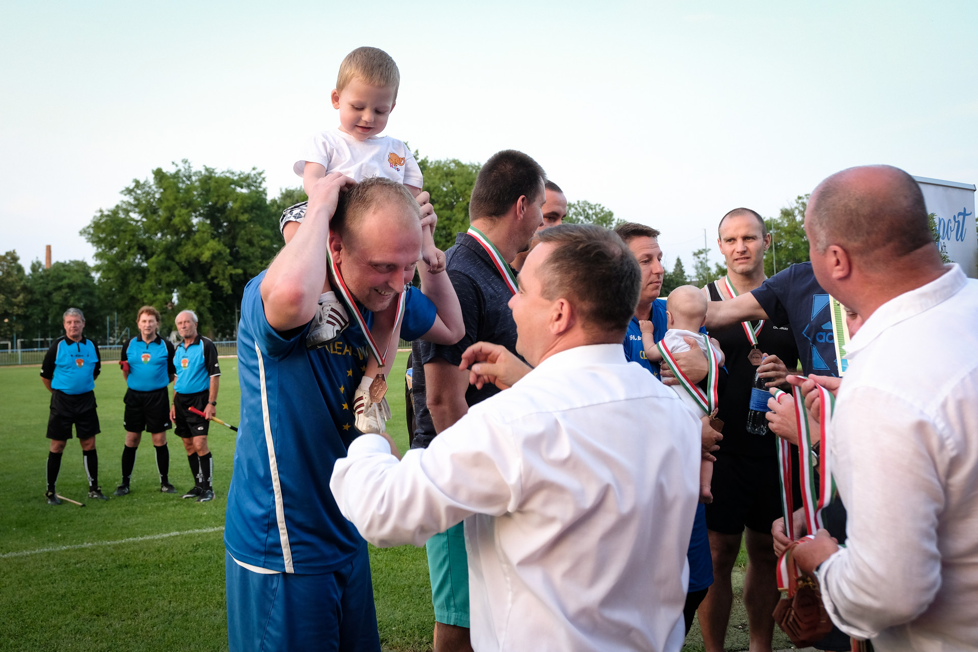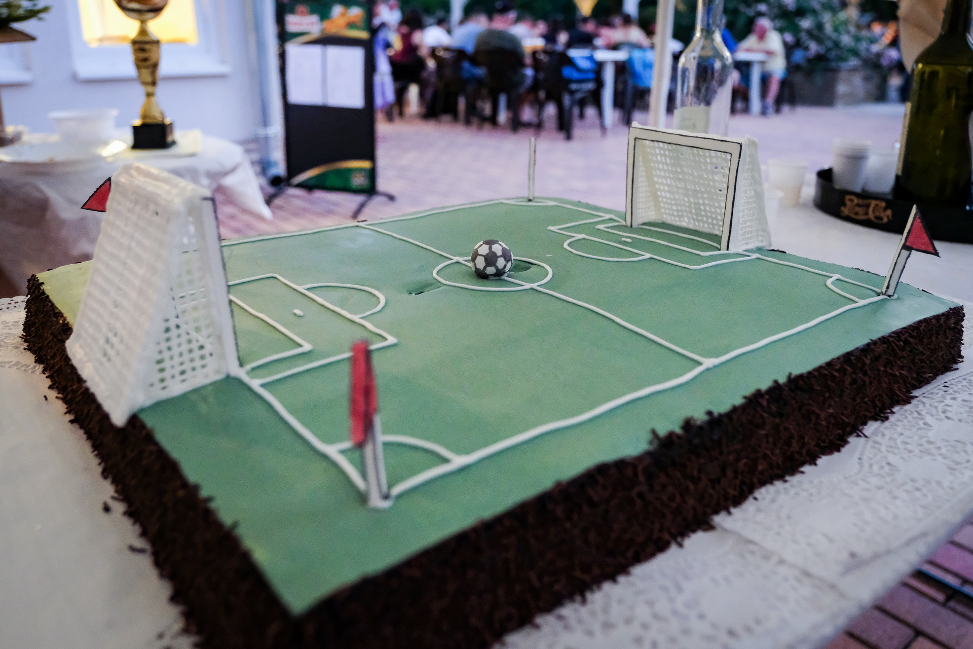 A Hargitai József nagypályáslabdarúgó-bajnokság csapatai vacsorával, jókedvű beszélgetéssel és tortavágással zárták a fociháborút.