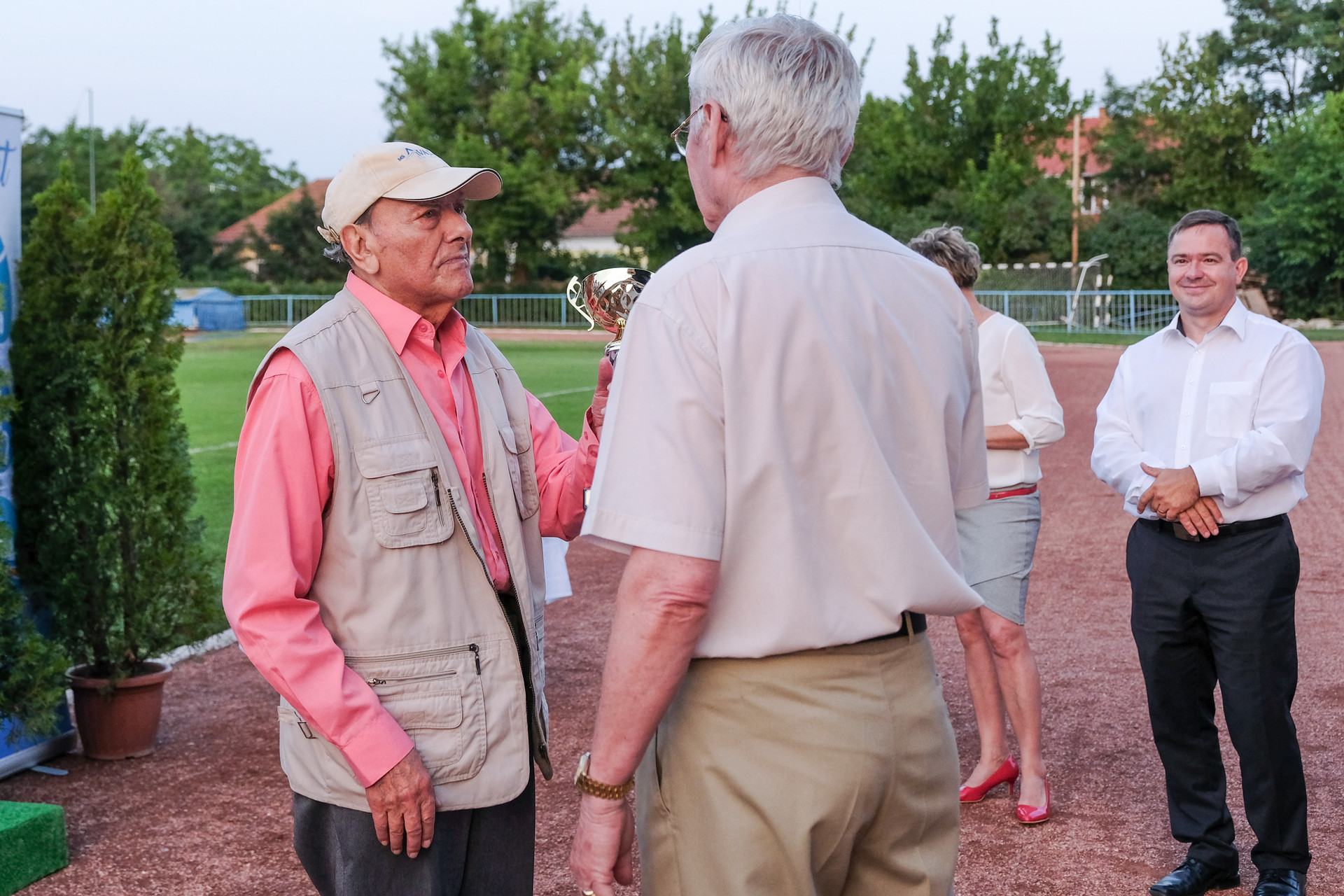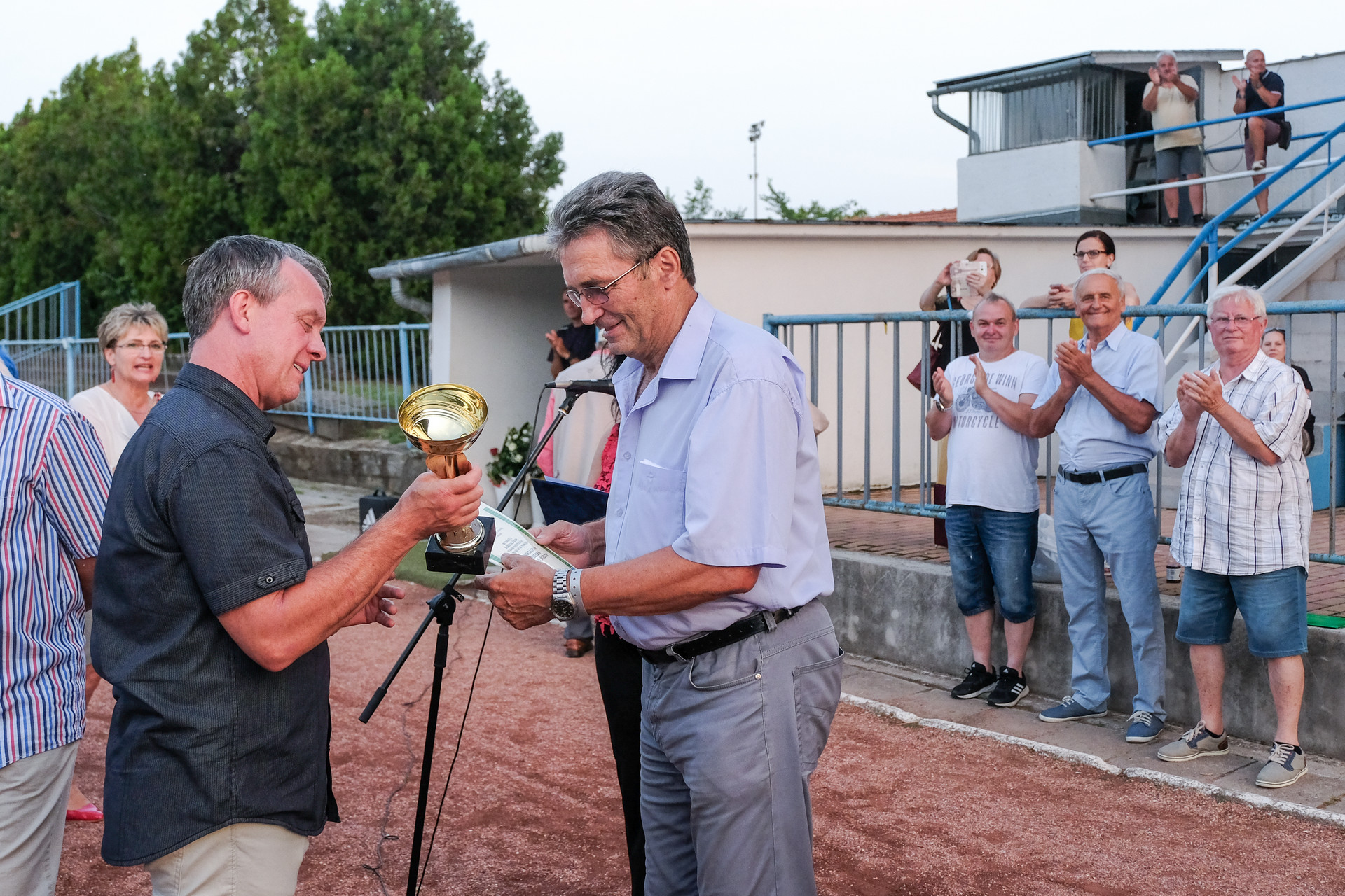 A labdarúgók közül a mezőny egyik legidősebb tagja, Orbán Ambrus mondott köszönetet a városnak és a Városi Labdarúgó Szövetségnek az elmúlt hetven évért.