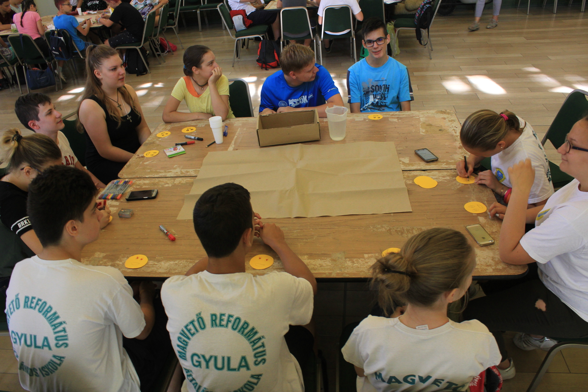 A helyszínen azt is megtudtuk, hogy pontosan milyen kihívásokkal kell szembenéznie a versenyző diákoknak. A köszöntő és a szabályok ismertetése után egy hatórás feladat következett: a szorgalmas kezek Gyula város makettjét készítették el gyógyszeres dobozokból.