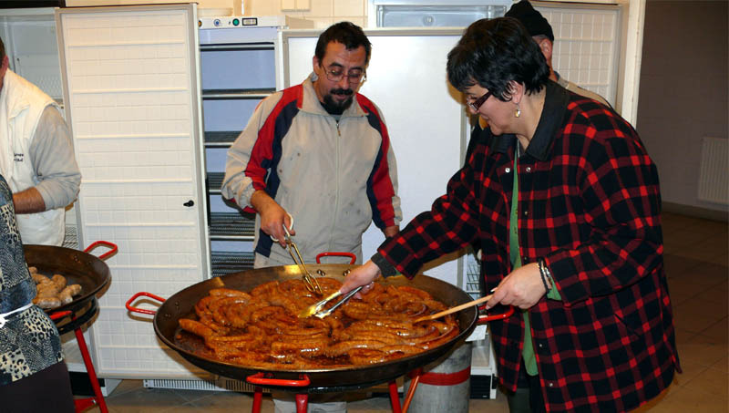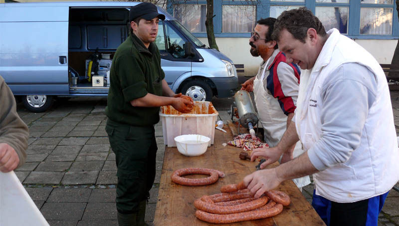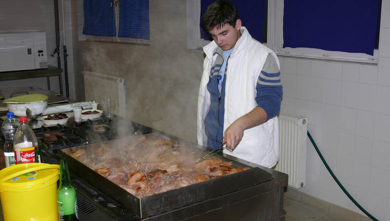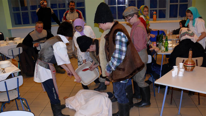 A sertés vérének vétele, majd az áldozati cuika elfogyasztása után a disznó perzselése is a hagyományoknak megfelelően, szalmával történt (csak a végén kellett egy kicsit rásegíteni gázperzselővel). A sertés adottságainak megvizsgálása és azokból jó étkek készítése Ambrus György mesterszakács, szakácsolimpiai bajnok, Brindás János mesterszakács és Parászka Tivadar mesterszakács feladata volt. Késő délután, a vacsora előtt mutatták be a Méhkeréki Román Nemzetiségű Általános Iskola tanulói a Disznótori szokások Méhkeréken című színpadi művüket. Az estebéd közben Maskara is volt. A hagyomány szerint barát, rokon, szomszéd elmaszkírozza magát és tarisznyával a vállán bemegy kéregetni, miközben tréfás megjegyzéseket tesz a disznóra, meg a gazdára. A tréfás, vidám kis jelenetek leginkább a gyermekek jókedvét szolgálják.