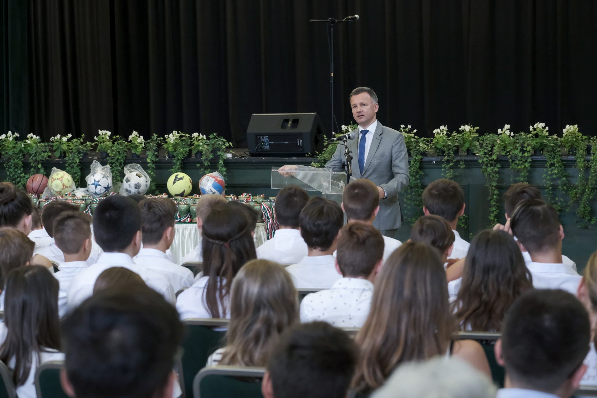 A városvezető beszédében kifejtette, hogy a város büszke lehet arra, hogy évről évre sikeresen működik a városi diákolimpiai csapatbajnokság. – Szeretnék köszönetet mondani azoknak a testnevelőknek és szervezőknek, akiknek sok munkája van abban, hogy ezek a csapatok összeálltak.